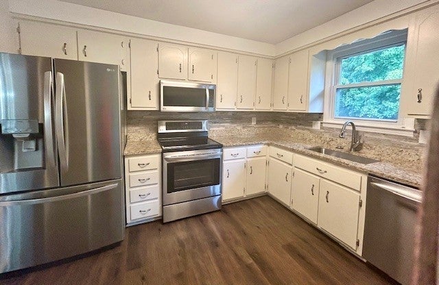 - Oven, Range, Dishwasher, Disposal, Dryer, Ice Maker, Microwave, Refrigerator, Stainless Steel Appliance(s), Washer