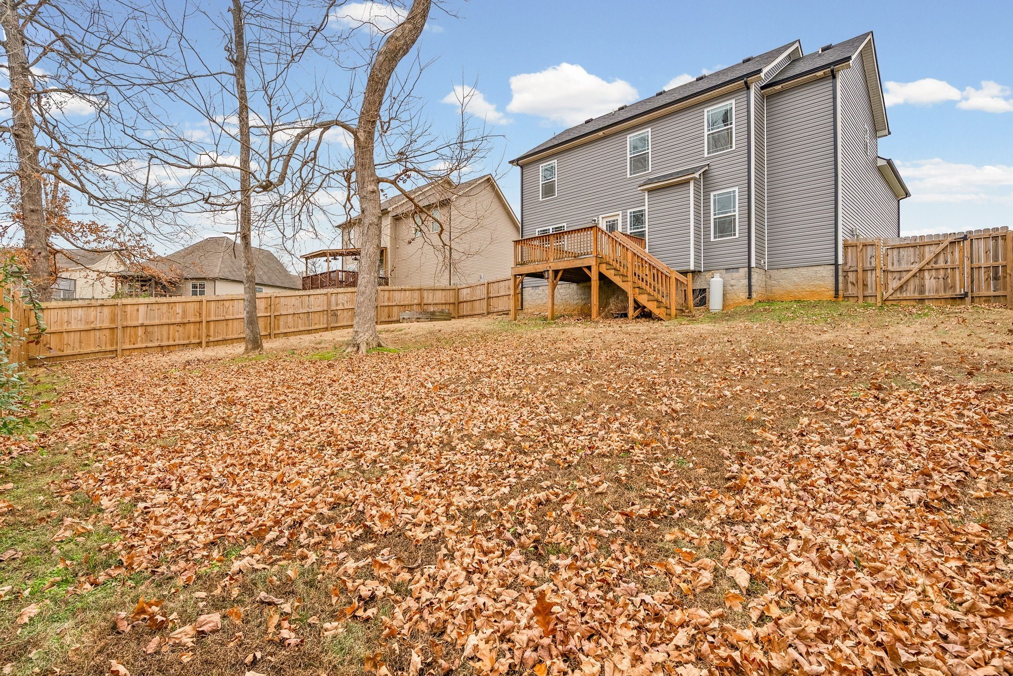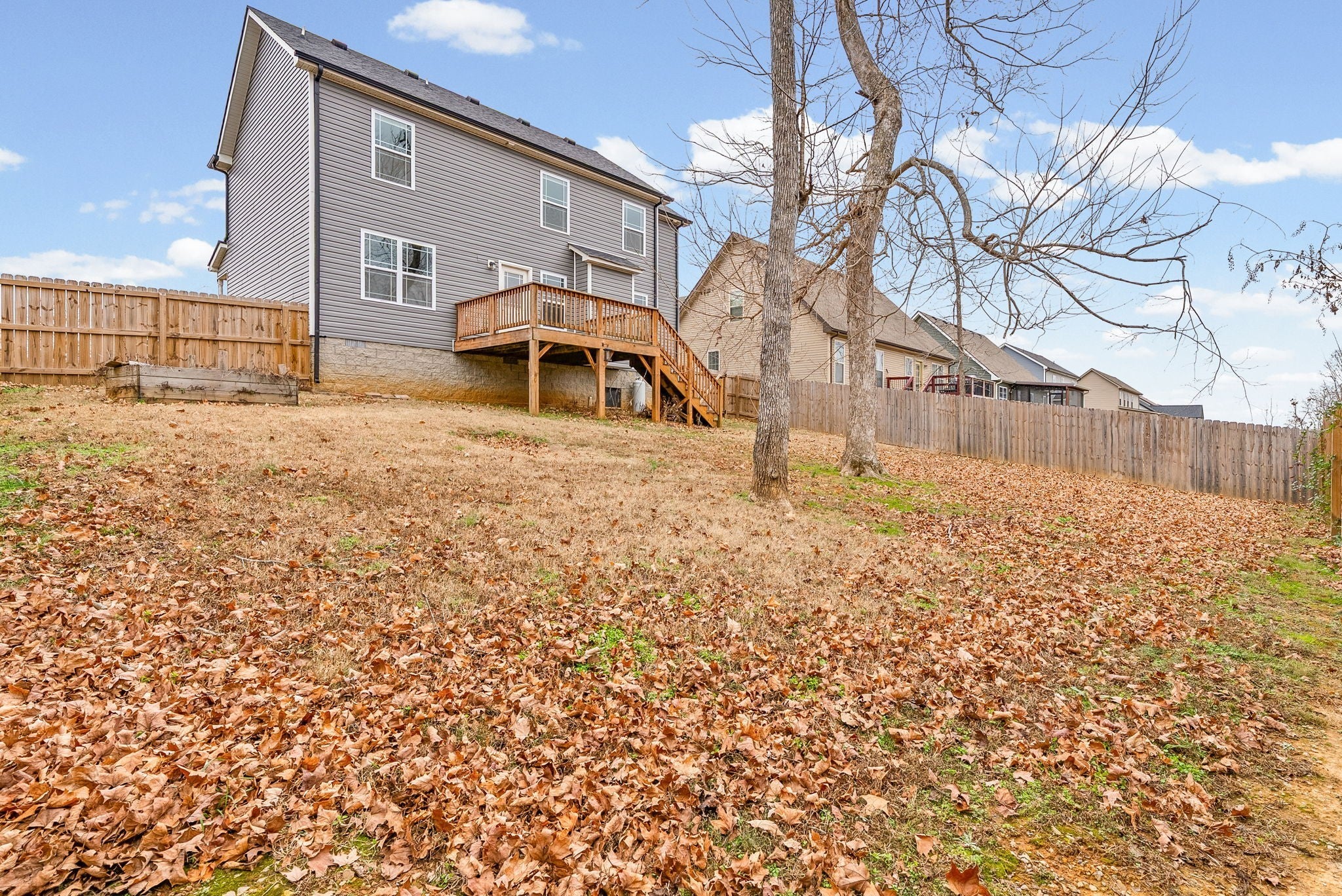 Quality construction built in 2017, this well-maintained 3-bedroom, 2.5-bath home offers 2,018 sq ft of comfortable living space. The home features an above-garage bonus/recreation room, a two-car garage, and a cozy propane fireplace. The owner’s suite includes a walk-in closet, double sinks, and a combo tub/shower. Enjoy outdoor living with a wood deck overlooking a generous backyard with a privacy fence, mature trees, and no backyard neighbors—perfect for relaxing or entertaining. Conveniently located close to schools, shopping, and Fort Campbell, KY.