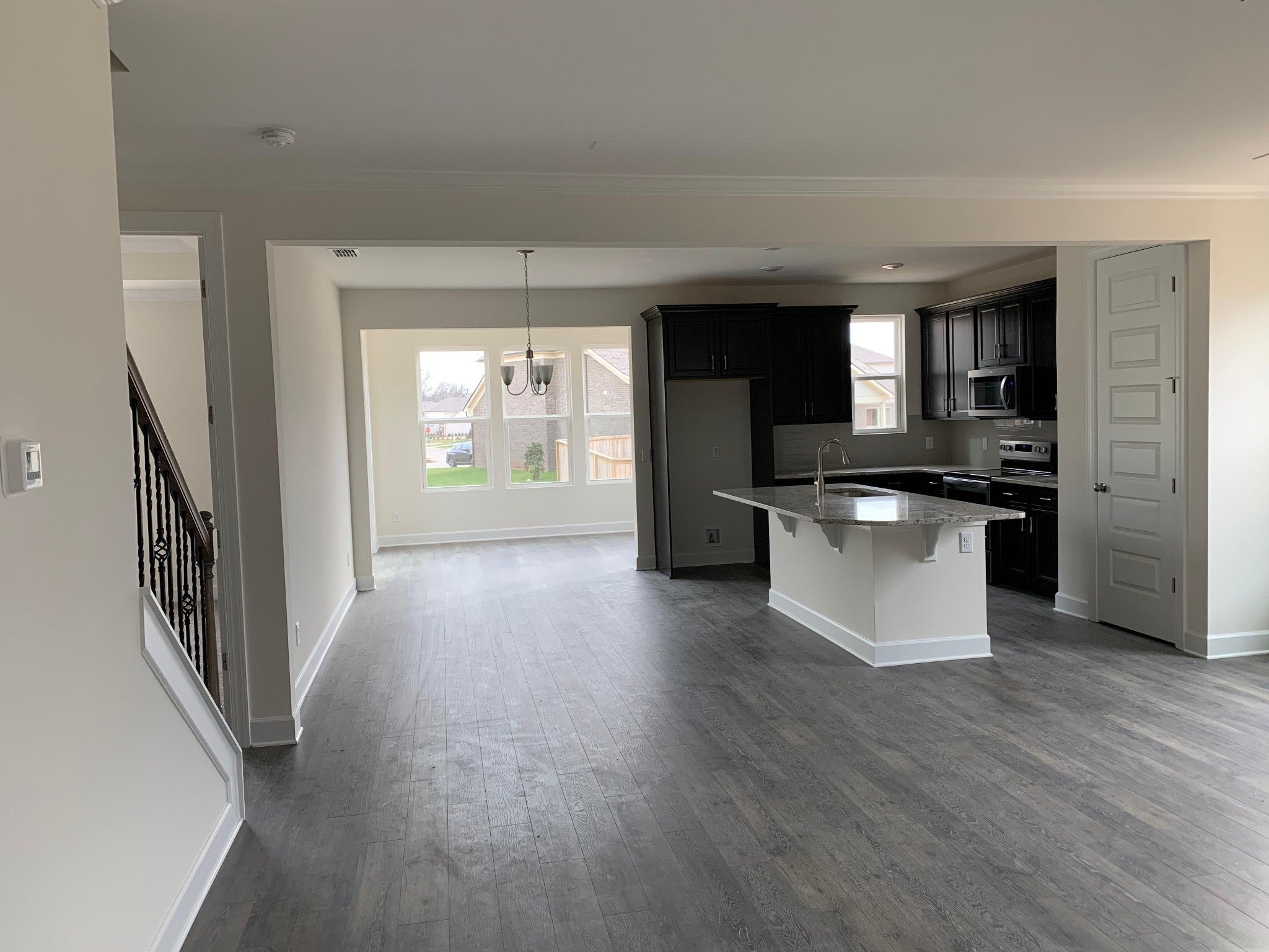 The all-brick Harper plan is a beautifully designed ranch-style home featuring a bonus room plus bedroom 4 and bath 3 upstairs. The main level offers three bedrooms, including a spacious owner’s suite with his-and-hers walk-in closets. An open floor plan showcases extensive hardwood flooring throughout the main living areas and a bright morning room. The upgraded kitchen features granite countertops, stainless steel appliances with a gas range, tile backsplash, 42” upper cabinets, upgraded island cabinetry, and an upgraded faucet. Tile flooring is featured in all bathrooms and the laundry room, with granite countertops in the kitchen and owner’s bath. The owner’s suite includes a tray ceiling and a spa-like bath with a separate tub and shower, double vanities, and raised-height cabinetry. The home also offers ADA-accessible features for enhanced convenience and mobility, along with prewiring for a surround sound system on the main level and a surround system in the bonus room with built-in speakers, ideal for modern entertainment. Additional highlights include 8’ doors with 9’ ceilings on the first floor, recessed LED lighting, a direct-vent fireplace, ornamental iron stair railing, crown molding, upgraded trim, carriage-style garage doors with openers, a concrete patio, and enhanced insulation. Community amenities include a resort-style pool, cabana, and a playground. This move-in-ready home offers comfort, style, and exceptional design throughout.