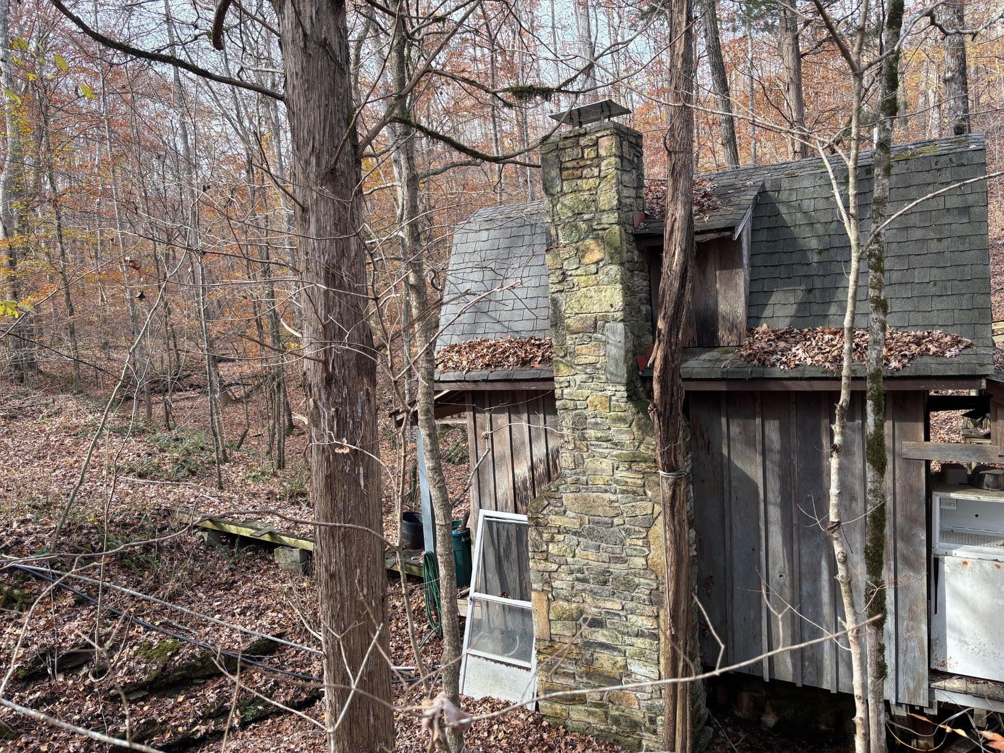 Perfect as a Duplex for an investment property or Income producing live /rent situation. Both units have fresh paint throughout and new ceiling fans and light fixtures. Ready for your new tenants to move in. Total square footage is only for main floor. Located on 5 wooded acres with a stone creekside pump house with fireplace and decking for entertaining. Workshop in basement is equipped with a 4th fireplace and full bathroom. Brand new well pumps into 1000 gallon reserve water tank. Never pay another water bill! Both sides of Duplex have two bedrooms, their own washer/dryer hookups, fireplaces and one and a half bathrooms each. They also have their own deck with great views of the natural setting.