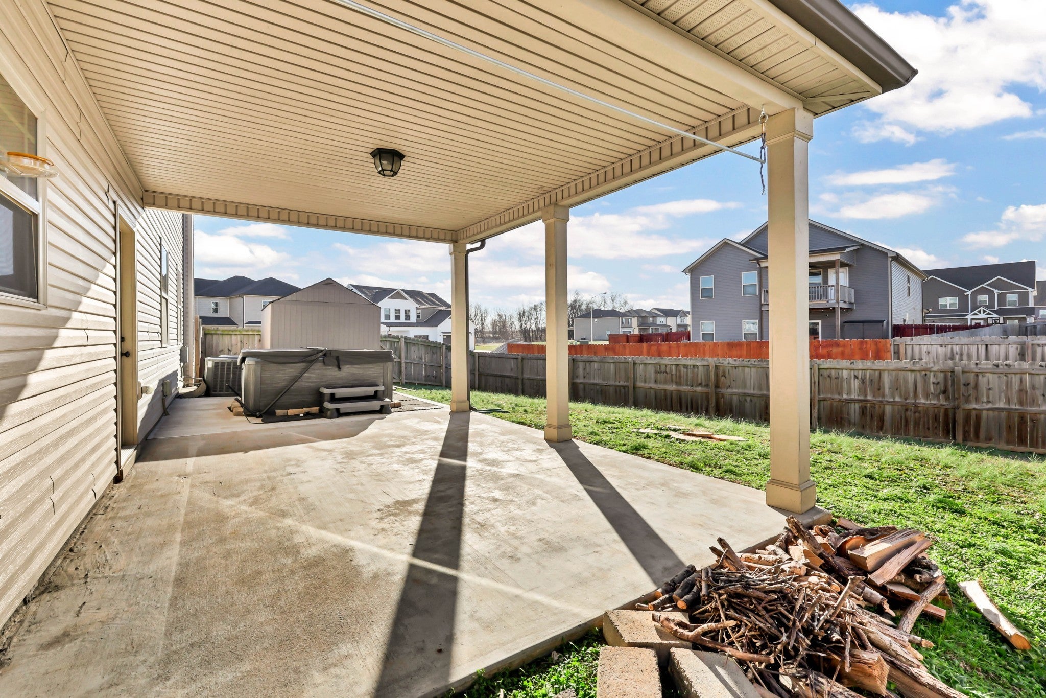 Beautiful corner-lot home featuring 5 bedrooms and 3 full bathrooms. Open kitchen with granite countertops and center island, separate formal dining room, and cozy living room with fireplace. Freshly painted interior throughout. Spacious primary suite offers double vanities and a tiled shower. Enjoy a fenced backyard with hot tub and storage shed, plus a 2-car garage. Washer and dryer convey. Located in a desirable neighborhood with sidewalks and a community playground.