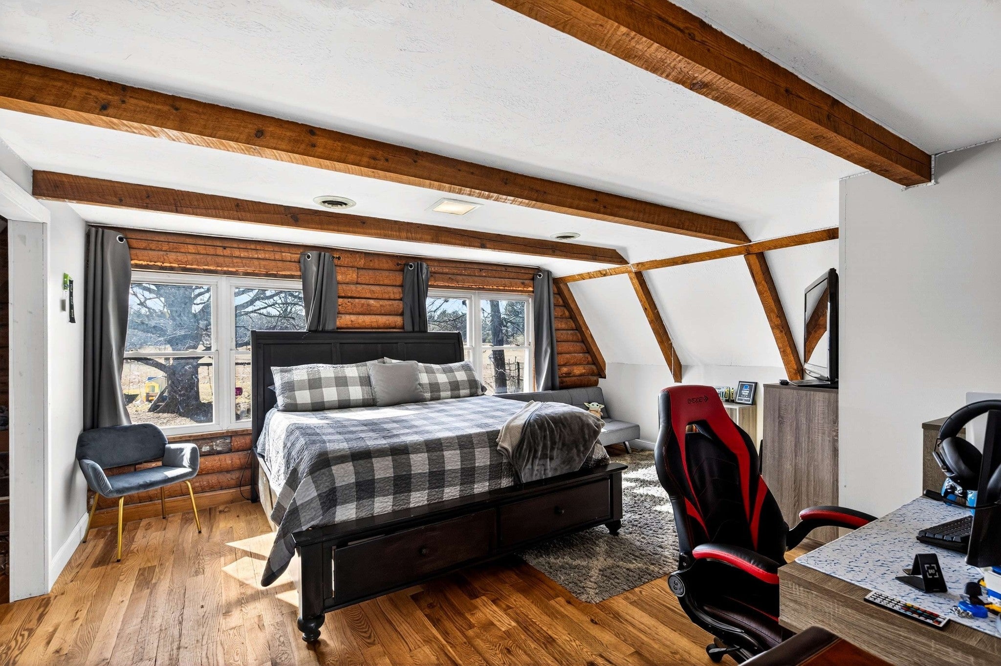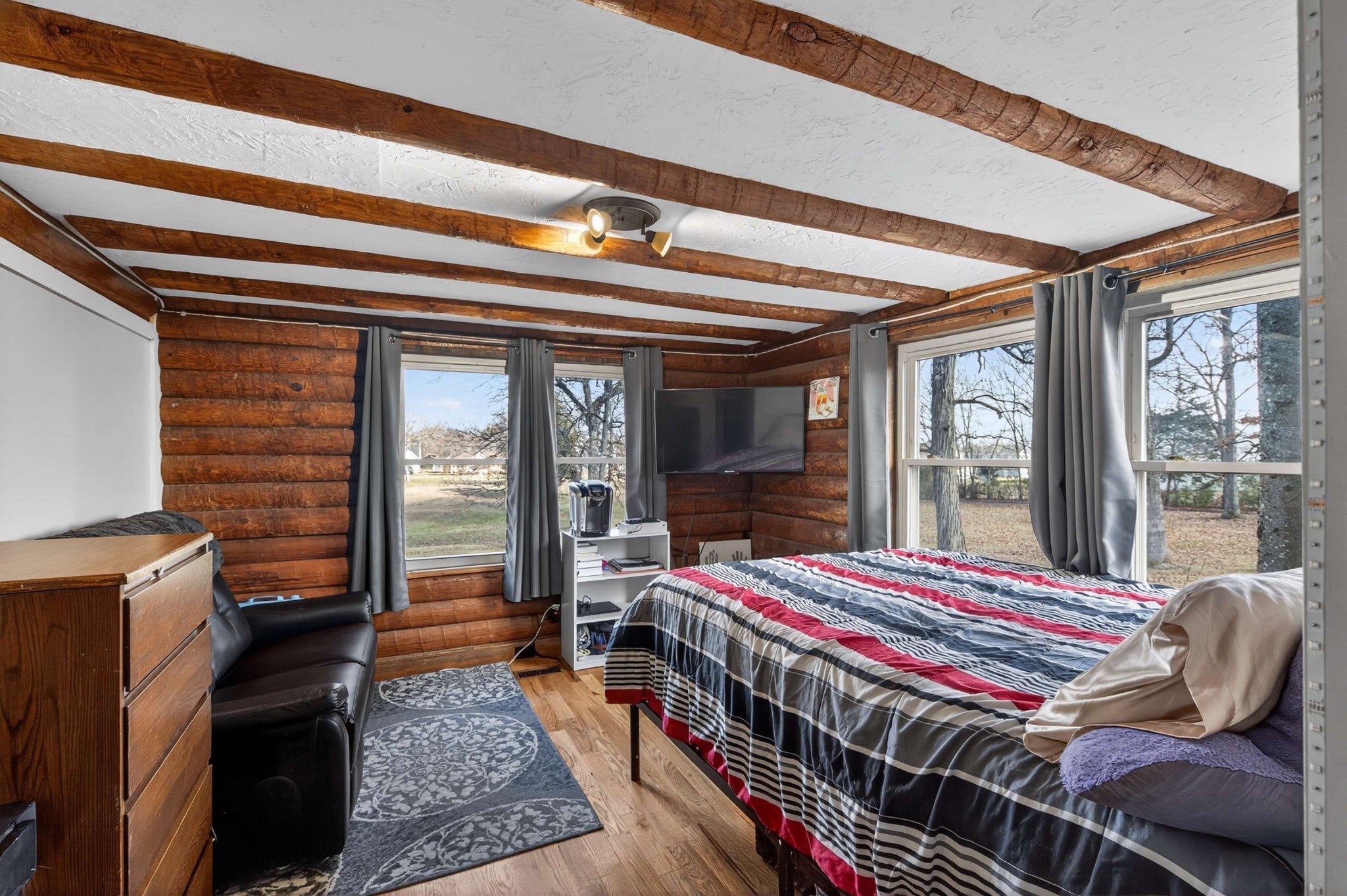 Development potential! Discover your ideal retreat in this exceptional log home, offering more than 3,500 sq ft of thoughtfully crafted living space set on 3.7 tranquil acres. With 5 generous bedrooms, 3 full bathrooms, a dedicated office, and a sunroom perfect for greeting the morning or unwinding at day’s end, the layout balances comfort with versatility. The living room showcases a dramatic vaulted ceiling and a cozy fireplace, creating a warm, welcoming ambiance. The kitchen is a chef’s dream, featuring granite countertops, a gas stove, built-in oven, and microwave—everything you need to cook, entertain, and enjoy with ease. There is an additional 3.68 acres behind this property that may be purchased that will make this an 7 + acre estate. Coming soon! Whether hosting loved ones or savoring the peaceful privacy of the acreage around you, this home offers space, seclusion, and timeless character. Experience the best of log home living paired with modern convenience.