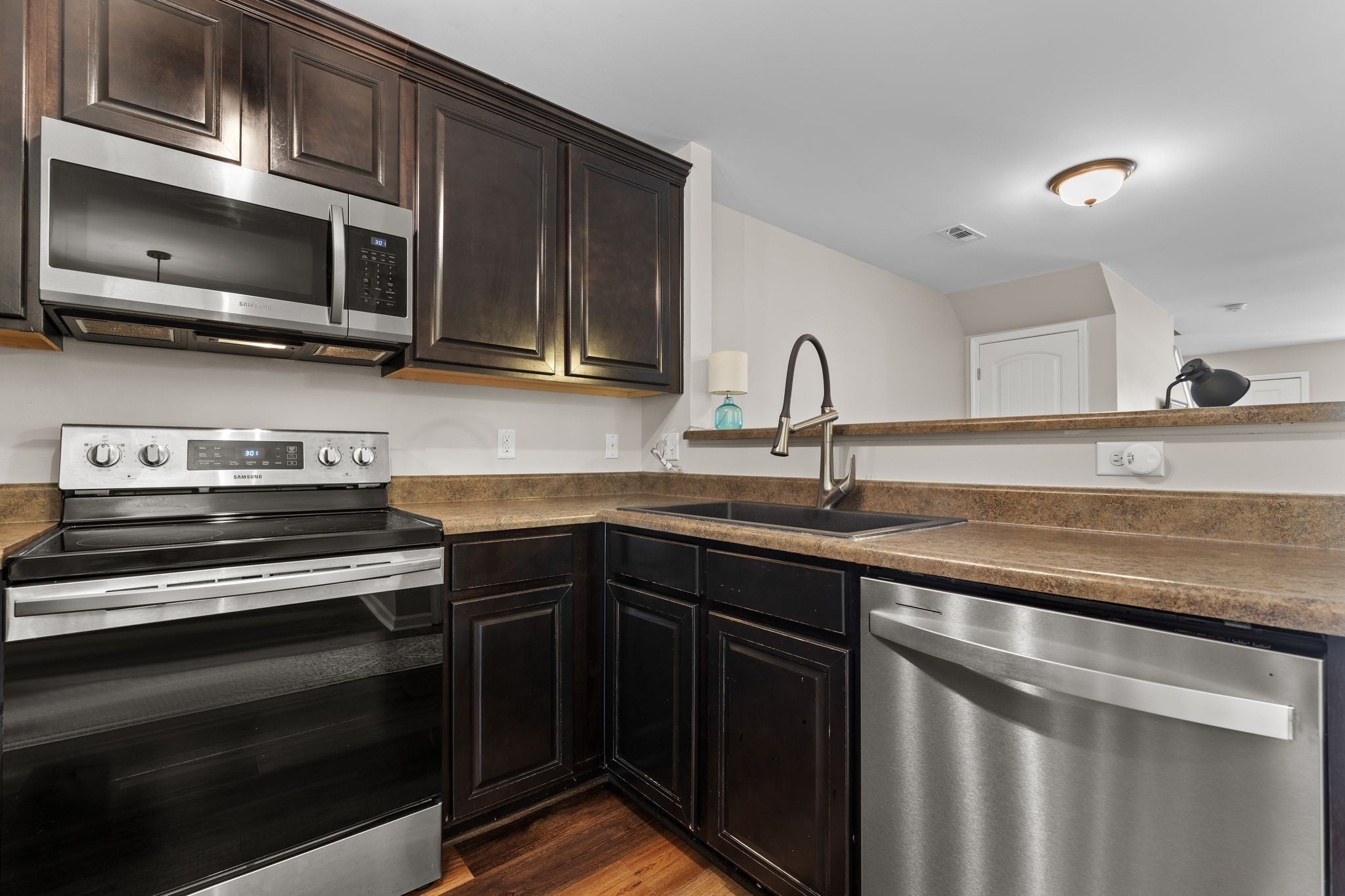 - Electric Oven, Dishwasher, Disposal, Dryer, Ice Maker, Microwave, Stainless Steel Appliance(s), Washer