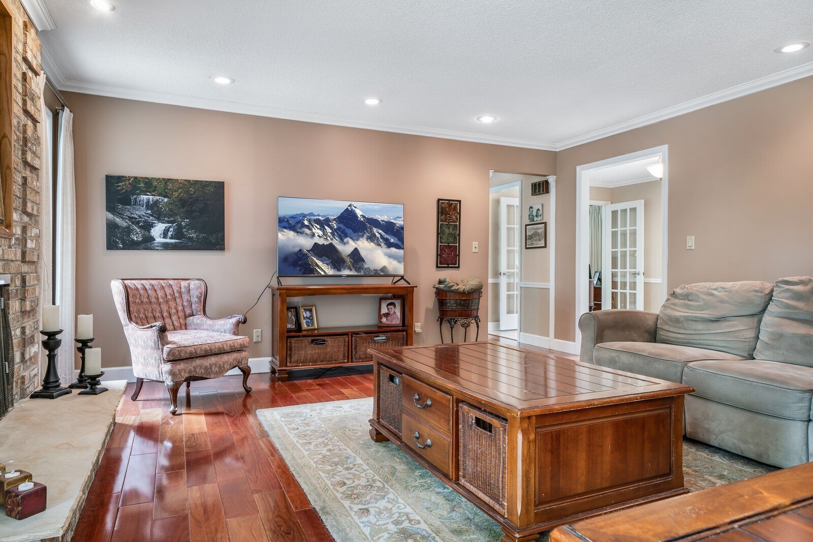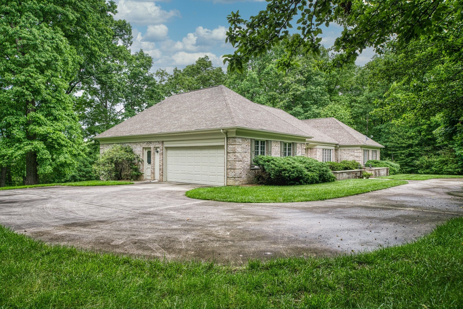 This all brick ranch style home is sure to impress! Features include 3 bedrooms, 2 1/2 baths, Brazilian Cherry floors, inviting tile entry with French doors leading to the office or formal dining, walk-in shower, office with closet (that could be additional bedroom), custom cabinets, pantry, laundry room, oversized side entry garage with additional room for storage, Roof only 12 years, circle drive and private patio expanding the back of house for entertaining for starts! Buyer to verify all information and measurements prior to making an offer.