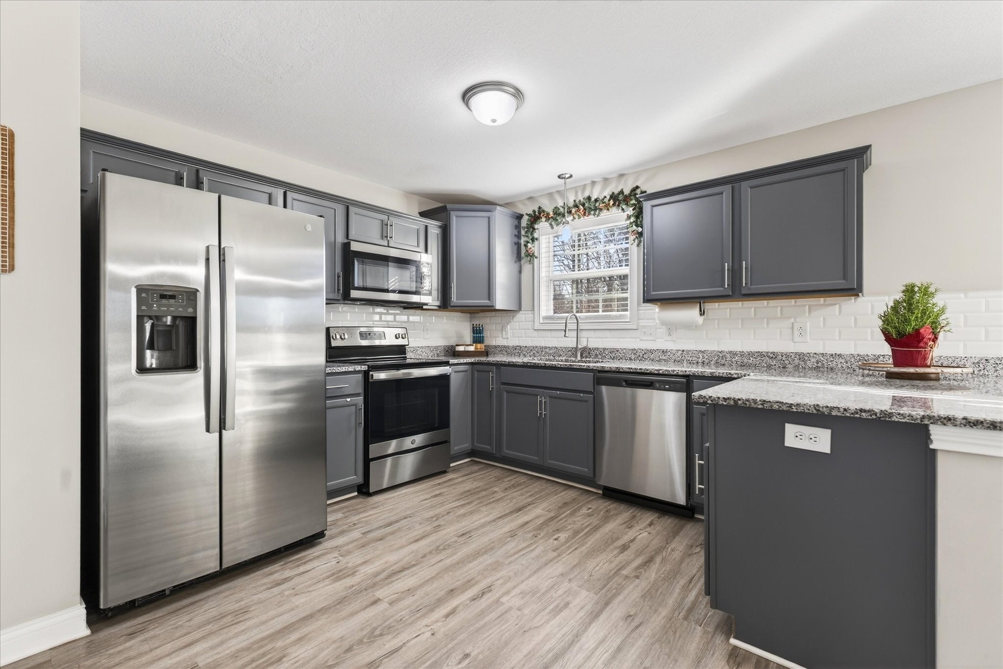- Electric Oven, Electric Range, Dishwasher, Microwave, Refrigerator, Stainless Steel Appliance(s)