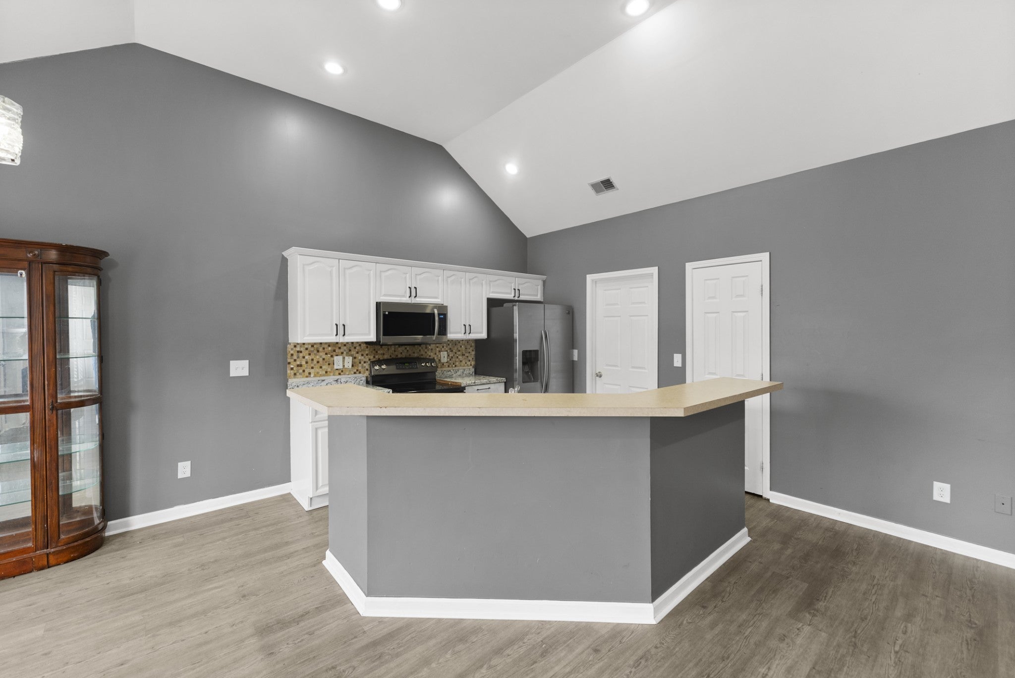 - Electric Range, Dishwasher, Disposal, Microwave, Refrigerator