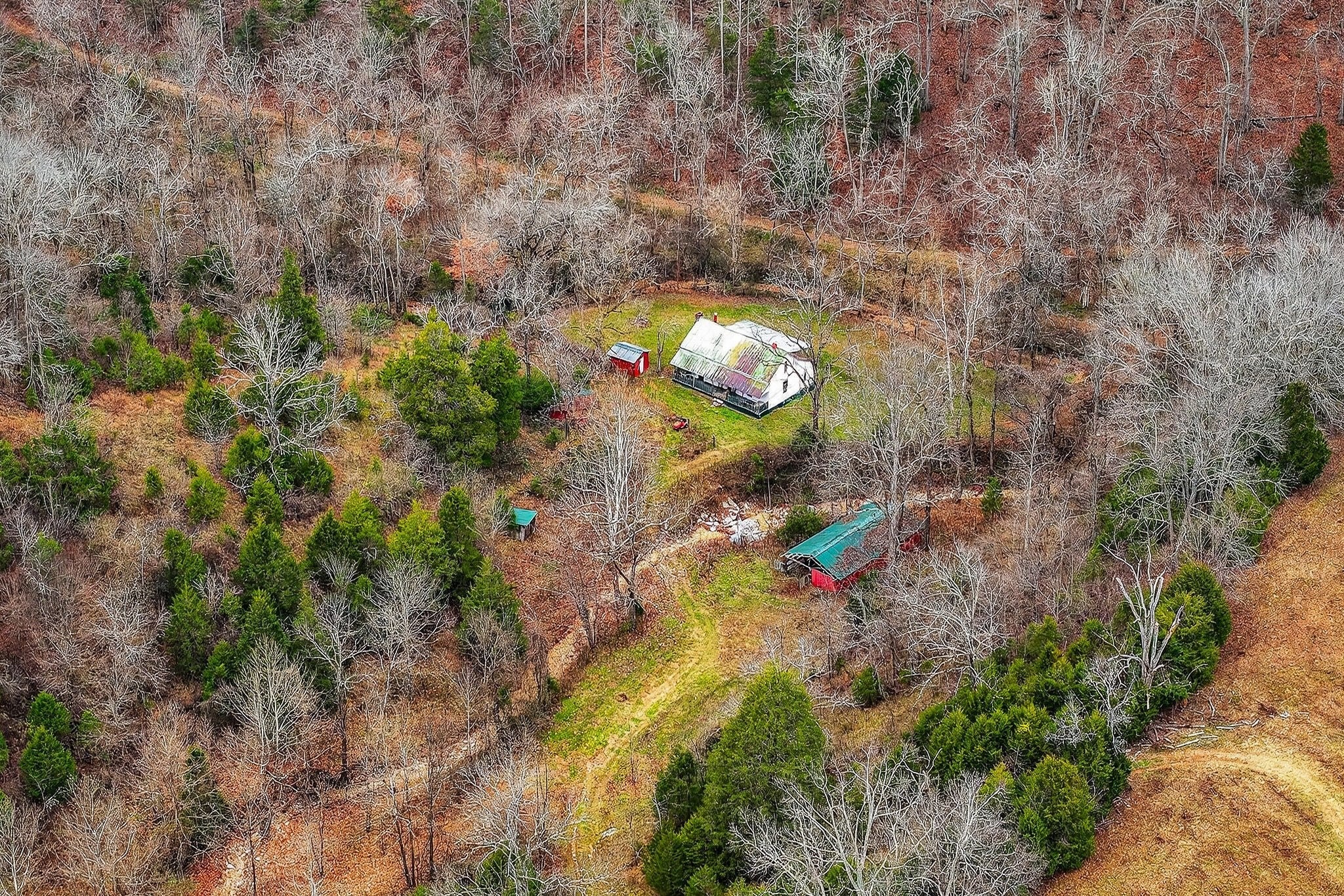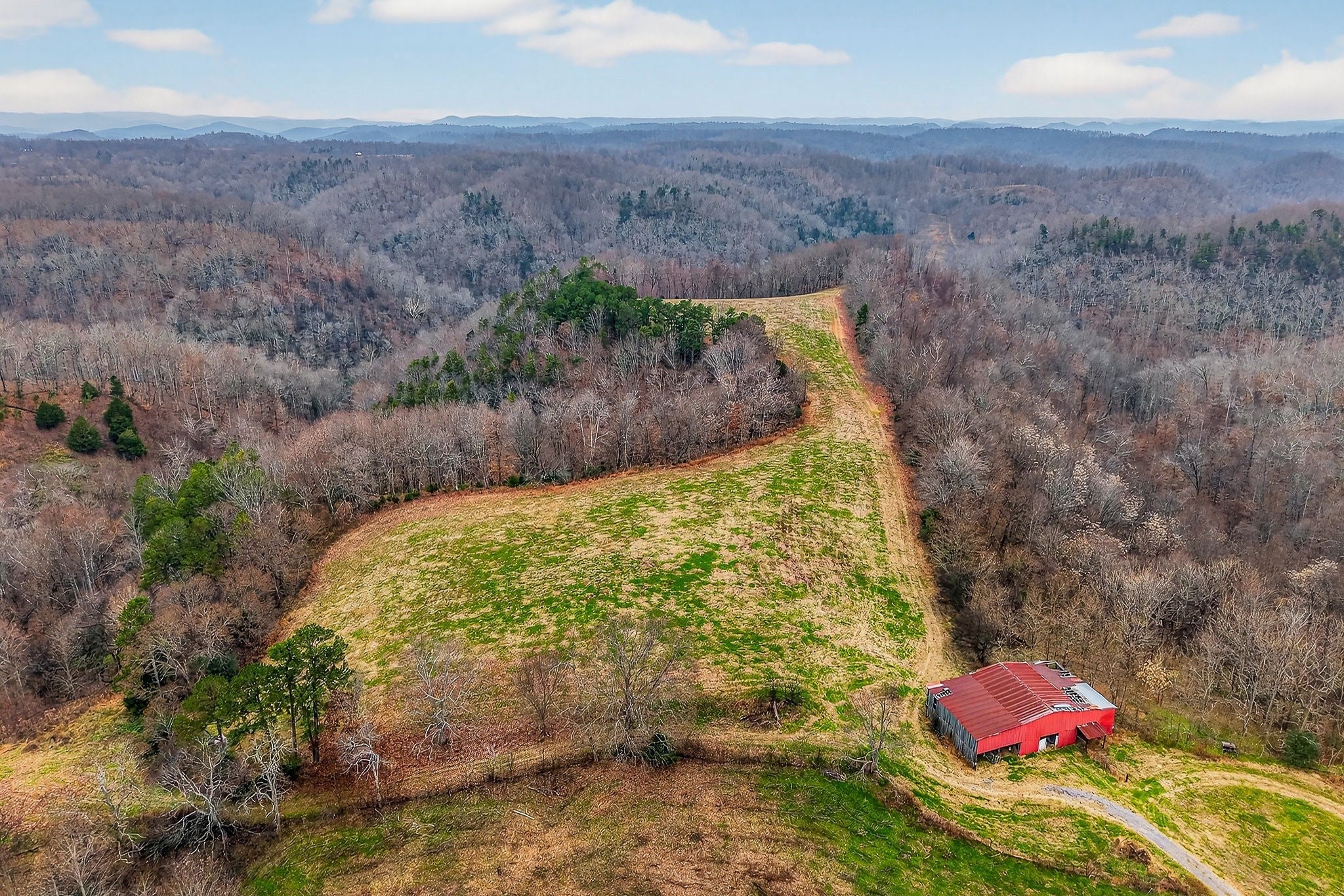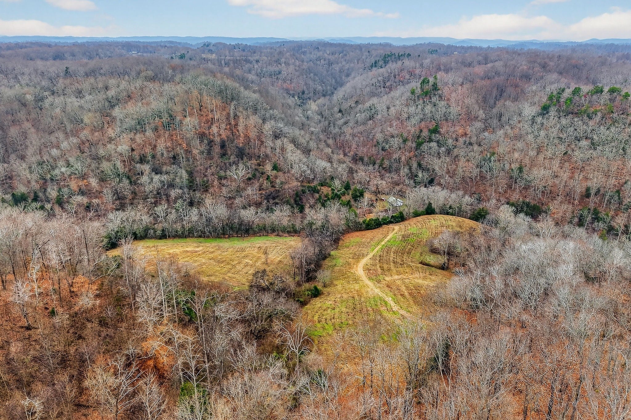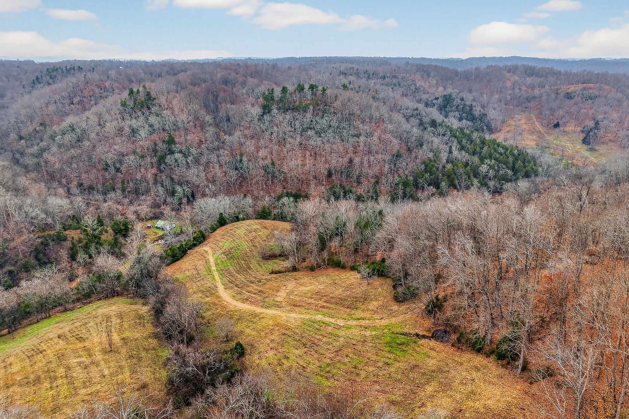 Located a short drive from Smithville, Tennessee, this century farm features a blend of open and wooded acreage with elevated ridge-top settings and long-range mountain views. Cleared ridge tops provide open ground and multiple potential building areas, while steep, timbered ridges add natural cover, privacy, and a classic Middle Tennessee mountain character. Several building sites are positioned to capitalize on the terrain and views, offering options for a primary residence, weekend cabin, or recreation-focused retreat. Utilities are available at the county road, simplifying evaluation of future development possibilities. Two farmhouses are on the property. The first, along the road and built in 1948, will require extensive repairs or full renovation. The second is an older homestead in the valley that reflects a traditional mountain lifestyle and showcases the property’s history. Together, these structures contribute to the historic setting and may offer opportunities for restoration, repurposing, or removal based on the buyer’s plans and due diligence. The property supports abundant wildlife, including deer and turkeys. The steep terrain forms natural funnels, benches, and travel corridors, while timbered slopes, edge cover, and bedding areas create quality habitat. Several locations are suitable for adding food plots to further enhance attraction and management options. A freshwater spring provides a natural year-round water source, and the steep ridges offer strong conditions for timber growth. Mature trees across the wooded ridges add long-term value and appeal. County road frontage and available utilities offer convenient access and practical development choices. Smithville is nearby for daily services, and Nashville International Airport is roughly an hour away. This property is well-suited for buyers seeking Tennessee acreage with a mix of woods and open ground, natural water, building potential, and strong recreational appeal in a mountain-view setting