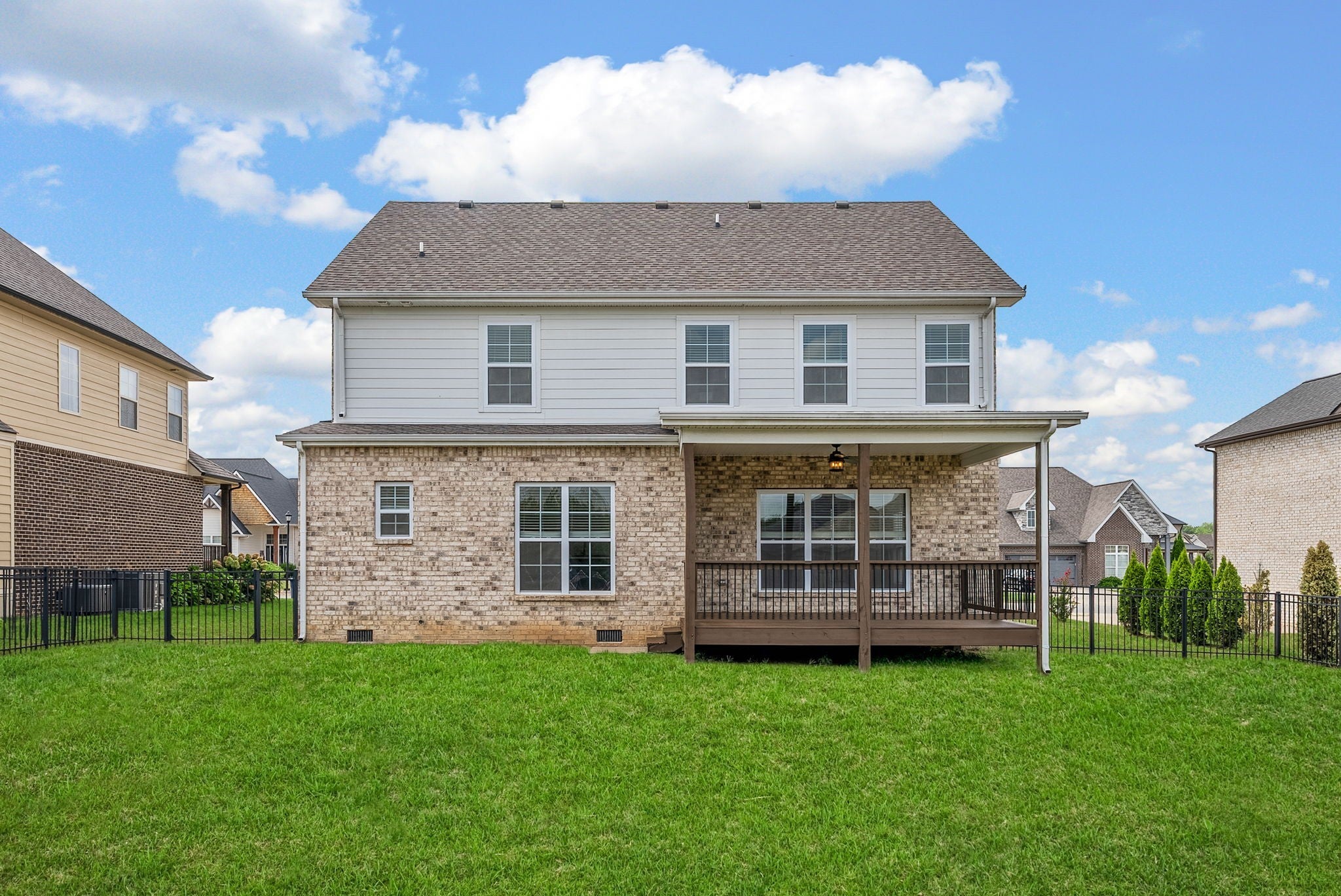 Stunning home located in the highly desired Hereford Farms neighborhood! This home features 4 bedrooms, 2.5 bathrooms, and blends modern convenience with timeless comfort! The open floor plan is flooded with natural sunlight, highlighting the gorgeous hardwood flooring throughout the main level. The gourmet kitchen is designed for both style and function, featuring upgraded cabinetry, quartz countertops, black stainless steel appliances to include a gas range/oven, a spacious island, AND a Butler's pantry; a true chef's kitchen. Relax in the living area by the cozy tiled fireplace, host dinner parties in the formal dining room, or enjoy quiet mornings on the covered back deck. Upstairs the large primary suite offers the ultimate spa like retreat with separate stand alone tub and tiled shower, double sinks and TWO walk-in closets. Three additional bedrooms and laundry room round out the second story. Step outside to a fully fenced backyard with a large level lot; a great space to unwind after a long day or host summer BBQ's. Additional features include a 2 car garage wired for an electric vehicle and a tankless water heater. This home is in the heart of Sango, centrally located between Ft Campbell and Nashville, surrounded by shopping, restaurants and parks.
