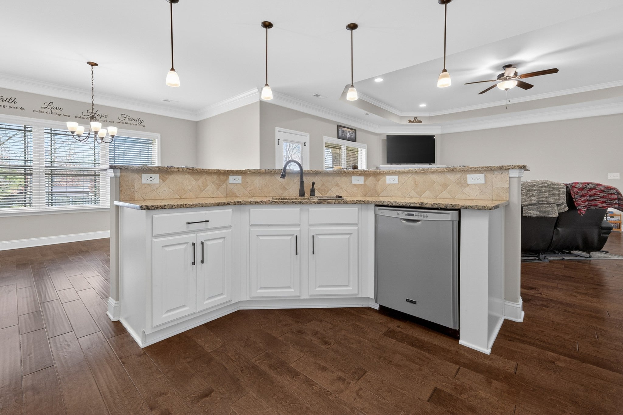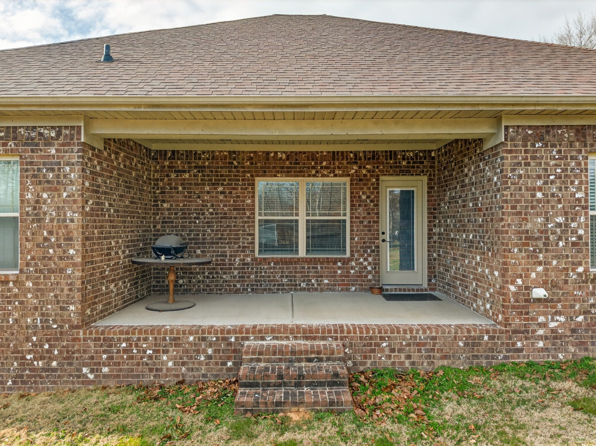 One Level Brick beauty in Knotting Hills is move-in ready featuring 3 bedrooms and 2 baths, granite countertops, tiled backsplash, eat-in dining and stainless steel kitchen appliances. The open floor plan offers hardwoods in main living spaces, an isolated primary suite, gas log fireplace, and a covered patio on over a half acre lot.