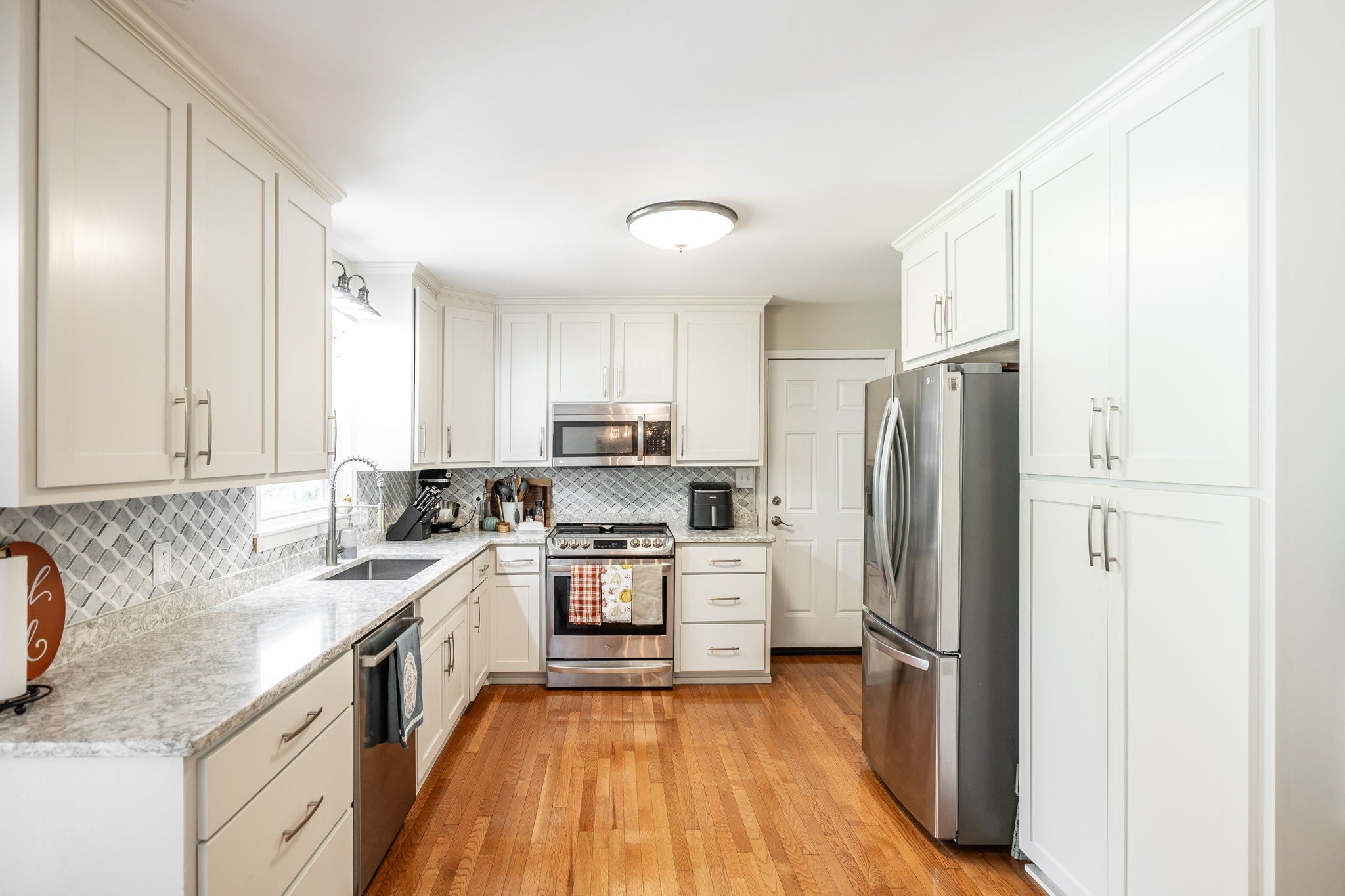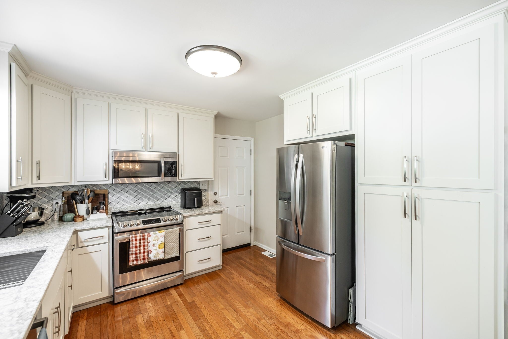 - Electric Oven, Electric Range, Dishwasher, Microwave, Refrigerator, Stainless Steel Appliance(s)