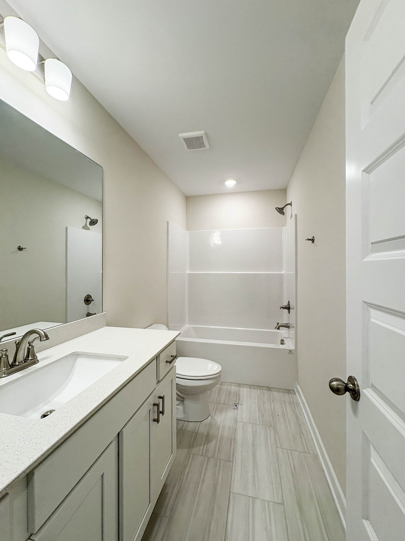 This 4-bed, 3-bath, 2,227 sq ft all-brick home in The Paddock at Kennesaw Farms combines modern design with functional living. The open-concept kitchen features quartz countertops, upgraded cabinetry, a designer tile backsplash, and stainless appliances, connecting seamlessly to a spacious living room with a gas fireplace. Durable laminate flooring enhances the main living areas, while plush carpet adds comfort to bedrooms and tile accents each bath. The primary suite includes a tiled shower and dual vanities, with a second bedroom on the main level and two additional bedrooms upstairs. A versatile rec room offers extra space, while neutral paint, upgraded finishes, and a 2-car front-entry garage complete the design. The Paddock provides convenience to Station Camp schools, shopping, and commuter routes. HOA includes lawn maintenance for low-maintenance living. Ask about our available builder incentives!