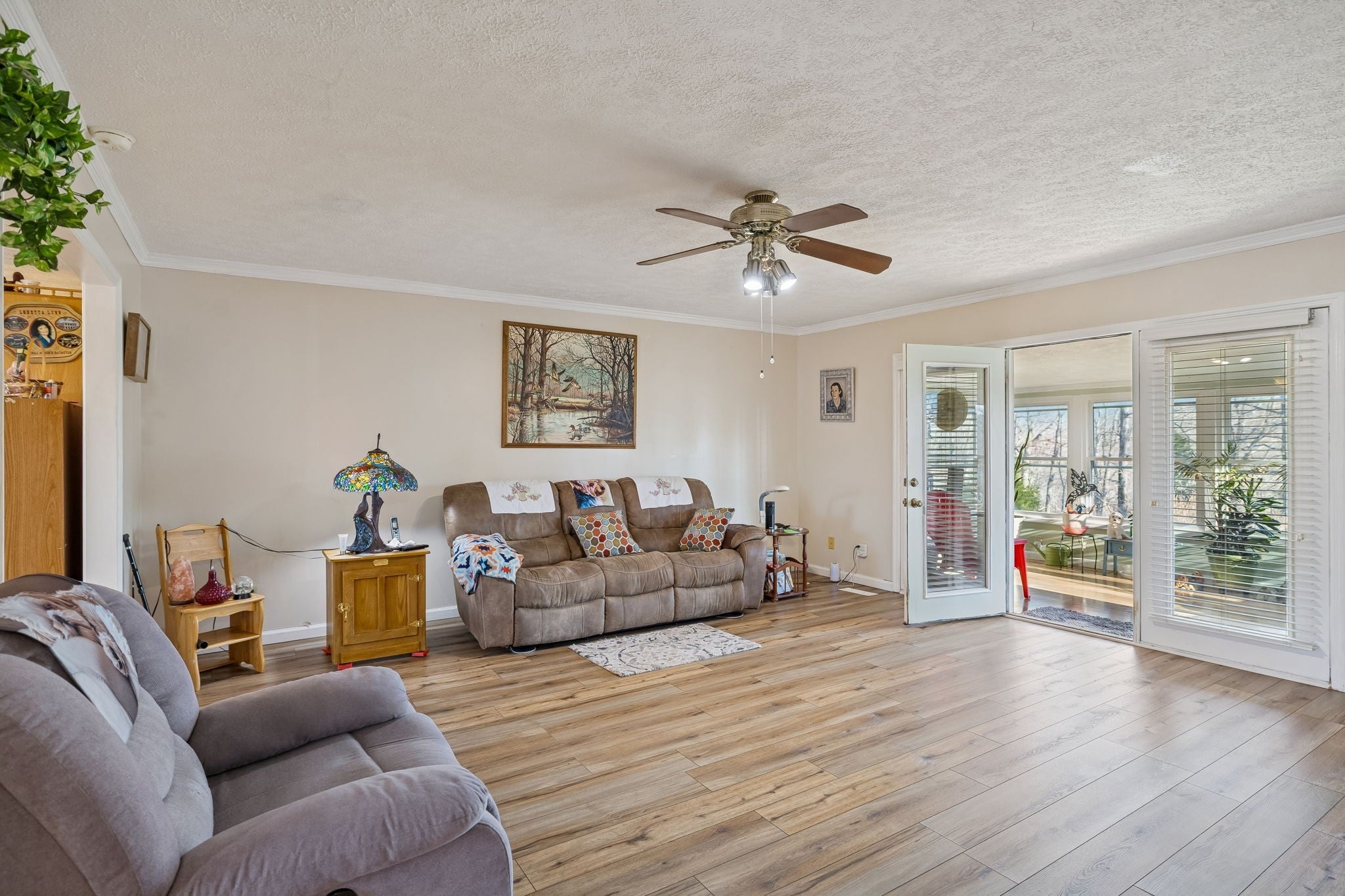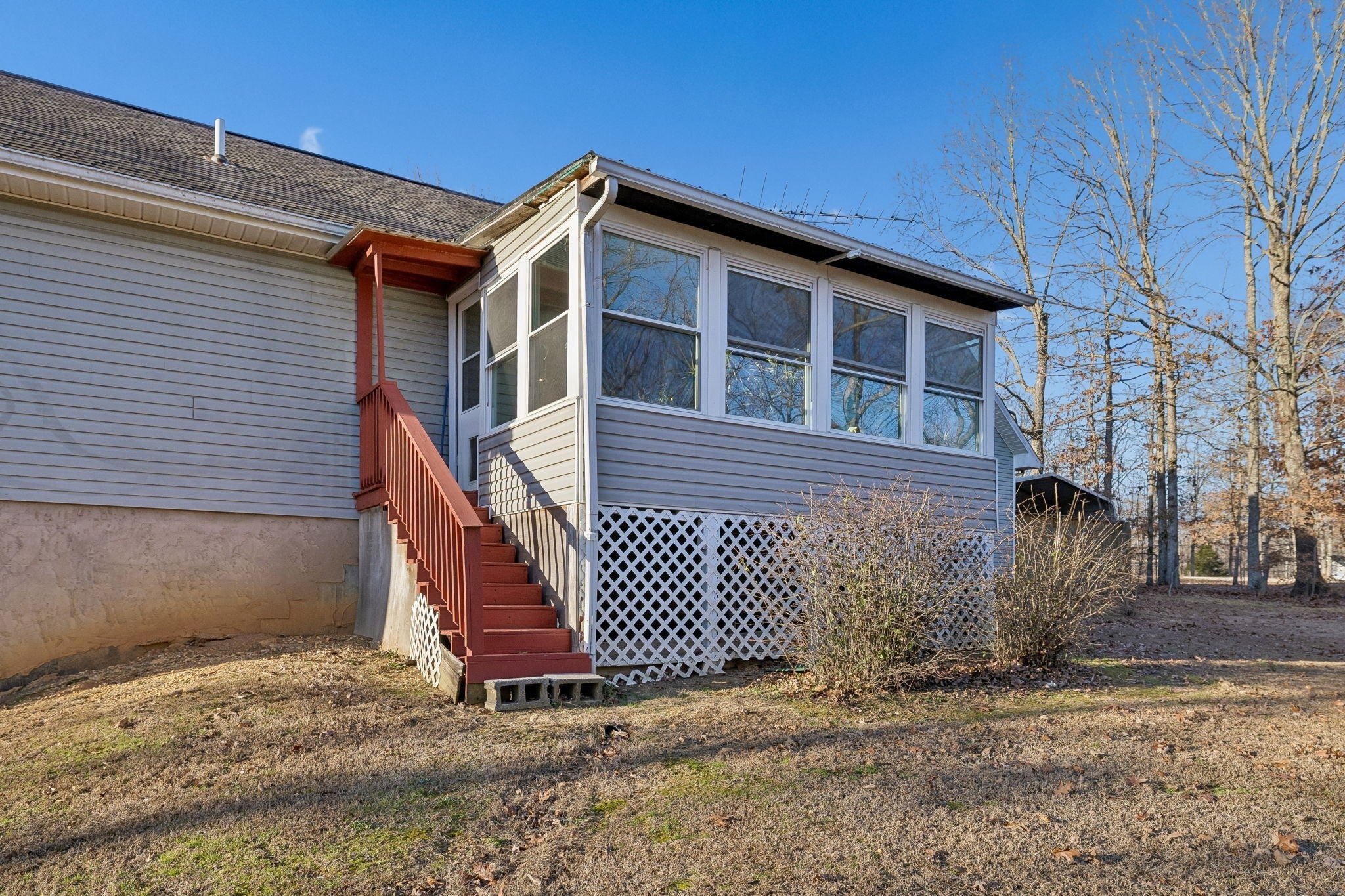 This Charming Southern Living property boasts a large, covered front porch on 1.76 acres. The finished living space on one level has potential to expand into the full unfinished basement with plumbing already in place. Through the front door, step into the foyer that leads to the large living area with oversized cased doorways that create an open concept feel. An enclosed back porch, lined with windows, offers space for your greenery, sitting area, and extended views of your fenced in back yard. Master has ensuite bathroom with walk-in closet and 2 additional bedrooms with ample closet space. Attached 2 car garage for parking or hobbies. Additional covered parking for cars, boats, trailers, or toys! The peace of living on a dead-end street is unparalleled. This acreage allows space for gardening and outdoor recreation. This home offers everything that southern living is all about!