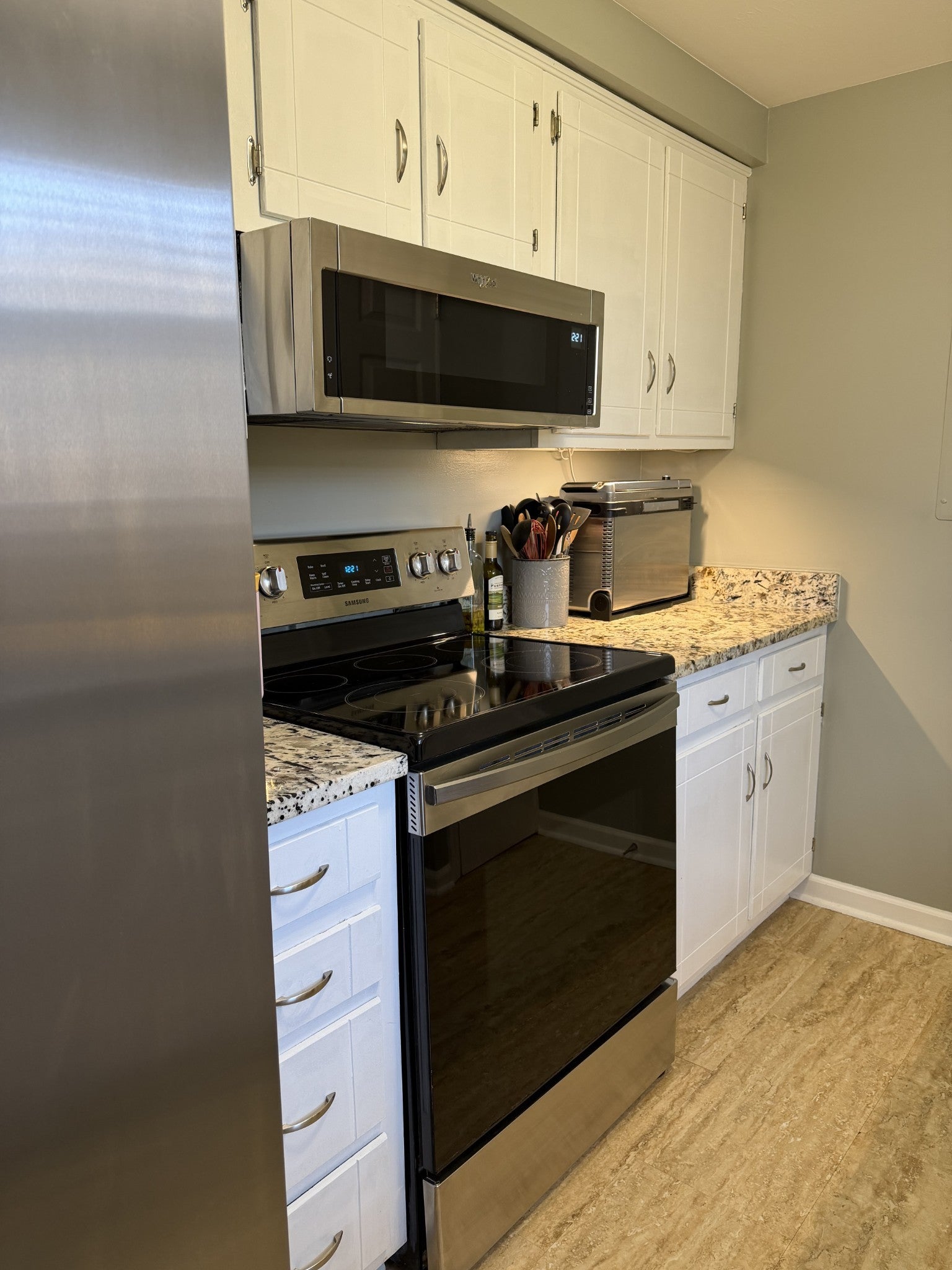 - Electric Oven, Oven, Electric Range, Dishwasher, Disposal, Ice Maker, Microwave, Refrigerator