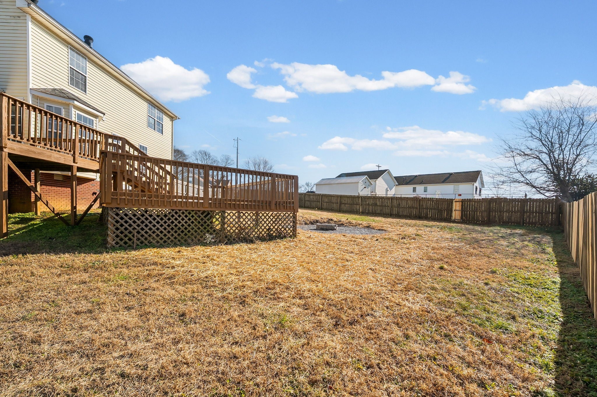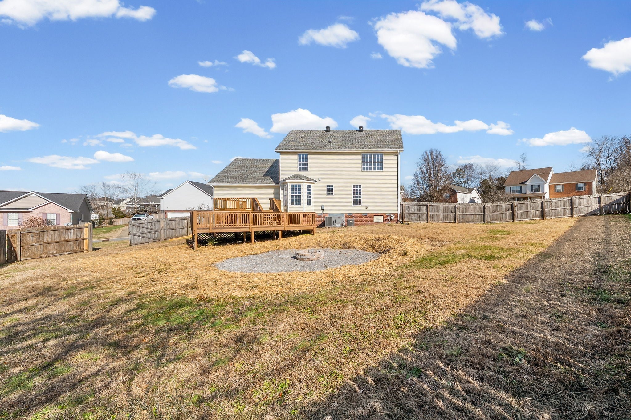 Incredibley unique and one of a kind home on corner lot sitting on almost /2 an acre available now in the desirable Greenland Farms subdivision. Over 2600/sf with so much space and charm. Soaring ceilings in the living room with woodburning firplace, formal dining room with valuted ceilings. Kitchen has new counter tops, updated lighting and plenty of natural light along with a cozy breakfast nook. Primary suite located on the main level with huge walk in tile shower and double vanities. 1/2 bath located on the main level. New carpet throughout. Hardwood floors on main level in living room dining room and primary suite. Upstairs you'll find a massive bonus room, 2 additional bedrooms, a full bathroom and a cozy office (could also make a super cute library.) Side entry 2 car garage. Backyard has a large deck and firepit area great for entertaining and is fully fenced. Located just a short drive to downtown Clarksville, Liberty Park Marina and Fort Campbell.