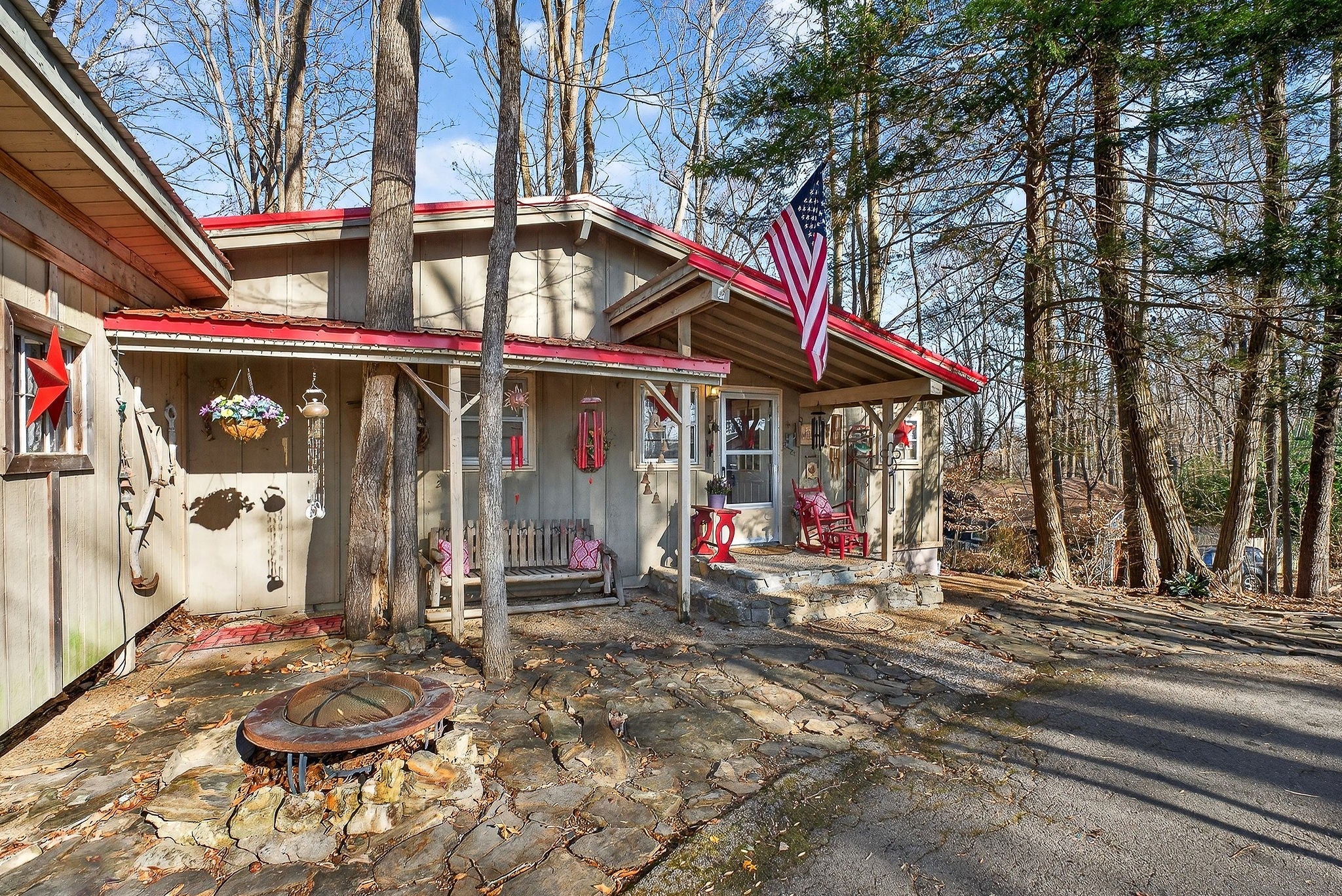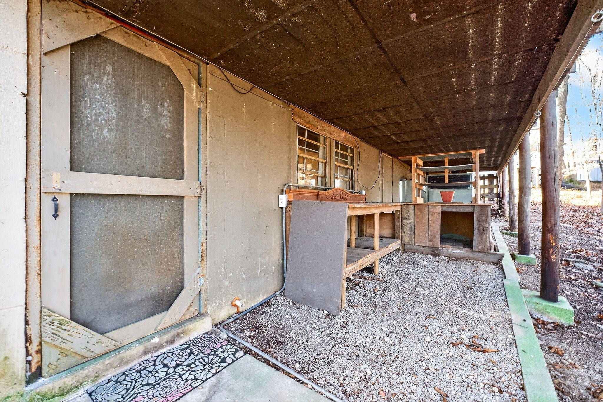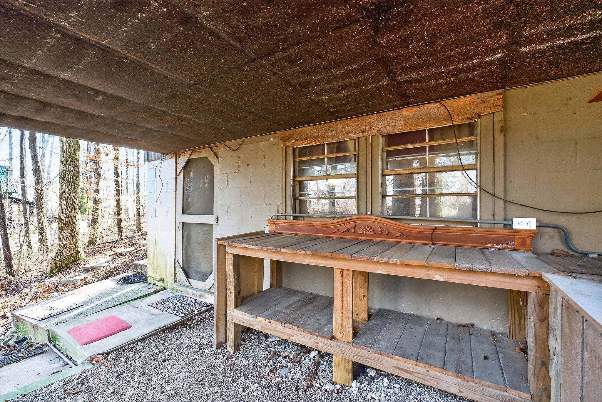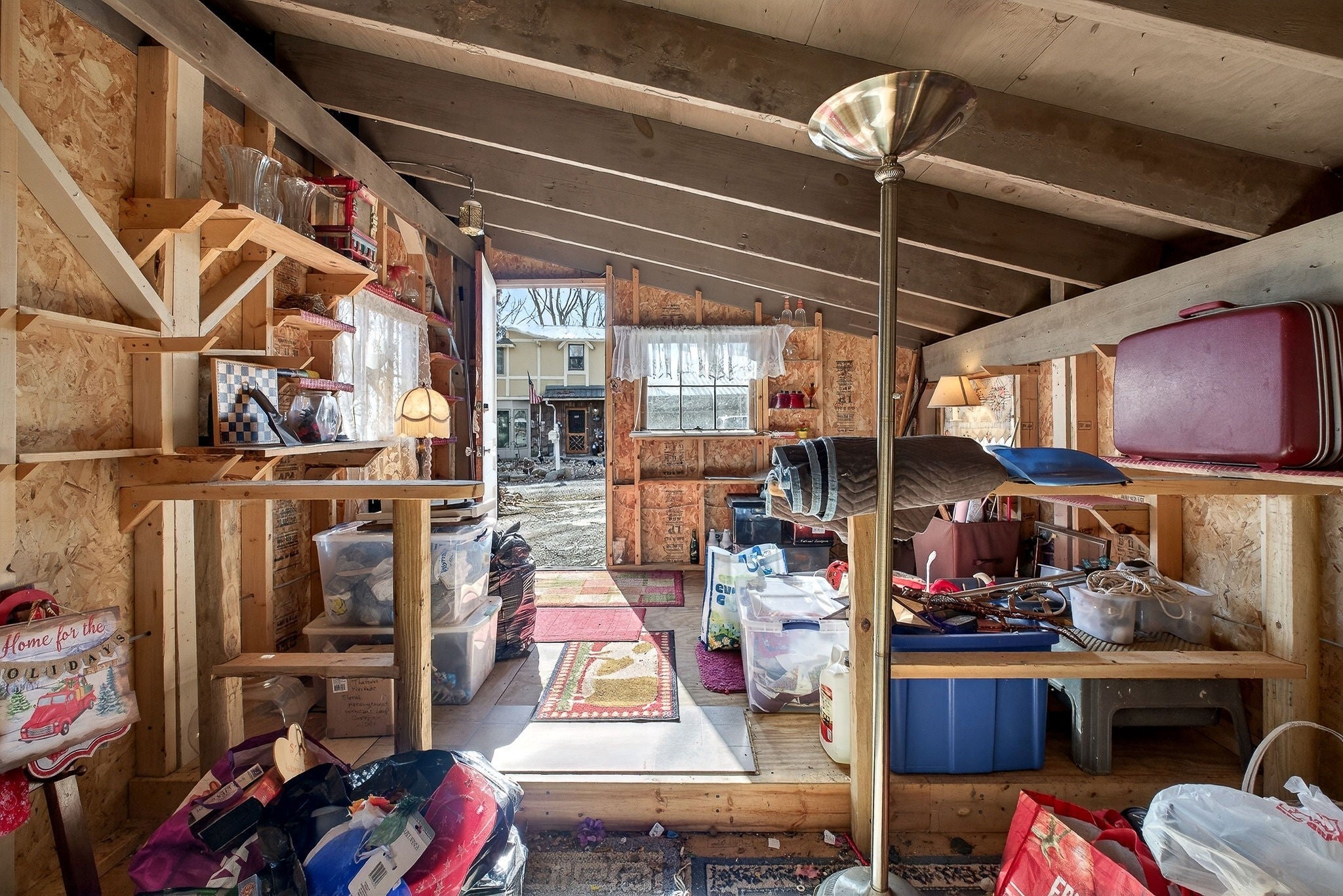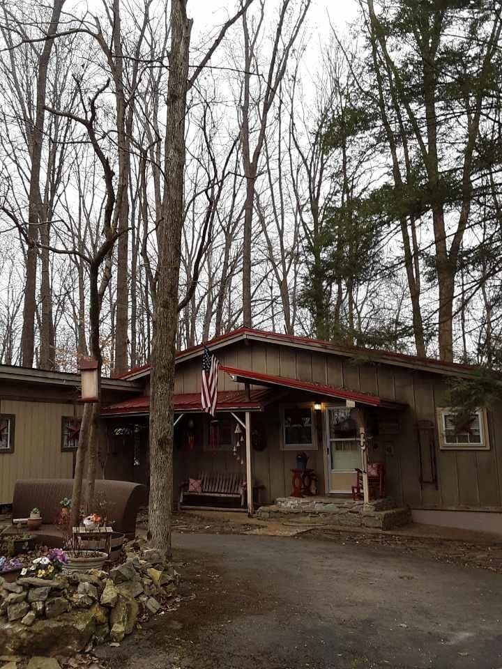 This 3 bedroom, 1.5 bathroom home is located in the Holiday Haven community and offers a flexible setup for a full-time residence or a seasonal retreat. The living room features two large sliding glass doors that open to a beautiful wooded, panoramic view from a screen-in porch, filling the space with natural light and creating a strong connection to the outdoors. The home offers a split floor plan, providing added privacy between bedrooms. Recent updates include a new HVAC system, a new water heater, and a metal roof that is approximately seven years old. Flooring and a toilet in one bathroom have also been recently replaced. The kitchen includes a large pantry, and all kitchen appliances remain, along with the washer and dryer. The basement provides a spacious laundry area, large den, additional storage, and access to a workbench area under the deck, plus a storage cellar beneath the home. Outdoor features include a large deck with scenic views, mature landscaping, and a large shed that connects to the front of the house. There is also space to the right of the home for an additional storage shed or workshop if desired. This property offers a solid foundation and a blank slate for a buyer looking to personalize a home in a peaceful, wooded setting.