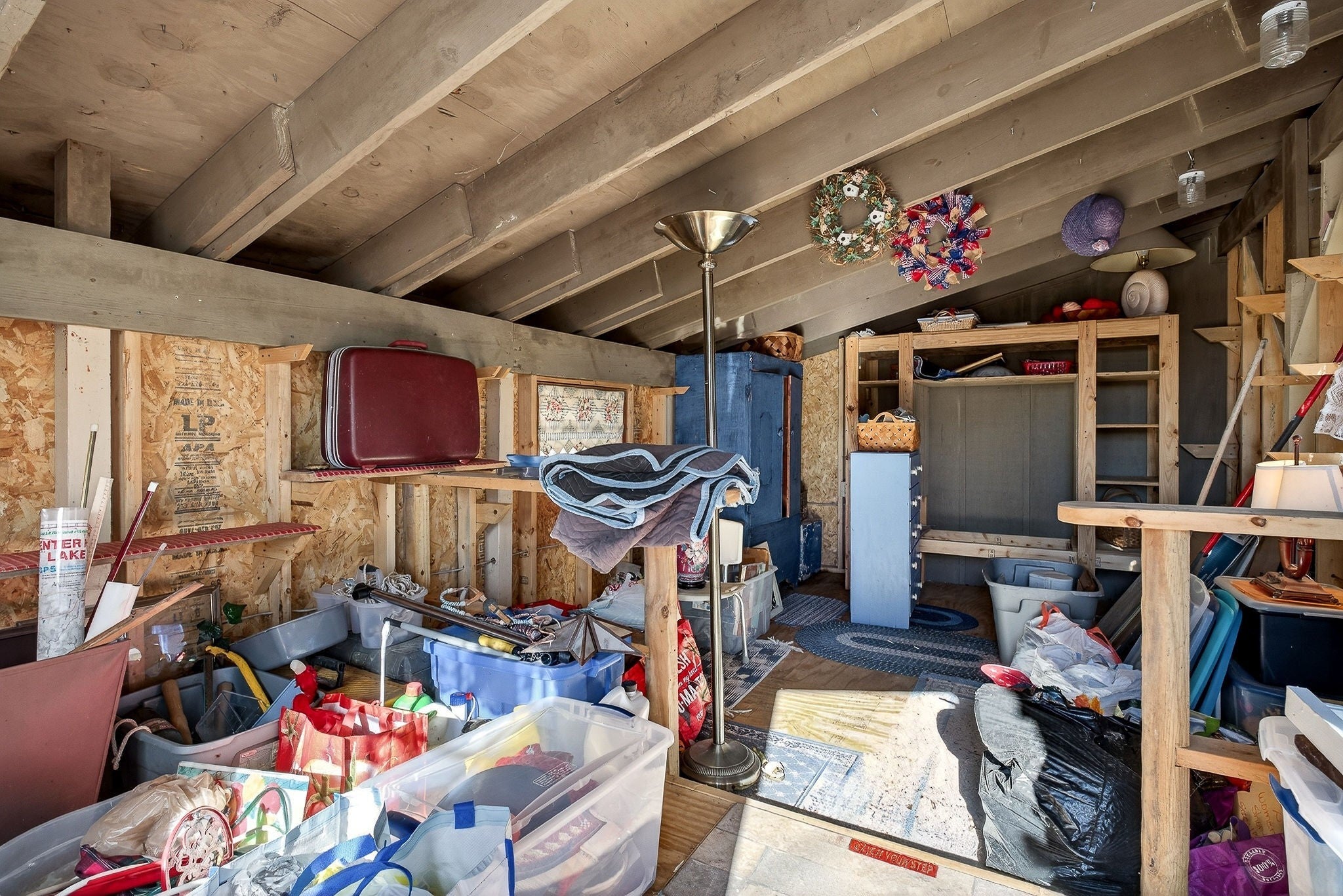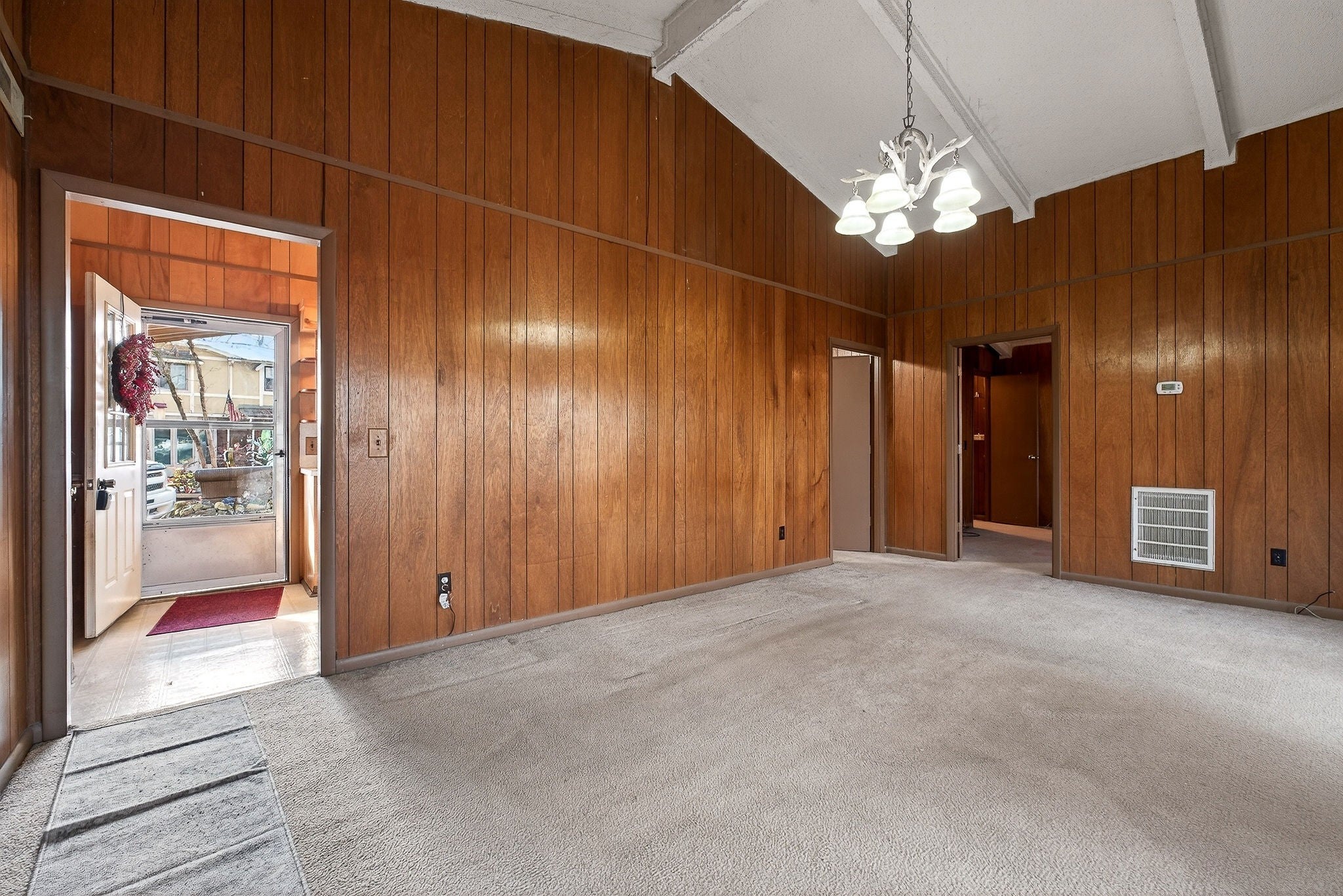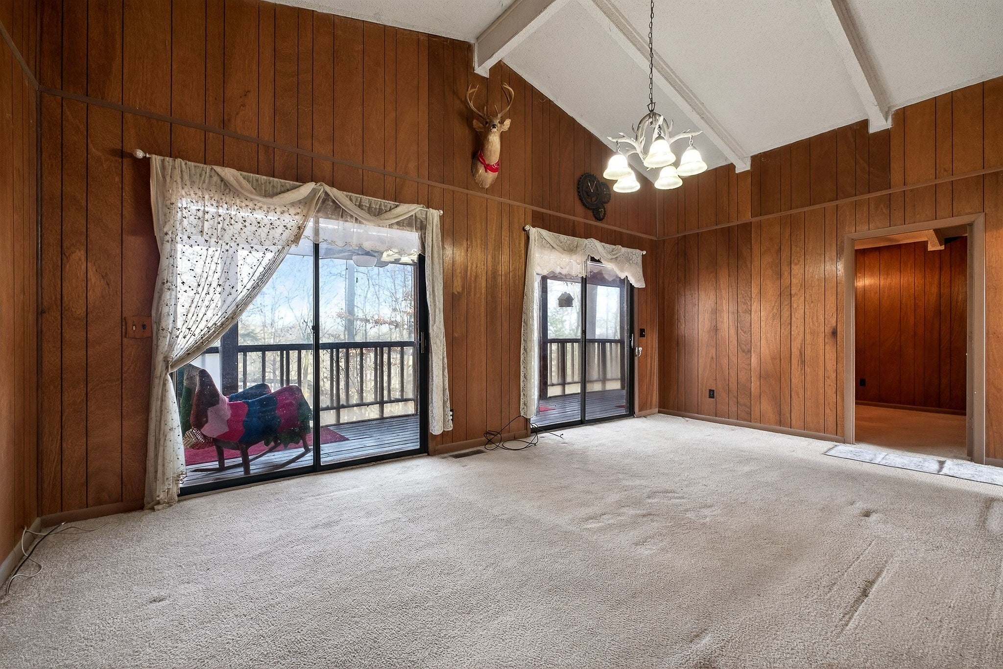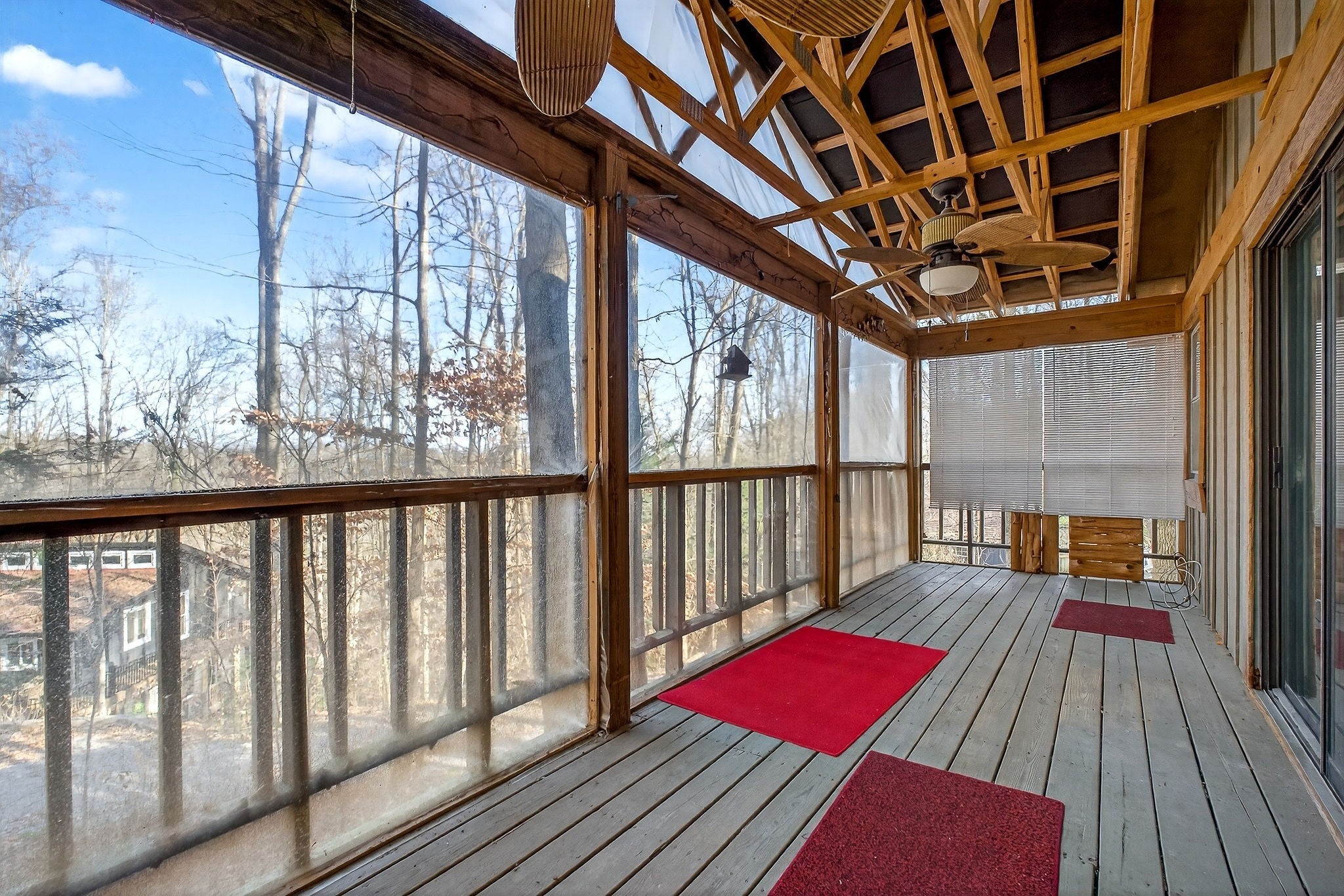 This 3 bedroom, 1.5 bathroom home is located in the Holiday Haven community and offers a flexible setup for a full-time residence or a seasonal retreat. The living room features two large sliding glass doors that open to a beautiful wooded, panoramic view from a screen-in porch, filling the space with natural light and creating a strong connection to the outdoors. The home offers a split floor plan, providing added privacy between bedrooms. Recent updates include a new HVAC system, a new water heater, and a metal roof that is approximately seven years old. Flooring and a toilet in one bathroom have also been recently replaced. The kitchen includes a large pantry, and all kitchen appliances remain, along with the washer and dryer. The basement provides a spacious laundry area, large den, additional storage, and access to a workbench area under the deck, plus a storage cellar beneath the home. Outdoor features include a large deck with scenic views, mature landscaping, and a large shed that connects to the front of the house. There is also space to the right of the home for an additional storage shed or workshop if desired. This property offers a solid foundation and a blank slate for a buyer looking to personalize a home in a peaceful, wooded setting.