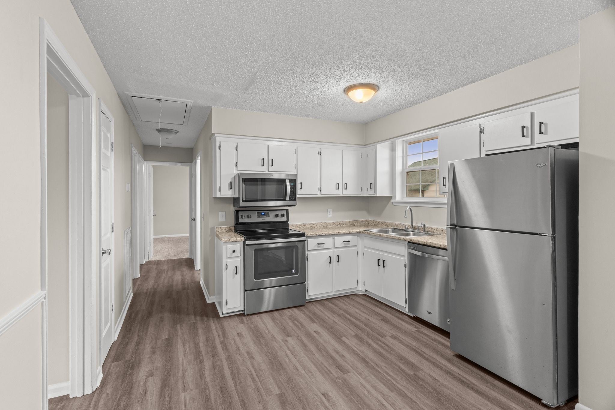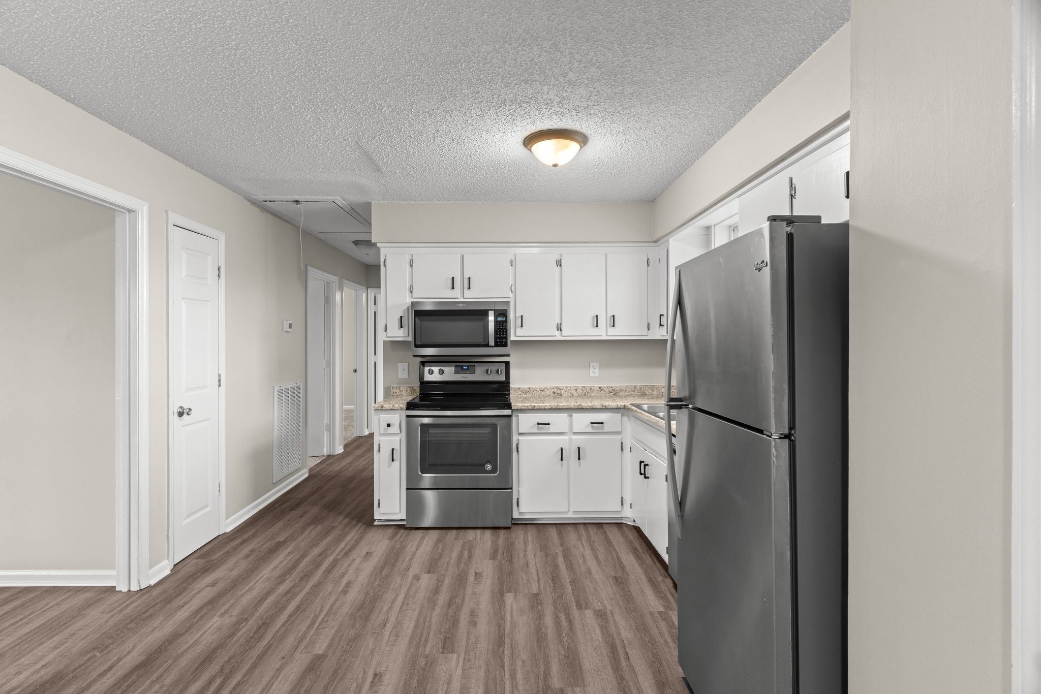- Oven, Electric Range, Dishwasher, Microwave, Refrigerator, Stainless Steel Appliance(s)