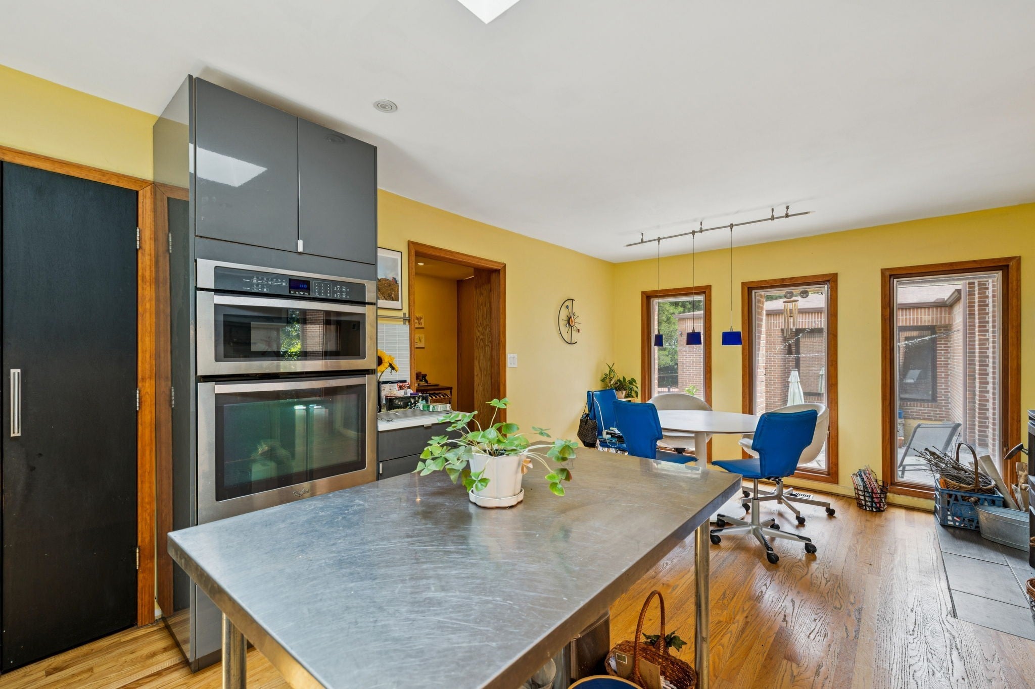 - Built-In Electric Oven, Cooktop, Dishwasher, Disposal, Dryer, Microwave, Refrigerator, Stainless Steel Appliance(s), Washer