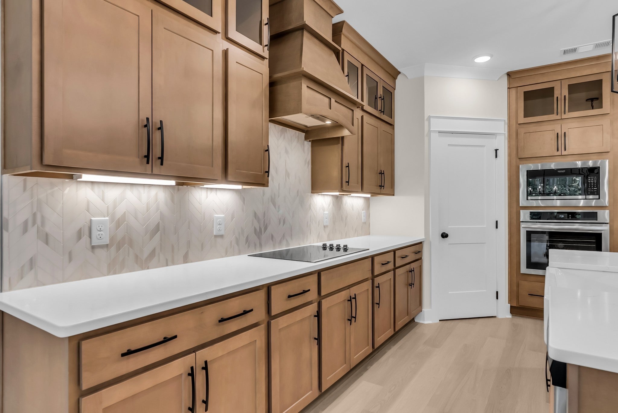 - Built-In Electric Oven, Cooktop, Dishwasher, Disposal, Microwave, Stainless Steel Appliance(s)