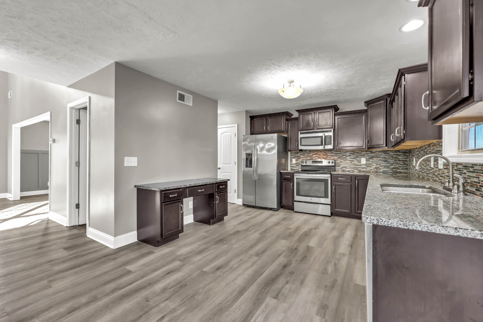 - Electric Range, Dishwasher, Disposal, Ice Maker, Microwave, Refrigerator, Stainless Steel Appliance(s)