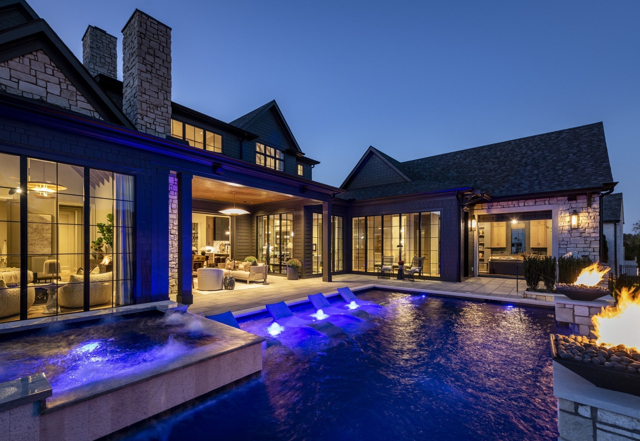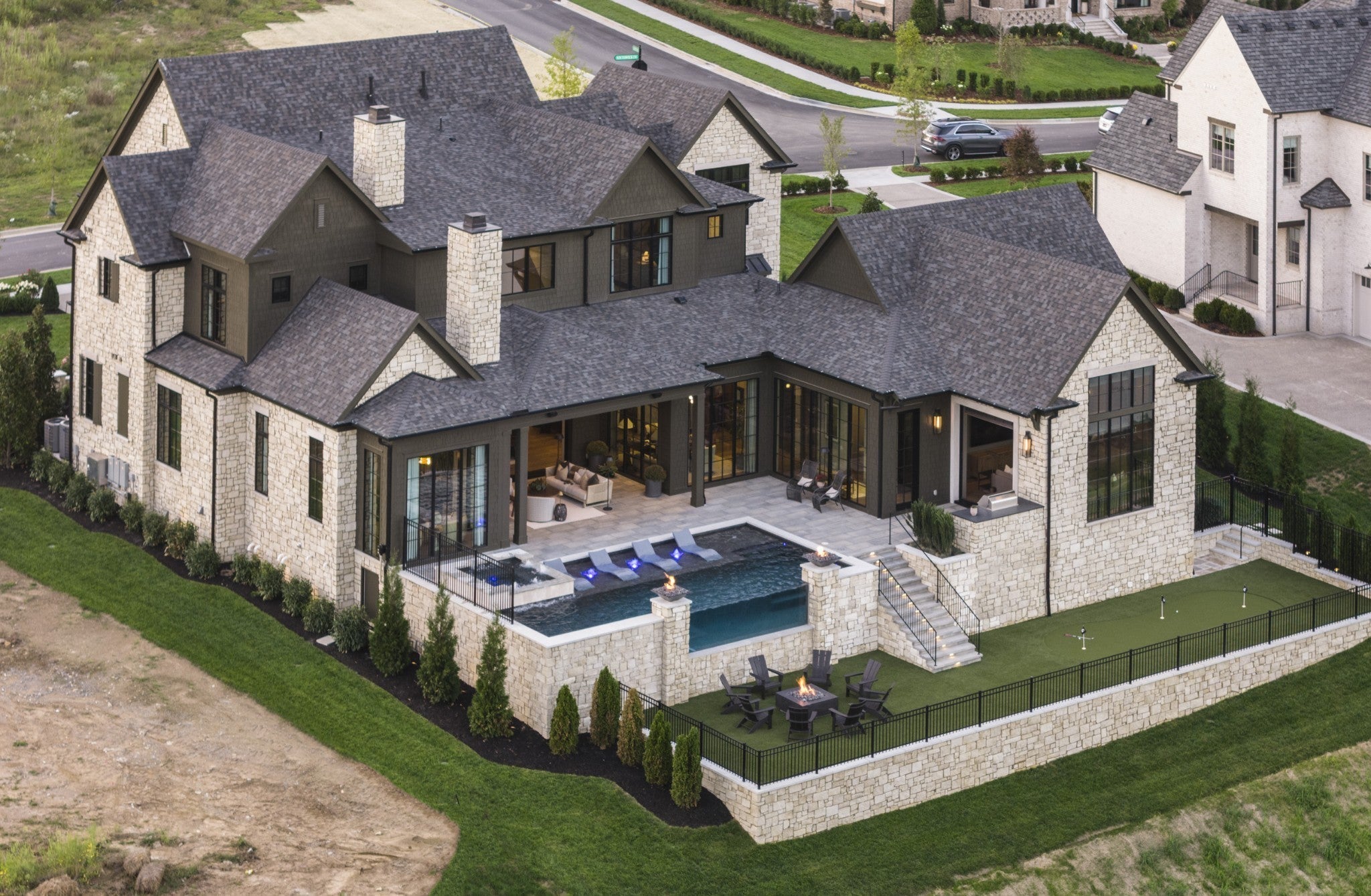 Cutting-edge design with a unique blend of natural and modern element by Stonegate Homes- This is your chance to call a BRAND NEW 2025 PARADE HOME your own. Gorgeous stone exterior welcomes you. From the front door, look through the vaulted Great Room to see your own personal backyard retreat, including a custom pool & spa with water features, fire bowls, and an infinity edge, a fire pit, putting green, grill station, and year-round covered porch. 5 Bedroom suites with their own private bath. Home elevator. Control 4/Lutron lighting throughout. Media Room on main level features stone-milled wall & wet bar. Bonus room & separate flex space on upper level. Two laundry rooms. Main Kitchen houses separate islands, Wolf & Subzero appliances, PLUS separate prep kitchen and Wet Bar conveniently located off the kitchen. With each corner looking like a magazine shoot, you have to see this home to believe it! Proof of Funds/pre-approval required to show.