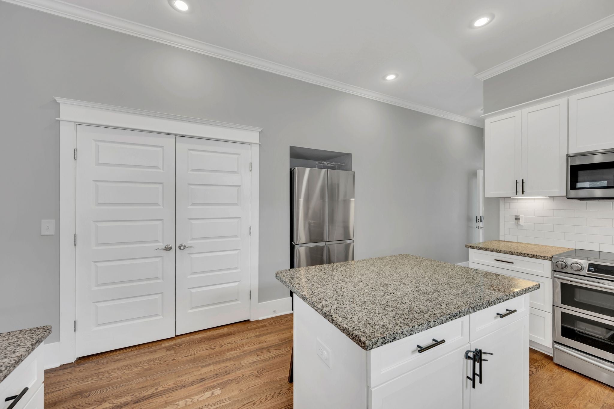 - Double Oven, Electric Range, Dishwasher, Disposal, Microwave, Refrigerator, Stainless Steel Appliance(s)