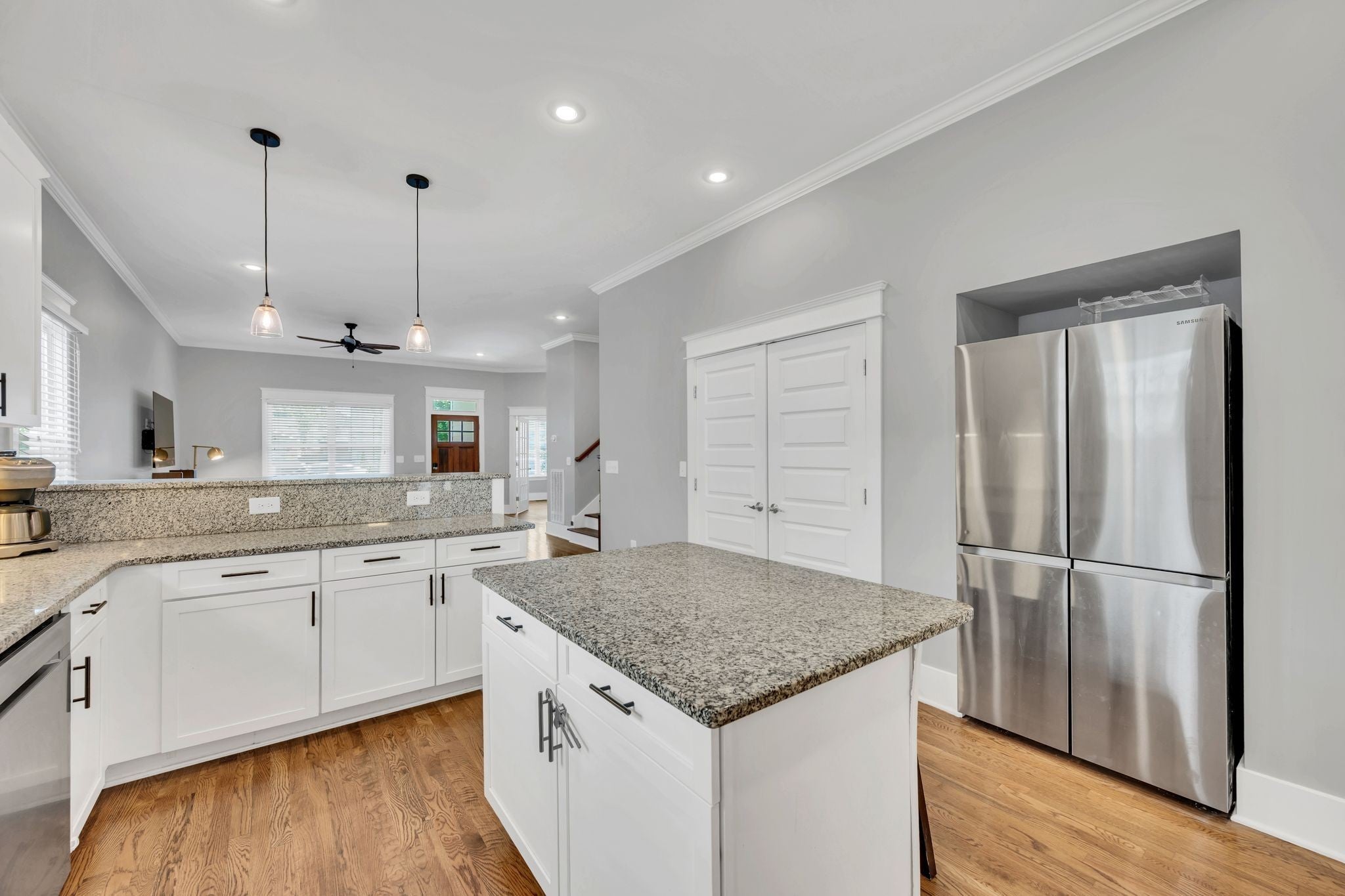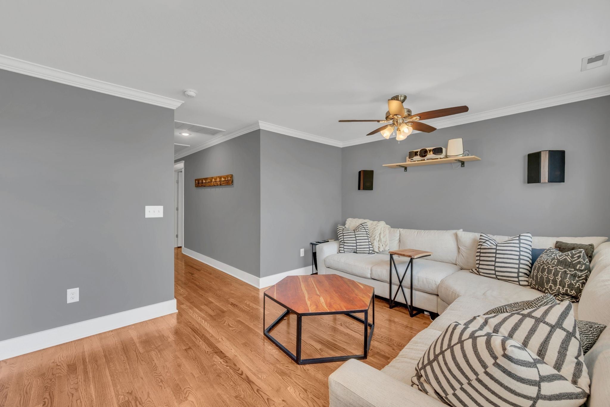 Nestled in the heart of The Nations, this beautiful home sits on an oversized lot with a meticulously maintained, fenced-in backyard featuring lush, green grass—perfect for entertaining, pets, or play. A custom enclosed screened-in porch provides a relaxing retreat, while the garage, enclosed on three sides, adds convenience and versatility. Step inside to a bright open floor plan, where the kitchen—complete with abundant cabinetry and an oversized pantry—flows seamlessly into both the dining and living areas. The primary suite on the main floor offers comfort and privacy, while a second bedroom/office on the first level provides the ideal space for working from home or hosting guests. Upstairs, you’ll find two generously sized bedrooms, another room being used as a bedroom that doesn't have a closet, a spacious rec/media room, and a charming playroom/reading nook—plenty of room for everyone to spread out. High quality projector and screen in the bonus room makes for a great and cozy movie night. With its thoughtful layout, abundant storage, and incredible outdoor spaces, this home is a rare find in one of Nashville’s most sought-after neighborhoods.Set up your tour today!