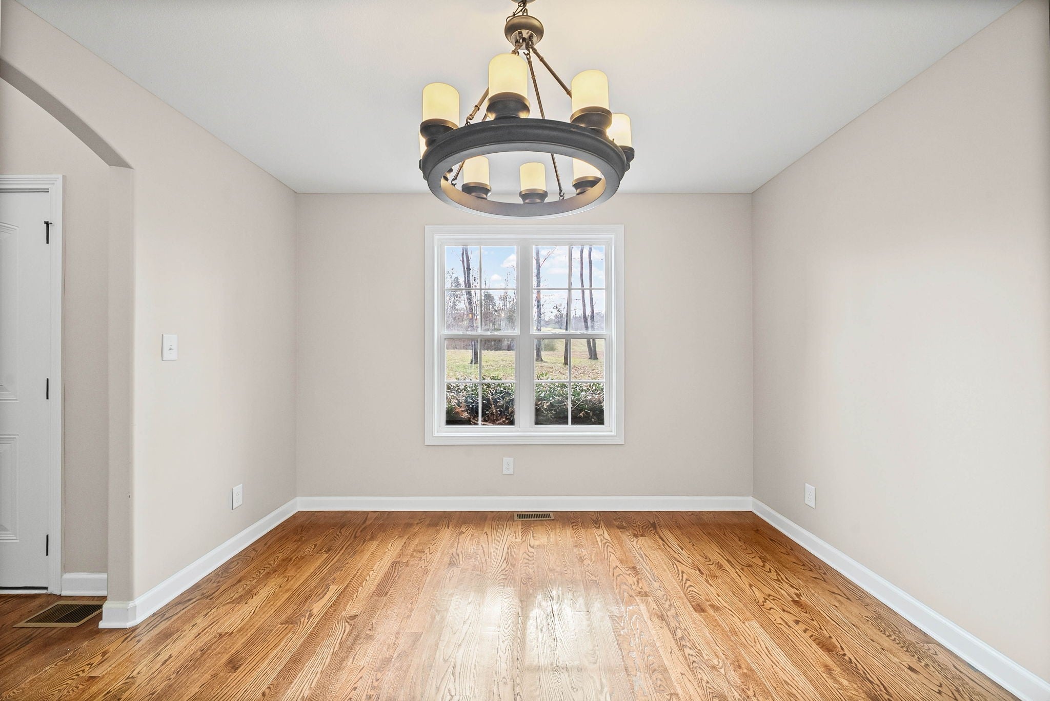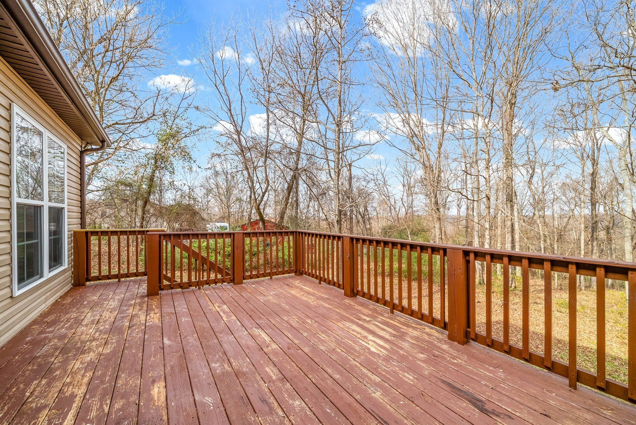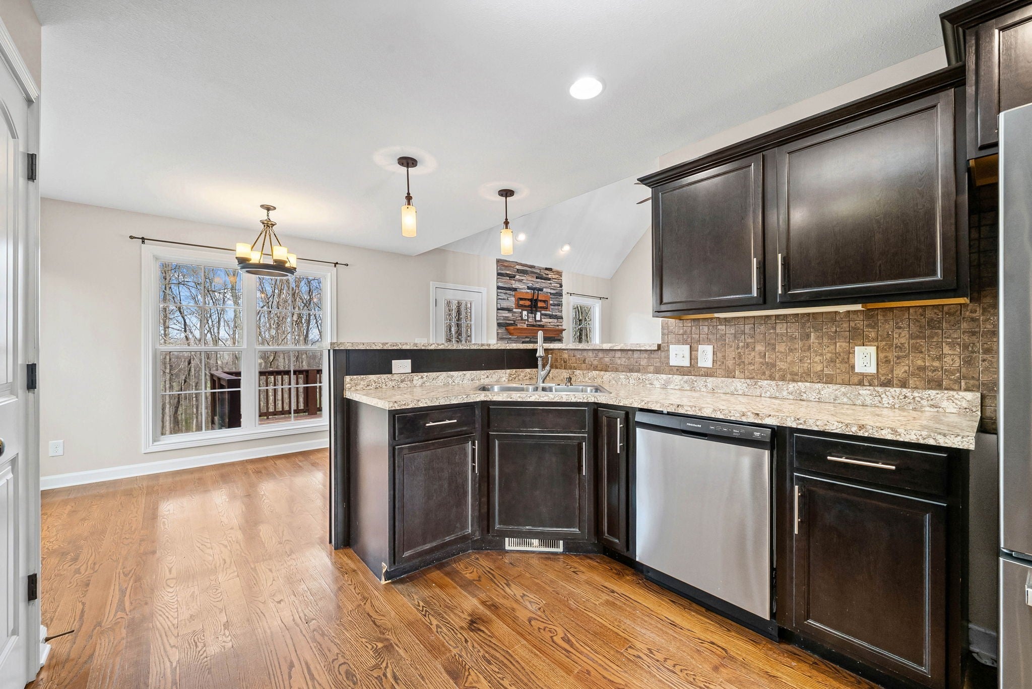 No city taxes! Located on a wooded two acre lot, this beautiful two-story home provides a perfect blend of rural tranquility and modern comforts! Beautiful hardwood floors throughout the main living areas, cozy living room with a stacked stone fireplace and large eat-in kitchen with granite countertops and stainless steel appliances! The spacious primary suite offers a full bath with a double vanity, a soaking tub, and a separate shower!. Upstairs, you'll find a versatile bonus room and two large bedrooms! Awesome outdoor space with a deck and the privacy of no backyard neighbors! The shed conveys with the home, offering extra storage space!