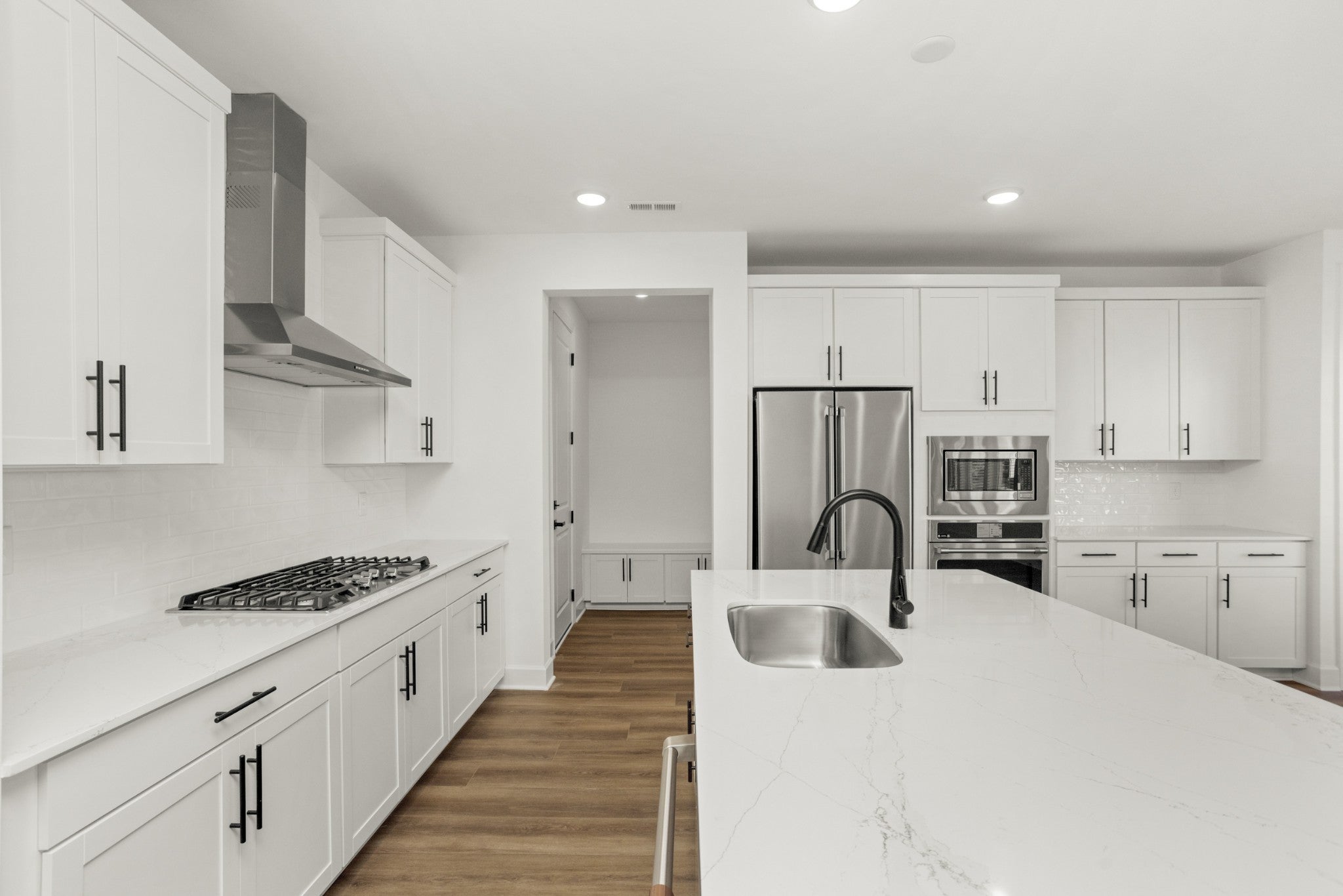 - Built-In Electric Oven, Cooktop, Dishwasher, Disposal, Microwave, Refrigerator, Stainless Steel Appliance(s)