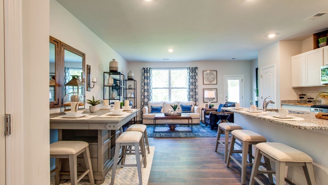 Spacious 3 bedroom, 2.5 bath townhome. Features a single-car garage. A large gourmet kitchen overlooks the dining and living area with upgraded white cabinets, Stainless Steel dishwasher/microwave/stove, AND refrigerator! Kitchen with double sink granite island. So much granite counter space! The primary bedroom has soaring ceilings and a walk-in closet PLUS a separate shoe closet it also has a private bath, with double vanity, and a walk-in closet. Washer / Dryer included. Gorgeous wood-look flooring through the first level! 25 minutes to Nashville / 20 minutes to Clarksville...Excellent location. Must SEE!