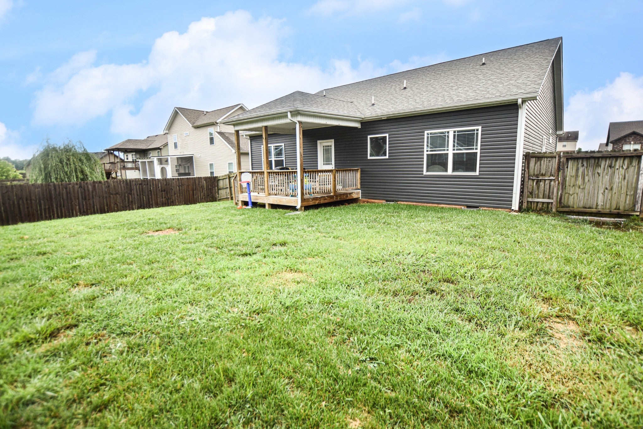 Like new three bedroom, two bath home conveniently located just minutes from i24, shopping, restaurants and more! Large living room with beautiful engineered hardwood & fireplace and spacious kitchen with stainless steel appliances & granite counters! Primary suite with full bath and walk in closet, two oversized guest rooms, covered deck and backyard with privacy fence! Pet rent applicable.