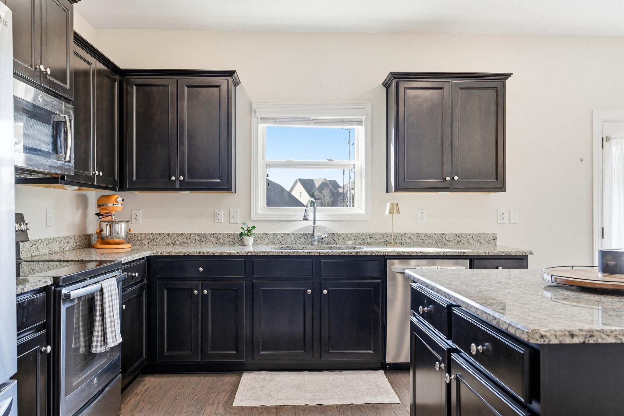 - Electric Oven, Cooktop, Microwave, Refrigerator, Stainless Steel Appliance(s)