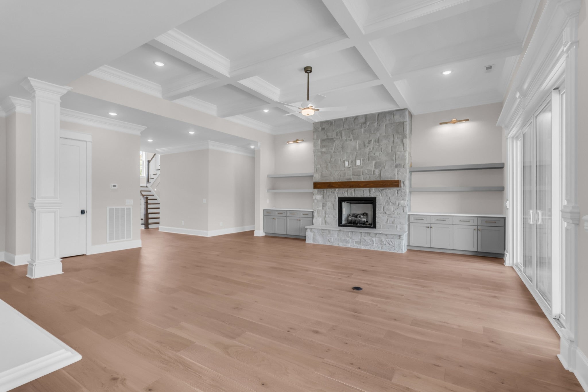 This beautiful 4-bedroom, 4-bathroom home with a 3-car garage offers an open-concept layout designed for both comfort and entertaining. The bright living area features large windows and flows seamlessly into the kitchen with built-in paneled appliances and a spacious scullery. The great room features a large stone fireplace that creates the perfect spot for memorable nights together. The main floor includes two bedrooms, including the primary suite with a walk-in closet, dual vanities, soaking tub, and separate shower. Upstairs offers three additional bedrooms and a versatile loft, ideal for a home office, playroom, or media space. Experience outdoor living on the covered patio complete with a fireplace and built-in heaters - an ideal space for game nights, cookouts, or just relaxing year-round. Located in sought after Rutherford County's Christiana Tennessee. Just far enough from town to feel peaceful and rooted in country charm, but close enough that you don't give up convenience. This home is the perfect blend of comfort, style, and functionality. A place to grow into and make memories for years to come. Garage is wired for an EV charging station.