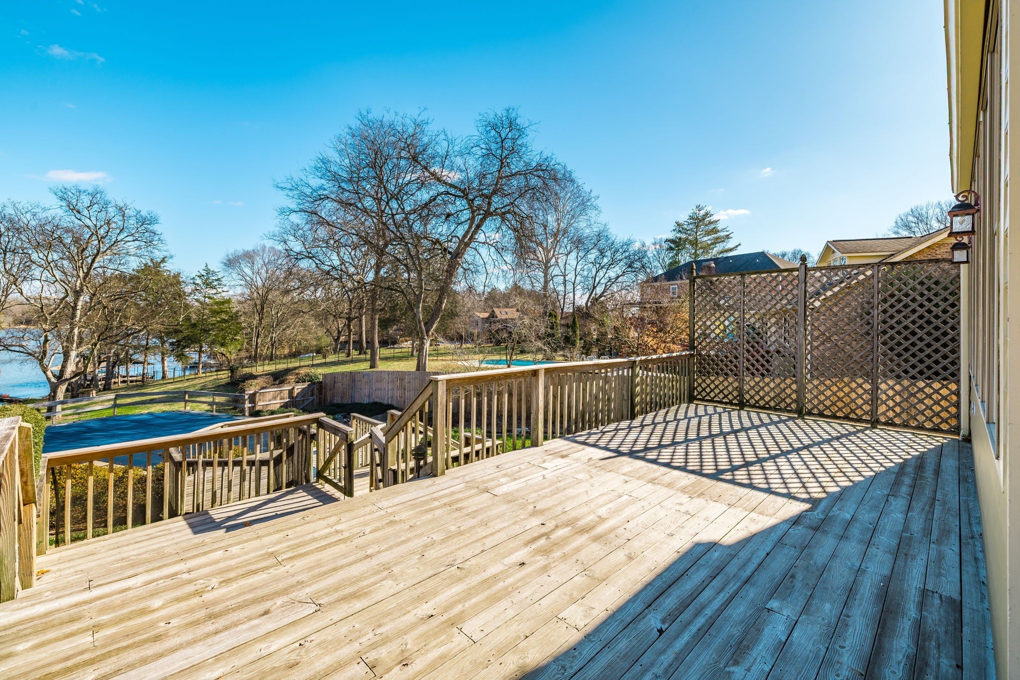 Live like every day is a vacation at this private, lakefront retreat brimming with lifestyle perks. A paver stone driveway sets the tone for timeless curb appeal, welcoming you to a spacious 2-story home with scenic backyard vistas of the lake and in-ground pool. The open-concept layout features a large family room with wood burning fireplace, and a formal living room & dining room area. The expansive kitchen with island seating, stainless appliances (all remain), granite counters, and a casual sitting area ideal for morning coffee and casual dining and are open to the huge additonal gathering room with a wall of windows across the main level that floods the interior with natural light and frames panoramic views. Upstairs, generously sized bedrooms offer oversized windows and deep closets. The bonus room is perfect for movies, game nights, or creative spaces.Step outside to an entertainer’s dream: wrap-around porches, an elevated deck, manicured landscaping, with lake draw irrigation and direct lake access perfect for fishing, kayaking, or watching the sunset over the water. The exterior entry workshop offers ideal space for tools, a work space area and more. Whether you're seeking luxury lakefront living, a second home, or a peaceful escape just minutes from everyday conveniences, this home checks every box. Discover your waterfront sanctuary—just in time to make memories by the lake.