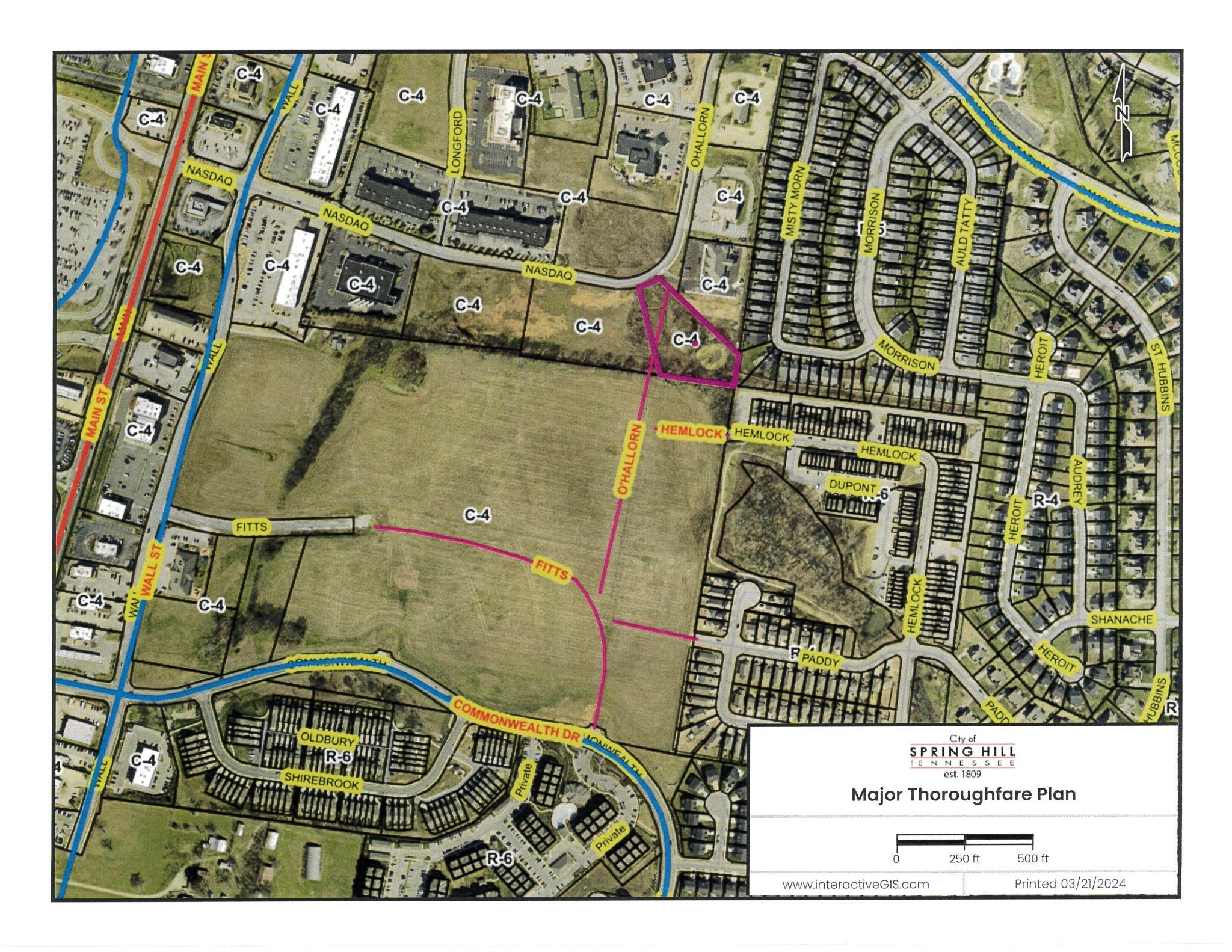 +/ 2 acre tract is situated in the middle of Spring Hill off of Hwy 31/Main Street and Campbell Station Parkway. Zoned C-4, nearby development include Goodwill Outlet, dental and medical offices, and day care/school. City of Spring Hill's Major Thoroughfare Plan includes an extension of O'Hallorn Dr on the east side of this lot to connect with a proposed extension of Fitts Street and Commonwealth Drive. A ROW dedication will be required of a prospective Buyer of this property per the Planning Department. O'Hallorn Dr. can also be accessed via Nasdaq St. and Wall St. See Permitted Use table in Media Section for many possible uses.