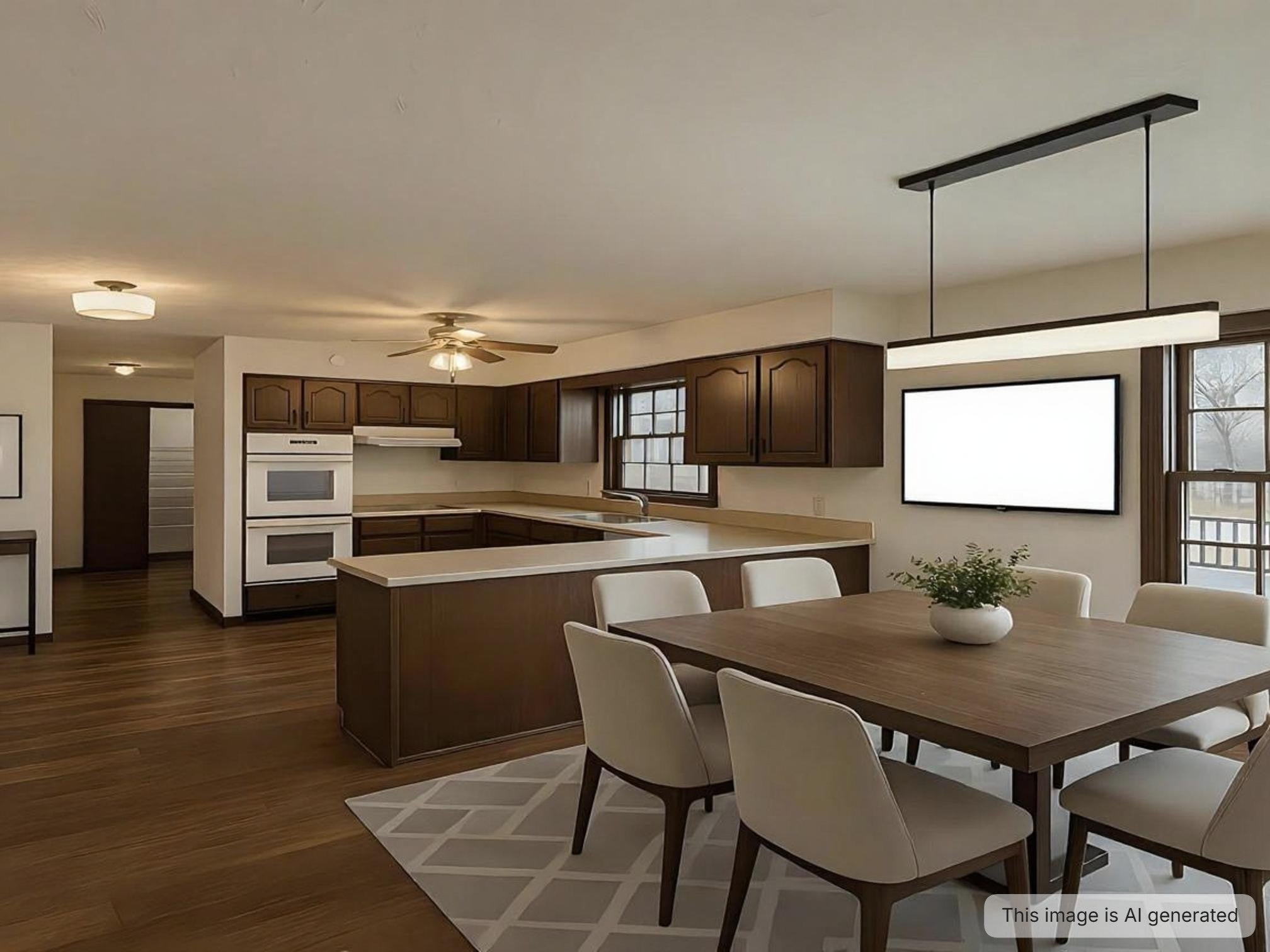 - Oven, Cooktop, Dishwasher, Microwave, Refrigerator