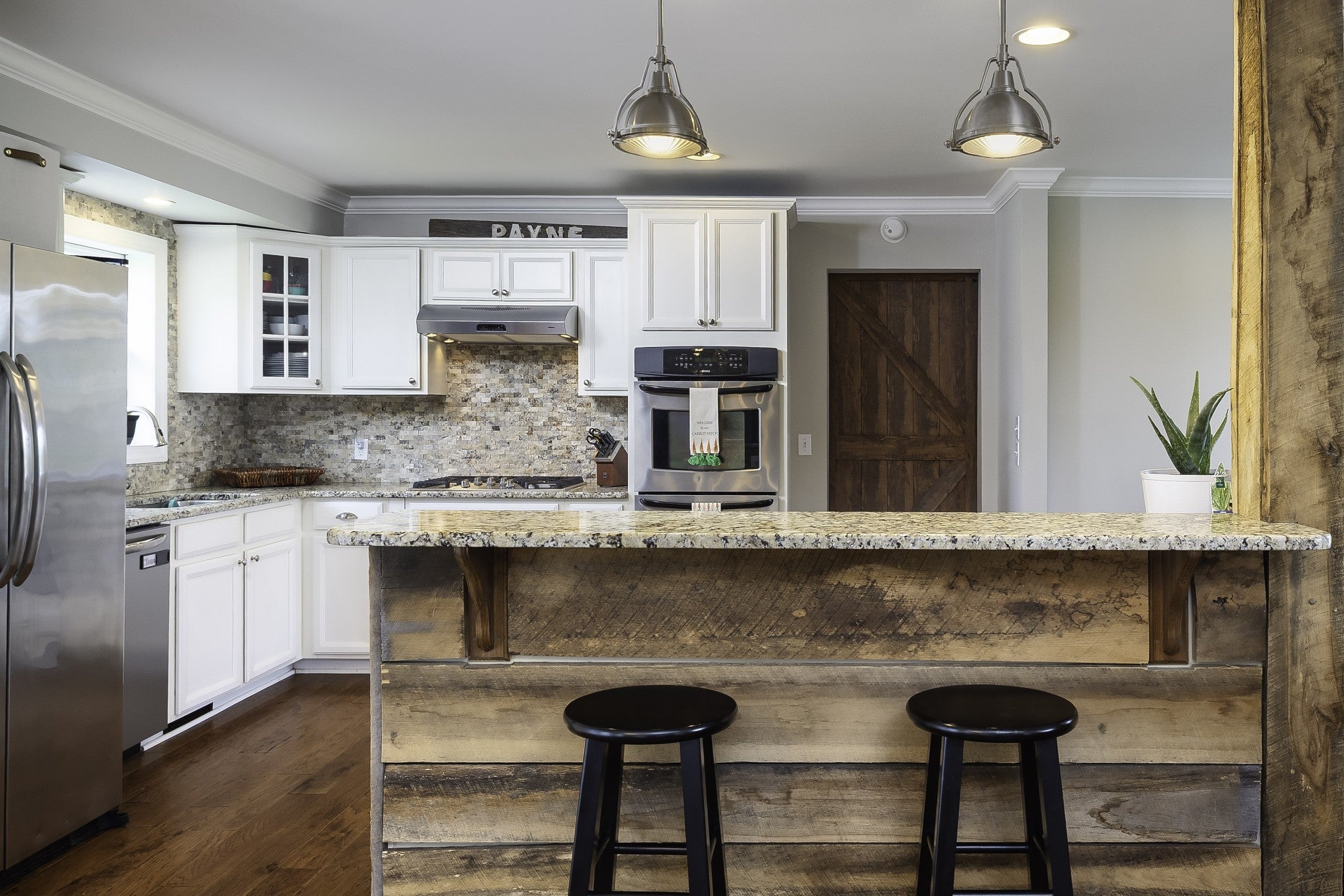 - Built-In Electric Oven, Double Oven, Built-In Gas Range, Dishwasher, Disposal, Microwave, Refrigerator, Stainless Steel Appliance(s)