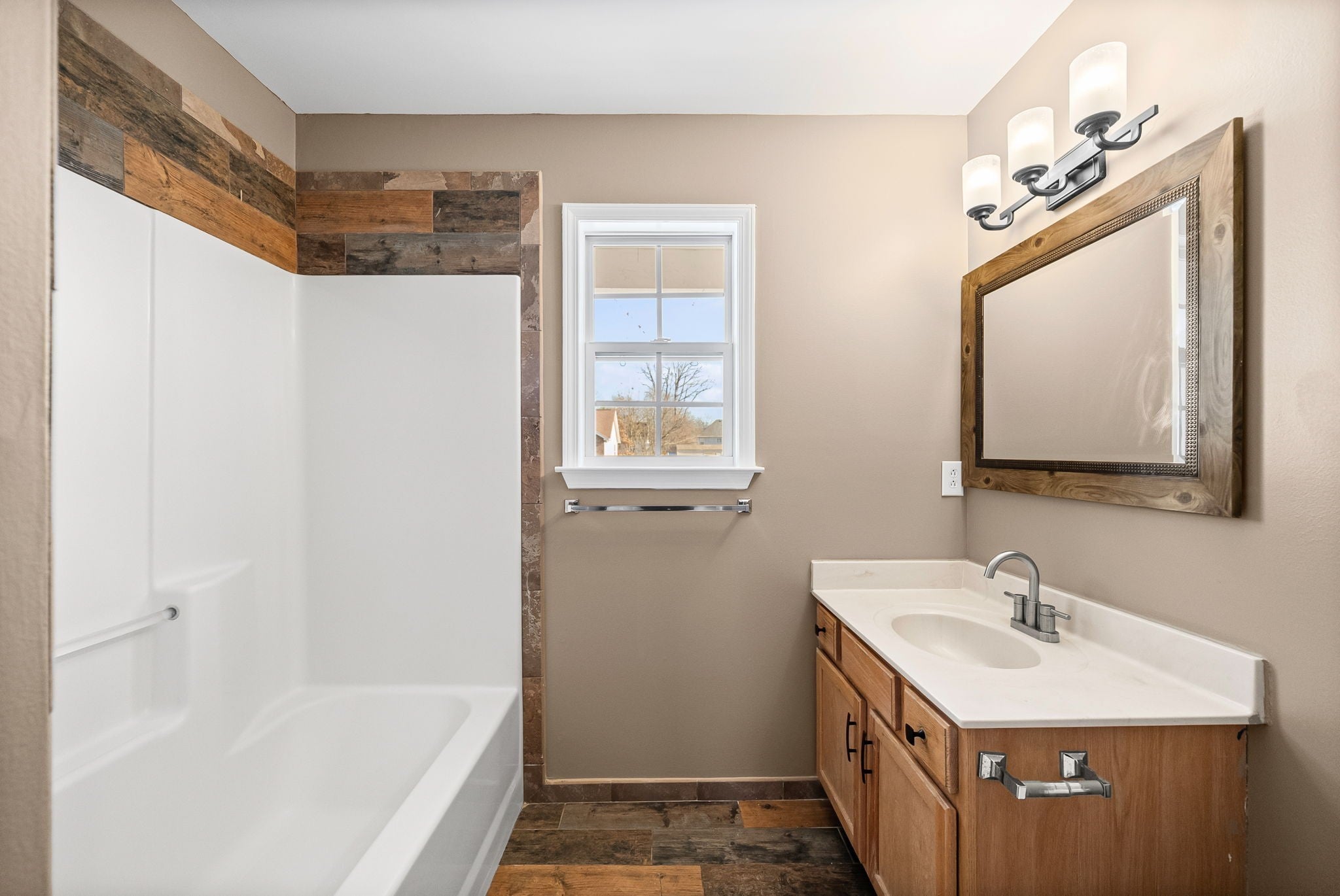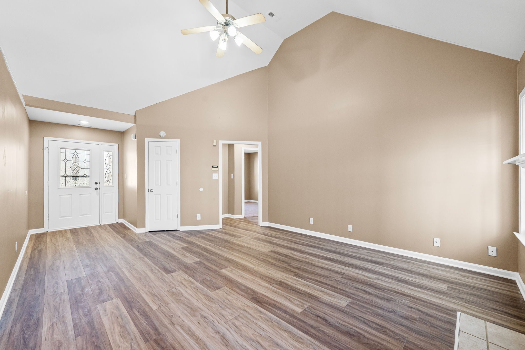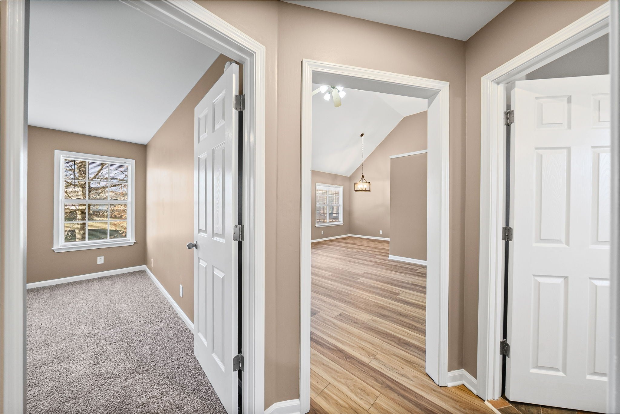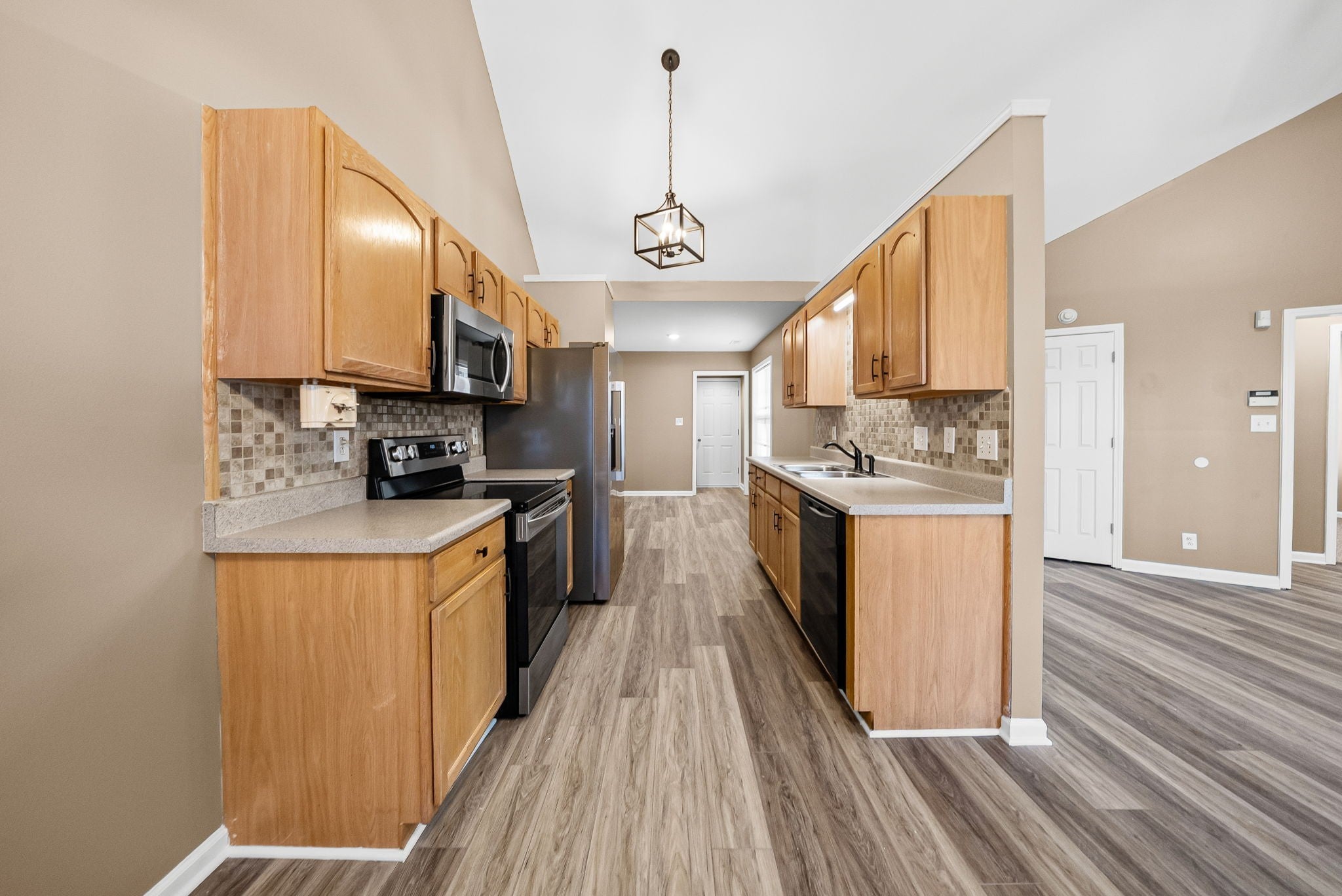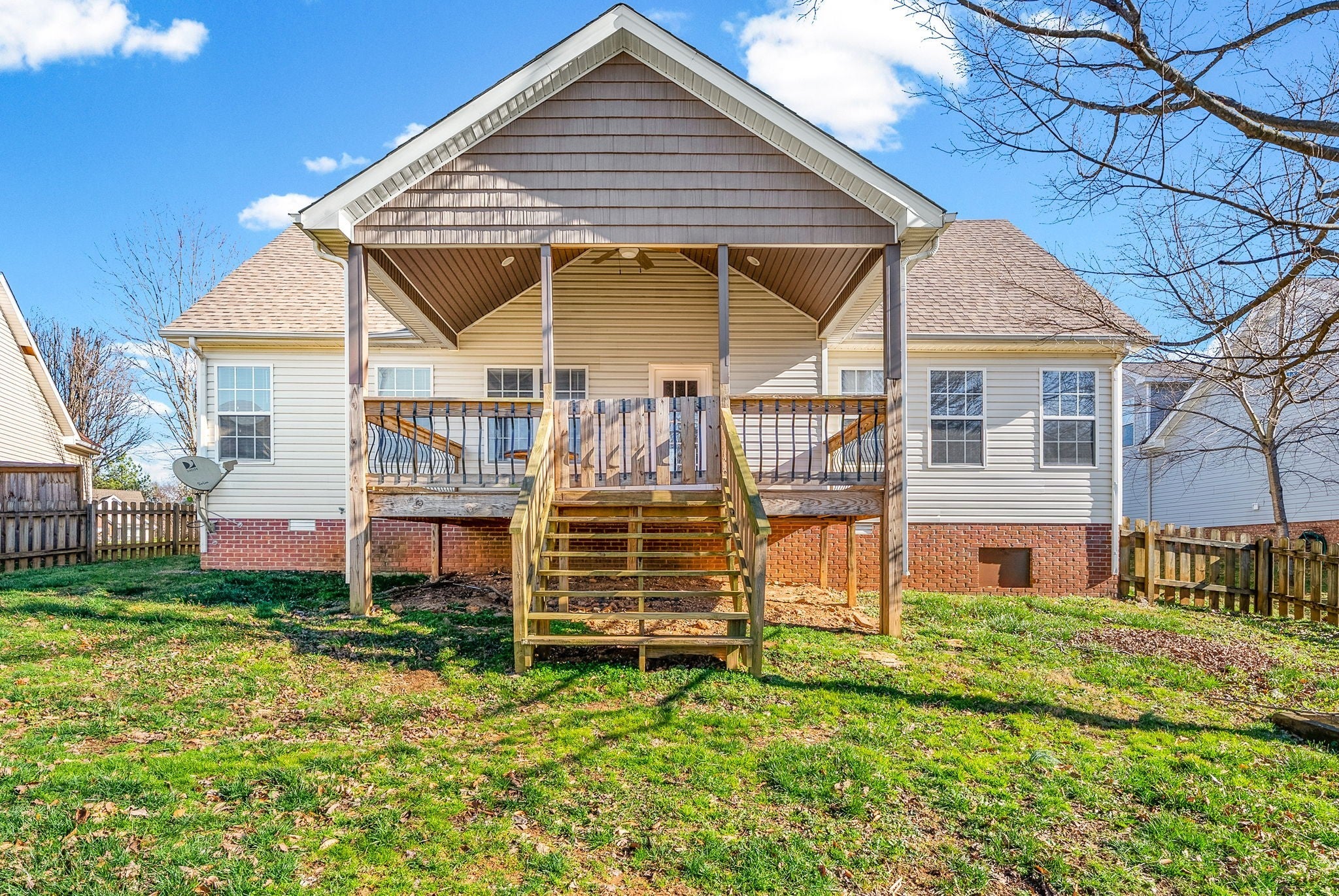 Remodeled and stunning! Not many of these floorplans in Clarksville like this! Extended driveway perfect for easy parking. Located towards a cul de sac so not much traffic. Spacious covered front porch to relax on those nice days. Entering the home, you'll notice the vaulted ceilings. Huge living room area. All brand new flooring throughout to include new LVP flooring and new carpet. Home is completely repainted. New light fixtures, ceiling vents, appliances, faucets, toilets, and much more! Kitchen has a huge eat in area that could be another dining room space. Kitchen is upgraded to include new appliances, lots of counter and cabinet space, backsplash, new knobs on cabinets, and a wide galley style! A separate dining area with the laundry area connected. By garage door is stairs that leads up to the bonus room with new flooring. Could serve as another bedroom or a rec area. Spacious primary bedroom with a beautiful primary bathroom. Owner has installed an elegant tiled stand up shower with a corner bench, double vanities, HUGE primary closet and linen closet. Two other bedrooms on the other side of the house with a full bathroom. Full bathroom has a shower/tub combo with beautiful tile. Very unique. Backyard is fenced and owner added a stunning covered back deck. It is absolutely gorgeous and very large! Spacious 2 car side load garage with a door that leads outside. This home has a lot to offer and get it while it is available!