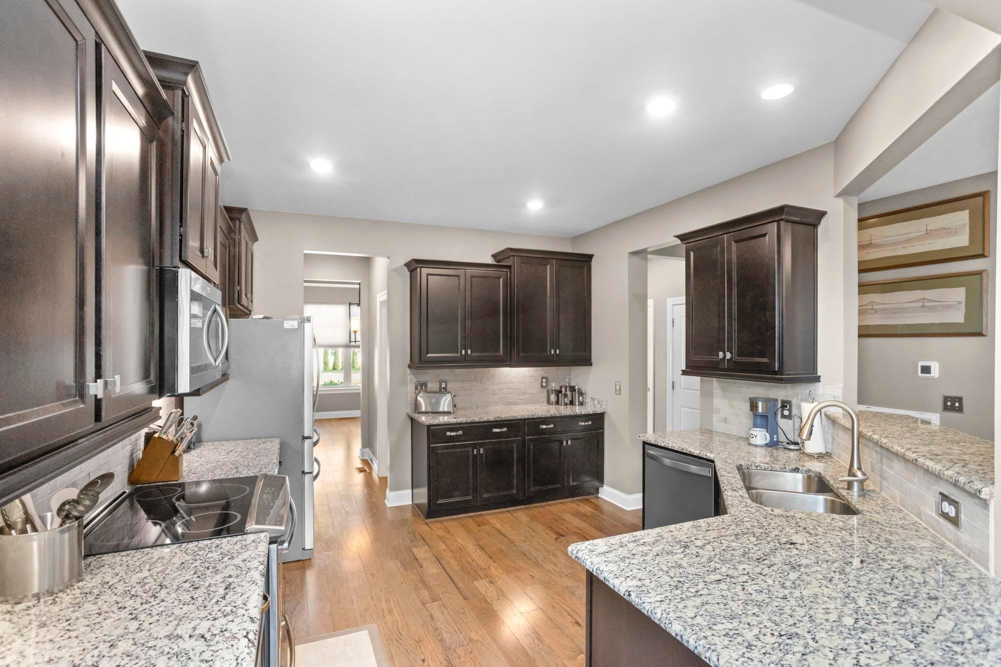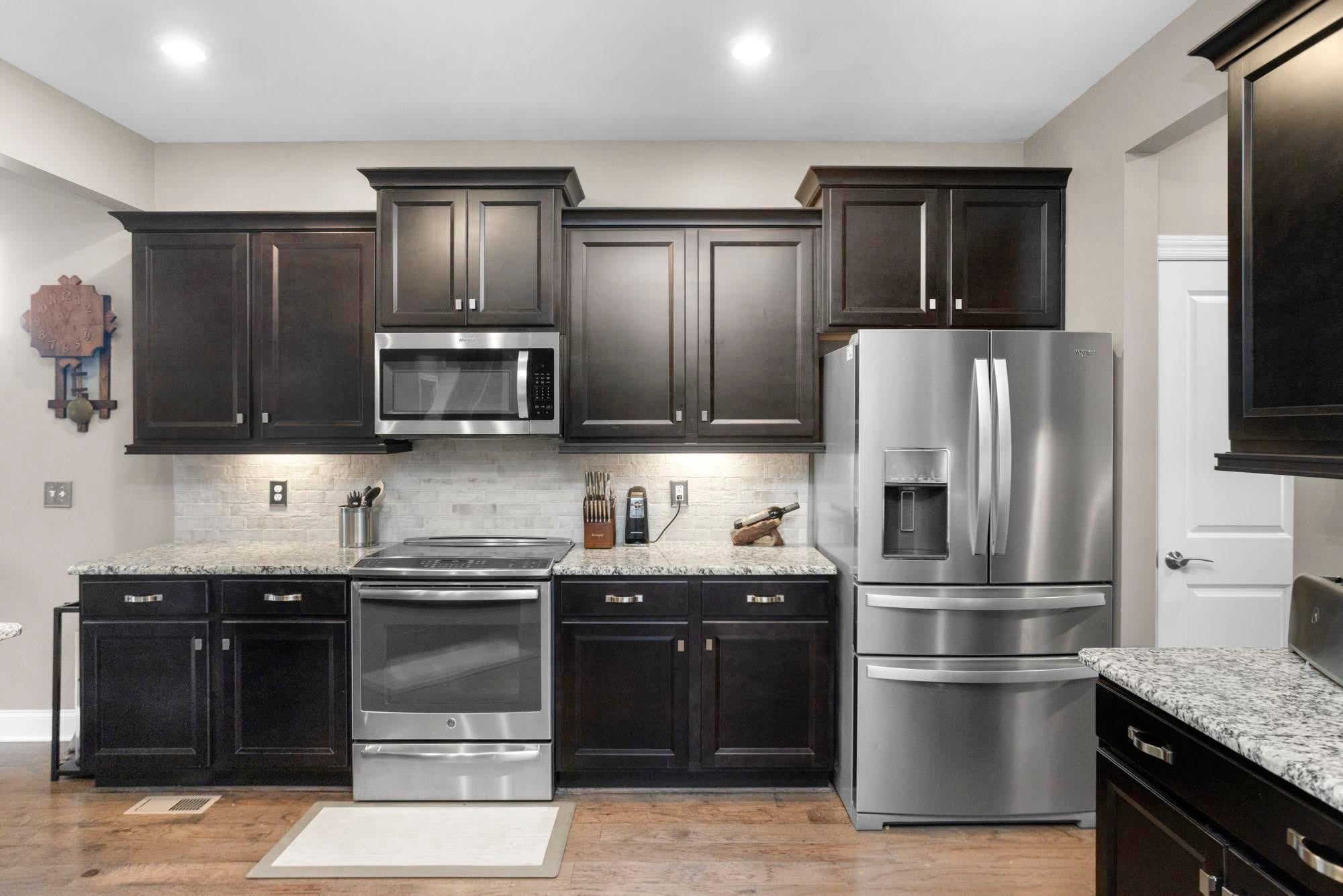 - Electric Oven, Electric Range, Dishwasher, Disposal, Microwave, Refrigerator, Stainless Steel Appliance(s)