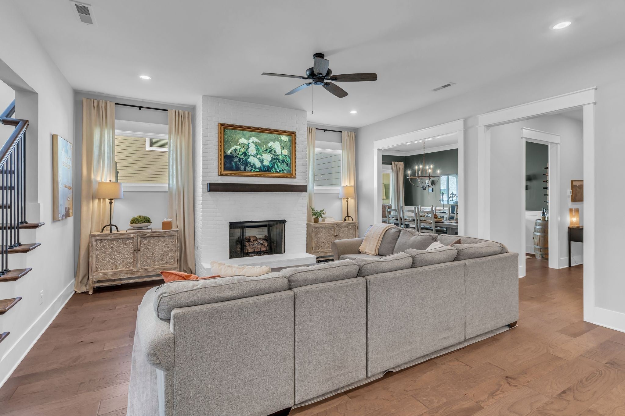 Grandview Custom home in the highly sought-after Durham Farms—just steps from the neighborhood pool! This beautiful home blends luxury, functionality & thoughtful upgrades throughout. Enjoy the charming wrap-around front porch with wood ceiling detail, hardwood floors on the main level, and a newly renovated powder room. The open-concept living space features a chef’s kitchen w/ large island, custom coffee/wine bar inside the pantry, seamlessly connecting to the living room w/ cozy fireplace and a spacious formal dining room. Convenience is key with both a guest suite and the primary suite located on the main level. The primary includes a generous walk-in closet w/ built in cabinetry and spa-like bath with direct access to the laundry room. A covered side porch overlooks the fully fenced yard, offering a peaceful spot to relax. Upstairs you’ll find 2 large bedrooms, an additional bonus room, and walk-in attic storage. The 3-car garage provides room for vehicles, storage, or hobby space. All located in the amenity-rich Durham Farms community—featuring clubhouse, fitness center, pool, playgrounds, parks, and neighborhood events. Don’t miss this incredible home! 1% lender credit with use of preferred lender.