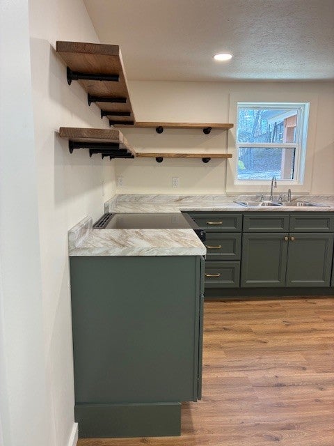 Cozy lake cabin in the Buchanan Resort/ Pine point area. Within walking distance of the beautiful Kentucky Lake and multiple boat ramps. The perfect Lake Getaway or short term rental property. This home has been completely renovated with a new roof, siding, windows, floors, doors and much more! Sage green colored kitchen cabinets with custom shelving and stainless steel appliances. The home is heated and cooled by a new Bosch mini split unit with an air handler in the living area and the bedroom. The outside features a 7.5x11 screened in porch with electricity and is wired with a 50 amp disconnect breaker for a hot tub. Also, outside there is a beautiful exposed gabled truss with stained tongue and groove wood ceilings. All new plumbing and electrical. 30x60 gravel driveway for ample parking. There is also an 110V outdoor receptacle installed along driveway to charge batteries on boat or camper. Drainage catch basins have been installed in front of home.