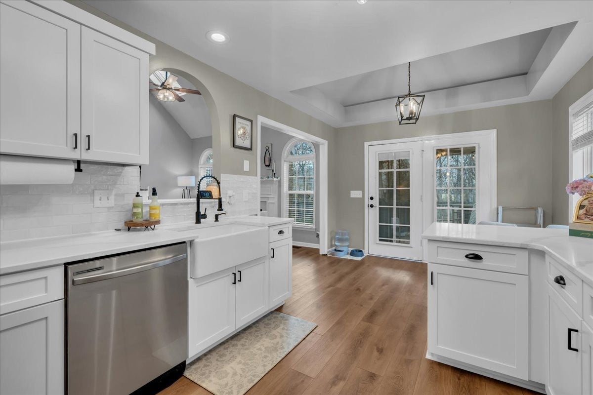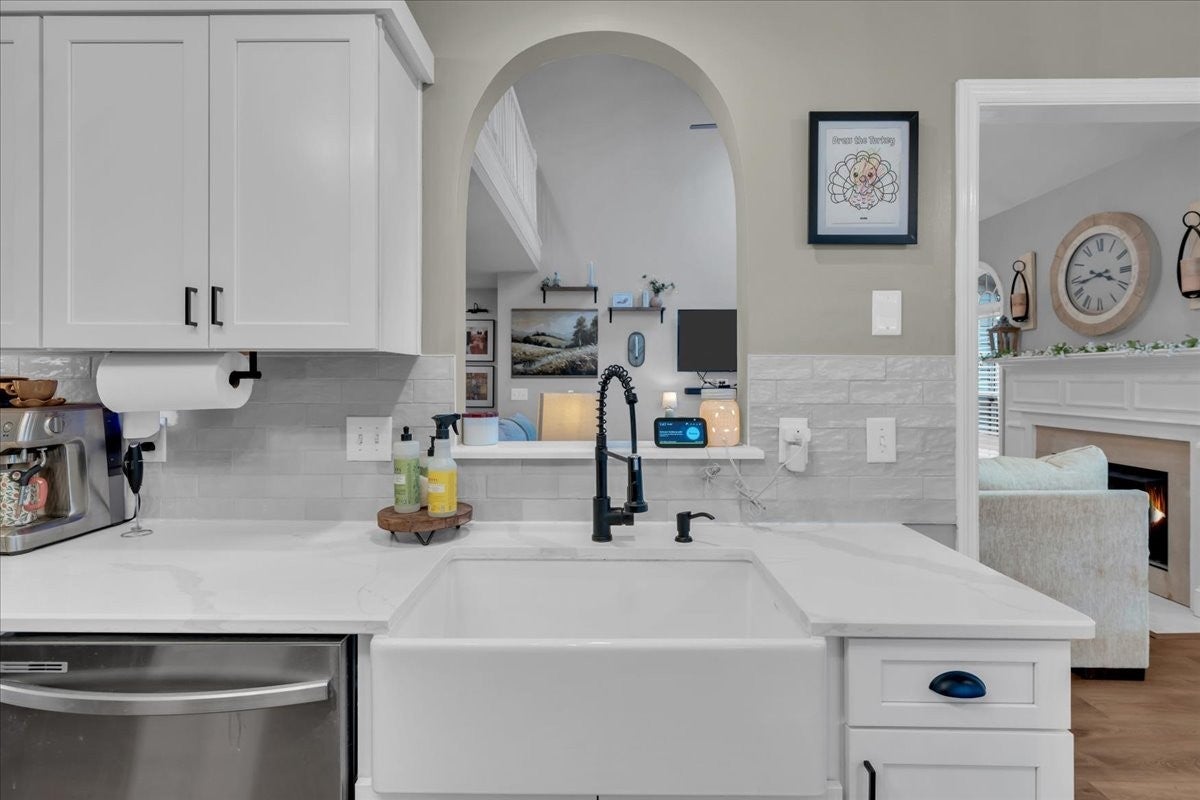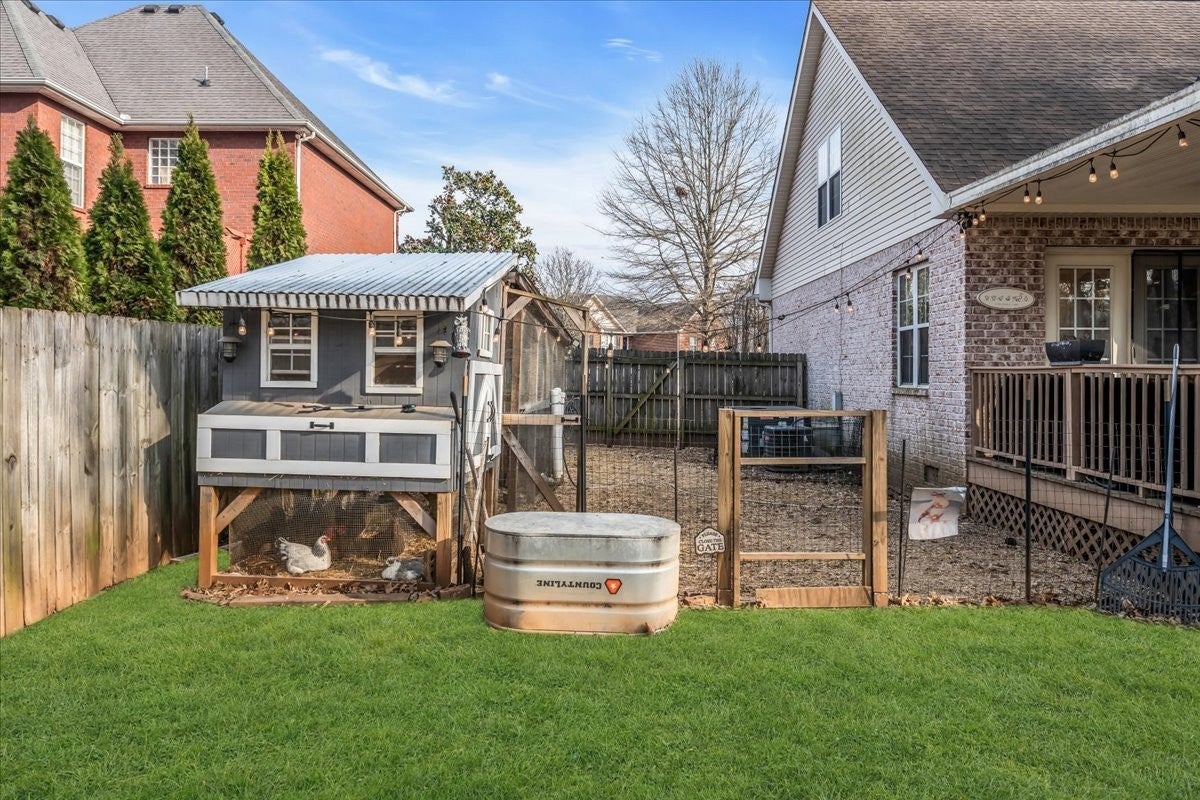 Welcome to your dream home! This stunning 3-bedroom, 2.5-bath brick residence boasts over 2,400 sq ft and backs up to scenic Barfield Park, offering easy access to outdoor adventures. Step inside to find a newly remodeled kitchen featuring quartz countertops, custom cabinets, stainless steel appliances, and a peninsula island with bar seating, perfect for entertaining. The formal dining room leads to a spacious Great Room with luxurious LVP flooring, high ceilings, and a cozy fireplace. Retreat to the large primary bedroom with a remodeled ensuite bath, complete with a new vanity and fresh finishes. Two guest bedrooms share a convenient full bathroom. Enjoy a huge bonus room with plush carpet and a separate office or hobby area for all your needs. Relax on the covered back deck overlooking a fenced yard with a chicken coop and duck house. The garage is equipped with a built-in storm shelter, designed for your peace of mind during severe weather. This family-friendly home is ideal for children and pets, making it a perfect oasis! Convenient to I-24! Easy commute to Nashville!