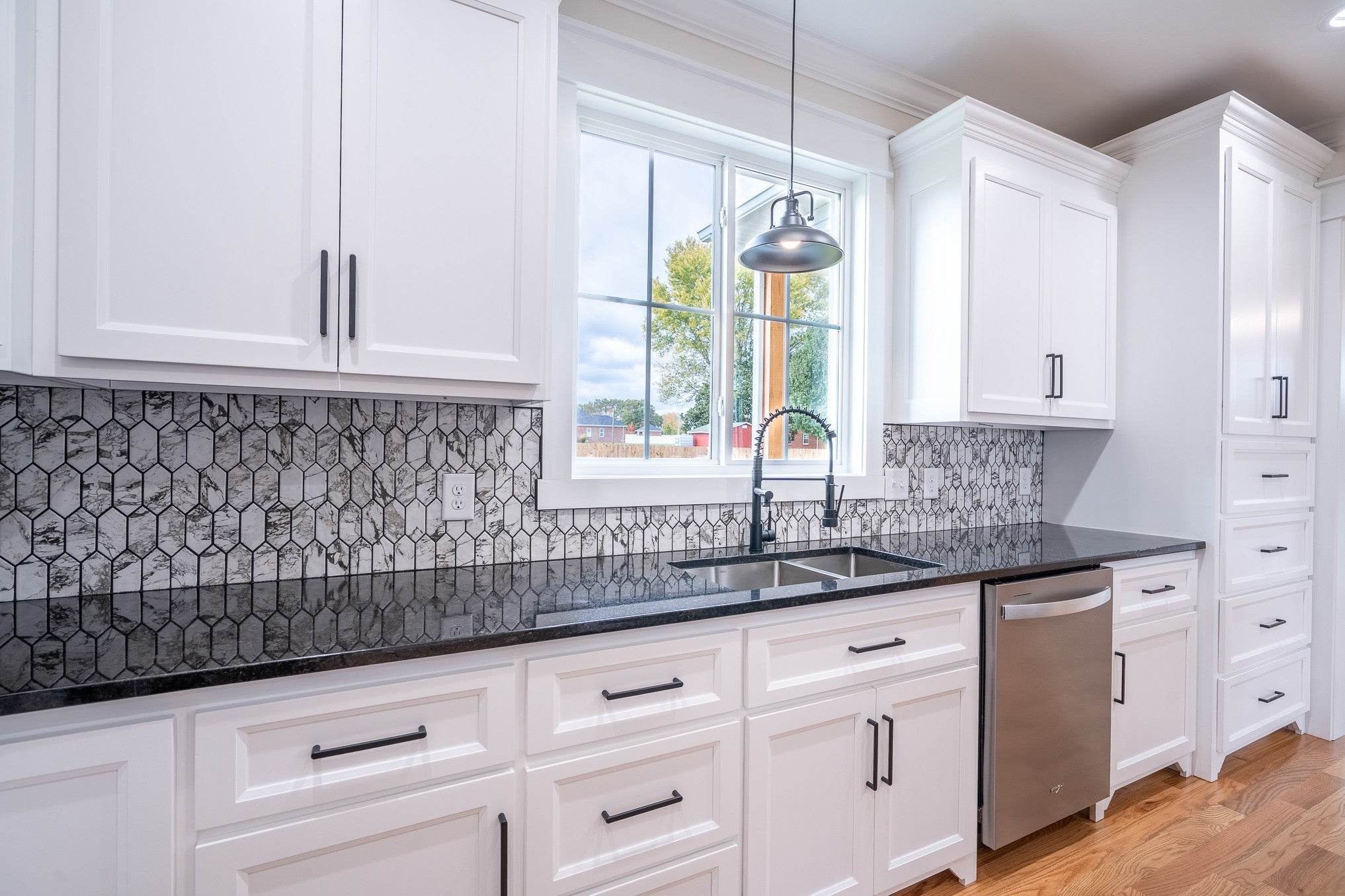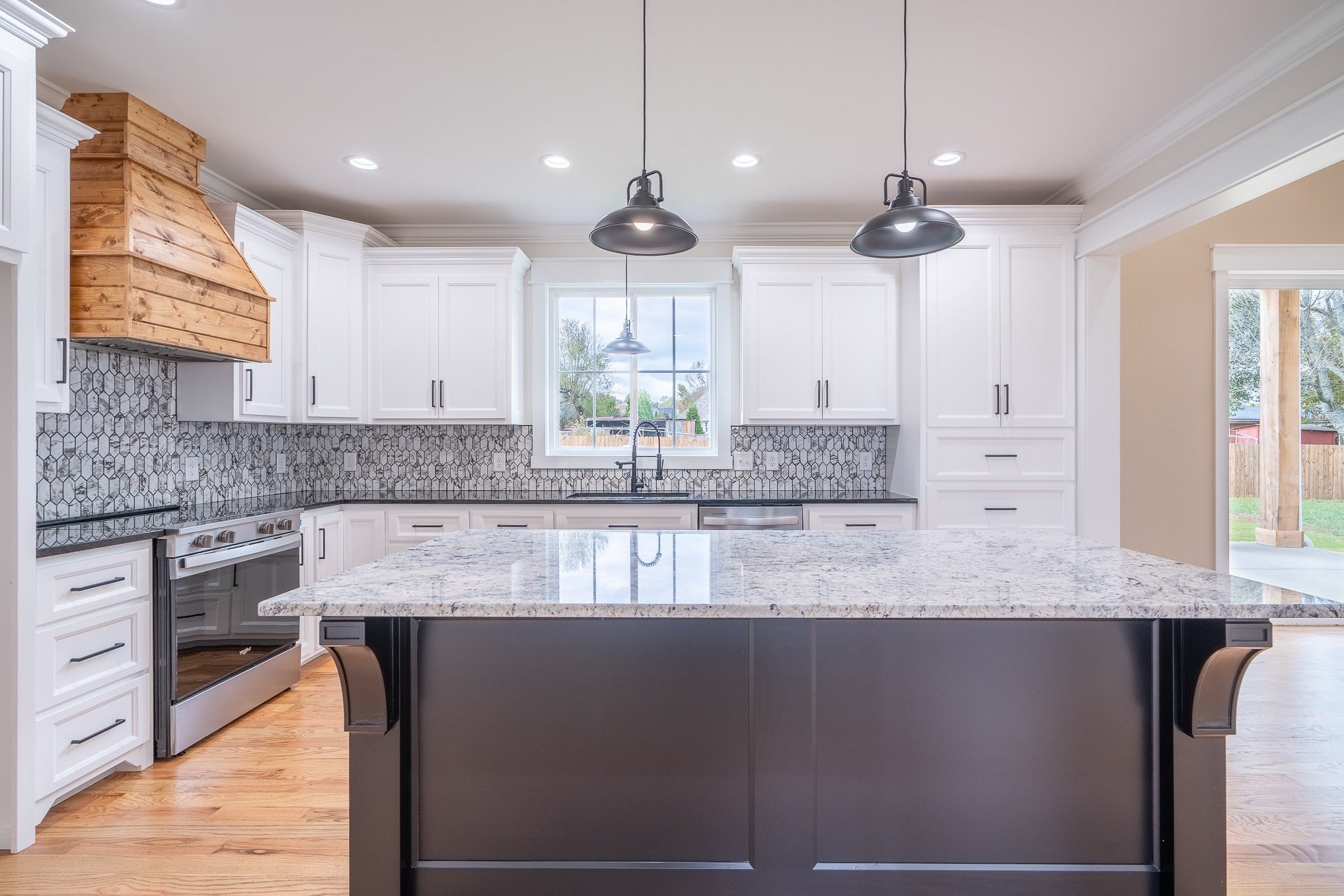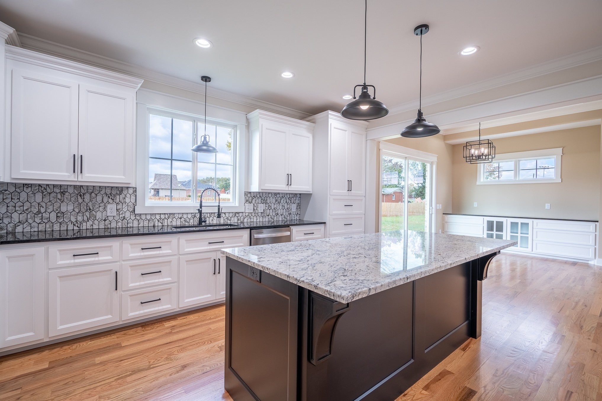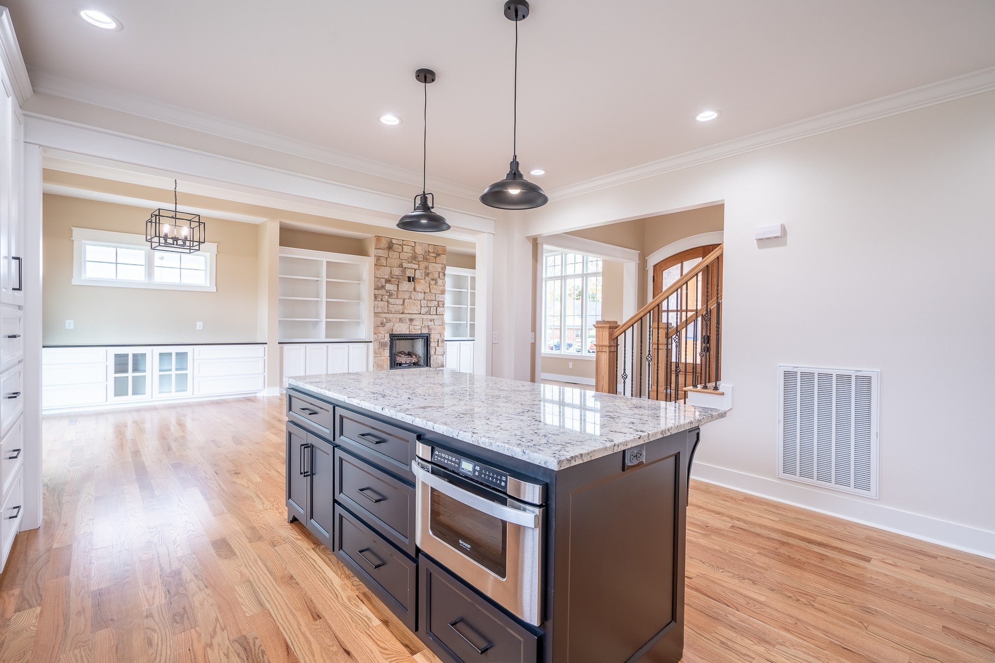 Welcome to this beautifully crafted 4-bedroom, 3.5-bath brick home, where timeless design meets contemporary luxury. Step inside to find gleaming hardwood floors throughout and a graceful staircase that sets the tone for the home’s elegant character. The open-concept living area features large windows that flood the space with natural light, showcasing built-in shelving and a cozy fireplace that invites relaxation. The sleek, modern kitchen is a chef’s dream with ample cabinet space, stainless steel appliances, and a large island complete with a built-in microwave—perfect for casual dining or entertaining. The primary suite offers a private retreat featuring a spa-like bath with a walk-in shower and bench seating. Each bedroom includes generous closet space, and the home provides abundant storage throughout. Thoughtful touches like window bench seating add charm and functionality. You’ll also love the spacious laundry room with a sink, designed for both convenience and style. This home combines modern sophistication with everyday comfort—an ideal choice for those who value craftsmanship, space, and natural light. Make an appointment with our office to see your new dream home today!!