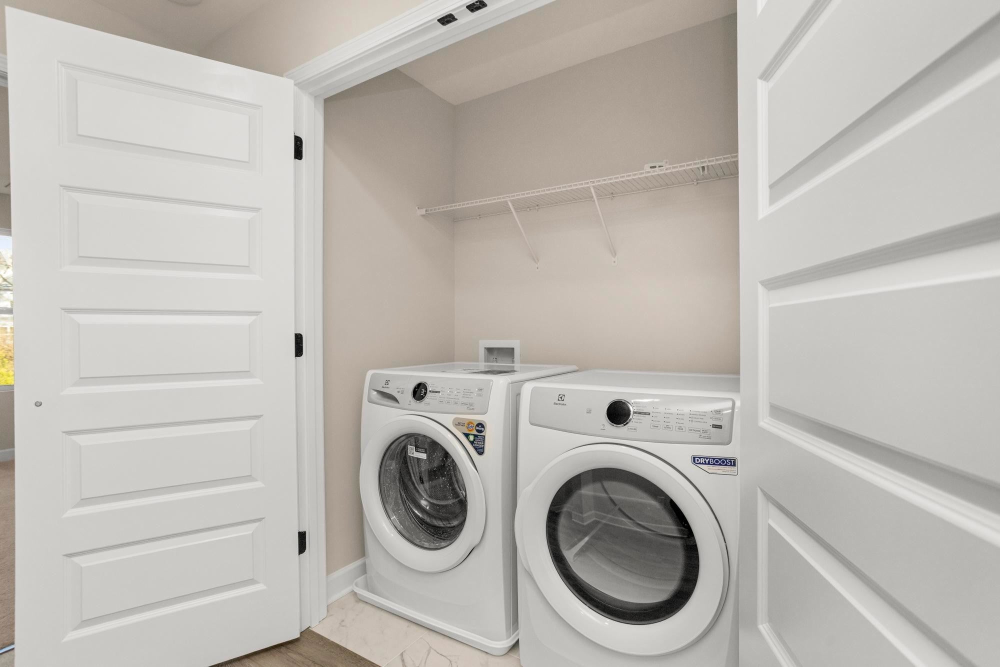 - Electric Oven, Electric Range, Dishwasher, Disposal, Dryer, Microwave, Refrigerator, Stainless Steel Appliance(s), Washer