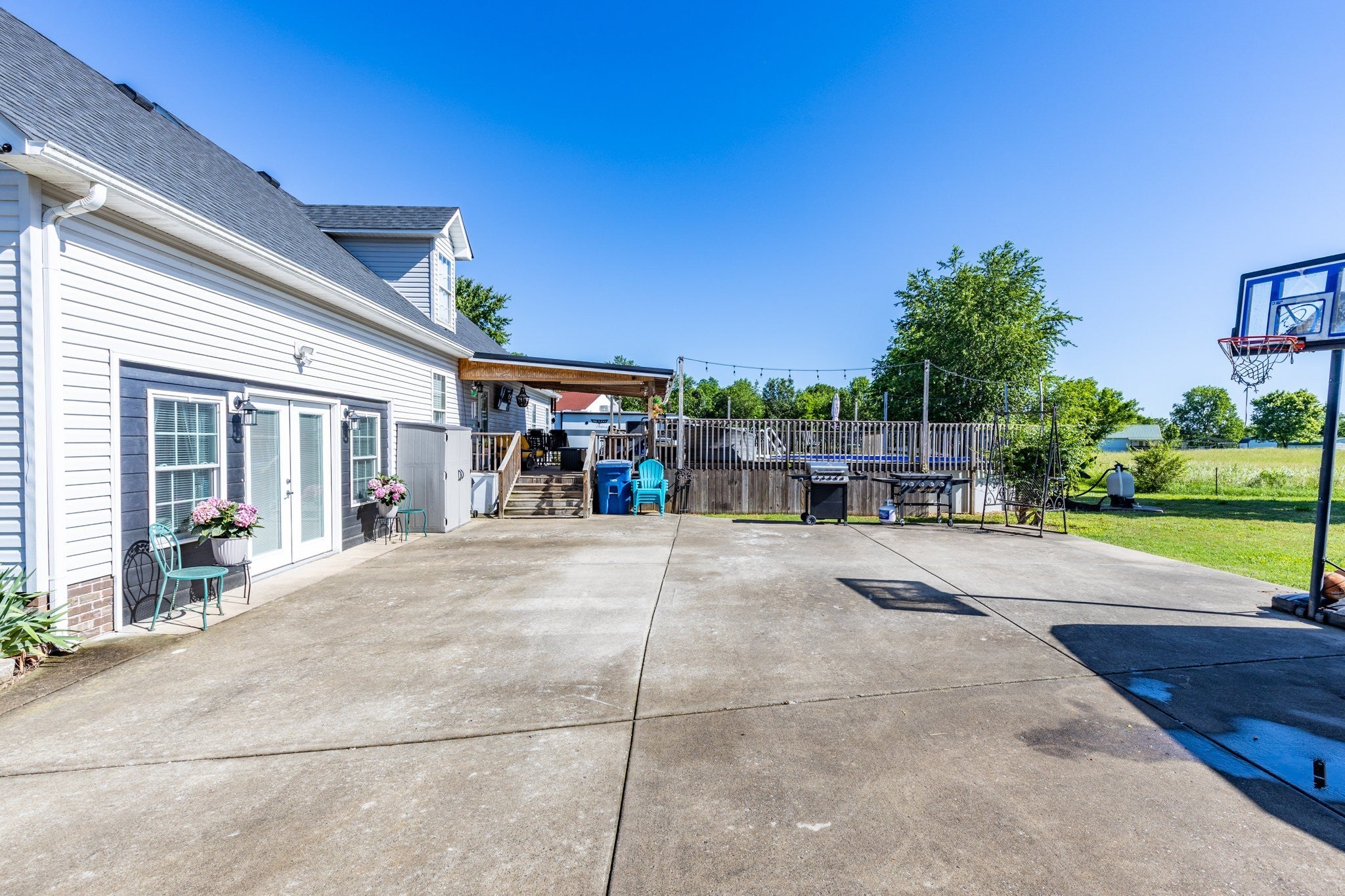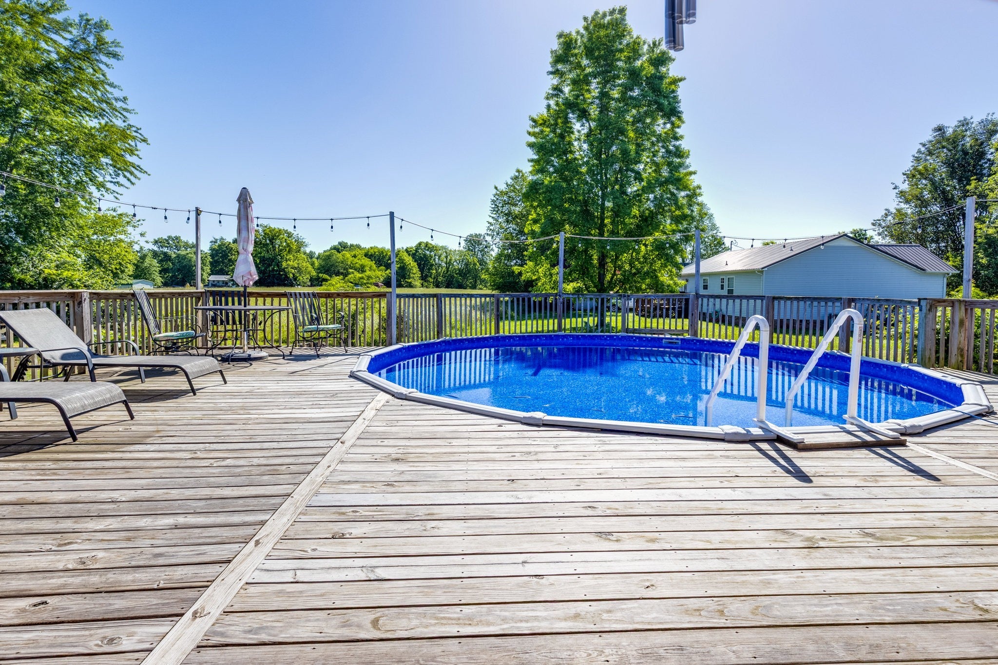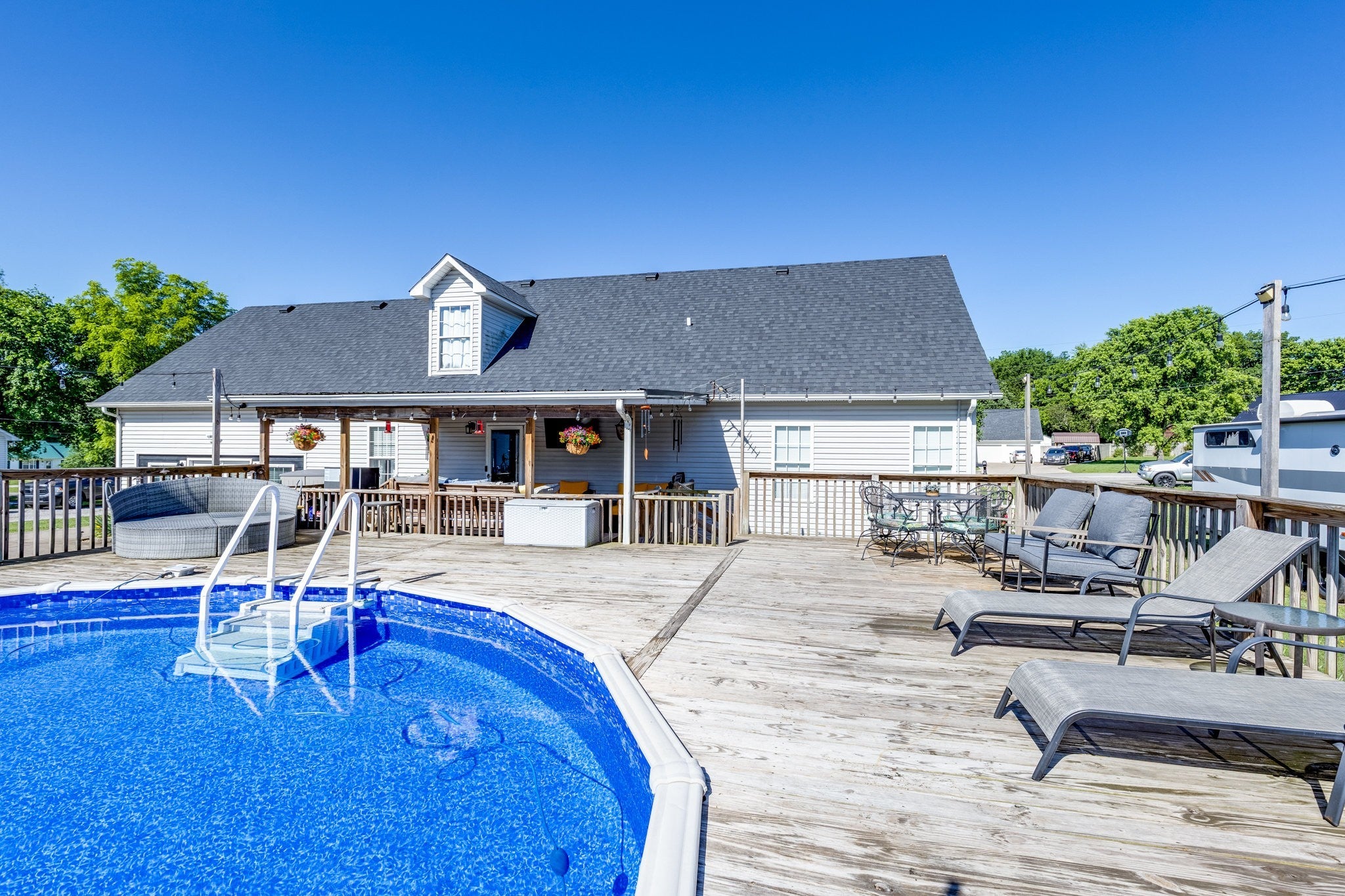 Spacious 4-bedroom, 3-bath country home situated on an approximately half-acre, level lot at the end of a quiet cul-de-sac. This well-designed home features a large living room with a cozy fireplace, perfect for gatherings and everyday comfort. The kitchen offers generous counter and cabinet space along with a sunny breakfast nook, while the oversized dining room provides plenty of room for entertaining. Outdoor living shines with a 24' round pool and expansive deck, seamlessly adjoining an additional covered deck—ideal for relaxing or hosting guests. A detached garage offers ample storage or workspace, complemented by a covered shed for added convenience. The home includes many recent updates, adding peace of mind and modern appeal. Enjoy peaceful country living with the added benefit of quick access to a major highway, making commuting easy and efficient. This property combines space, functionality, and location—ready to welcome you home. Priced below recent appraisal for instant equity!