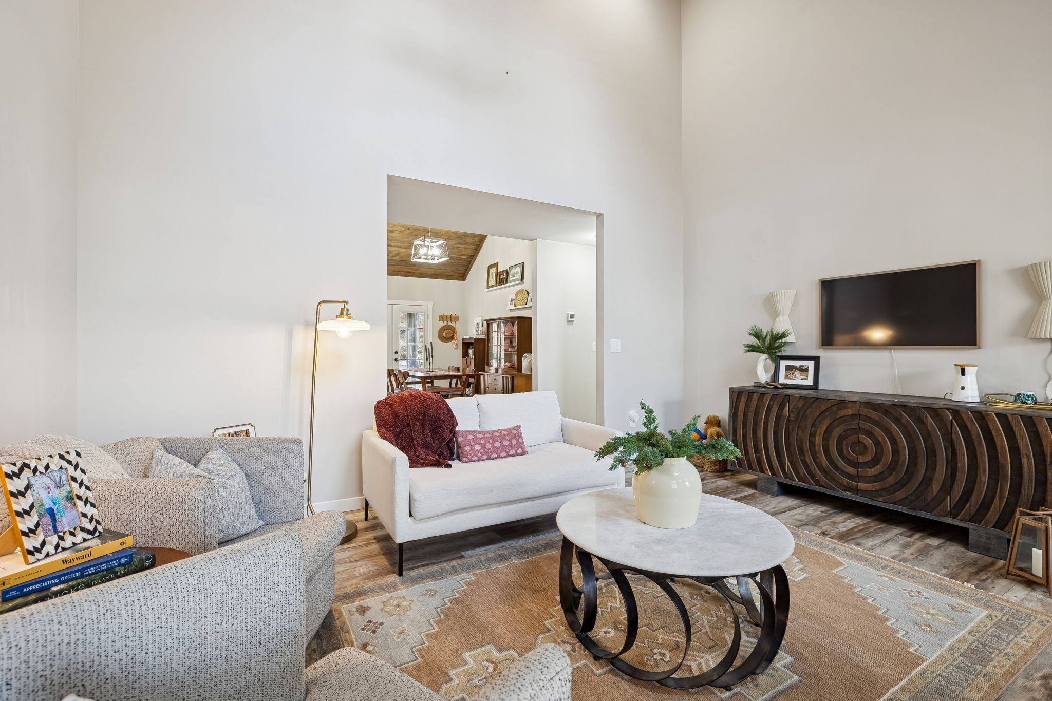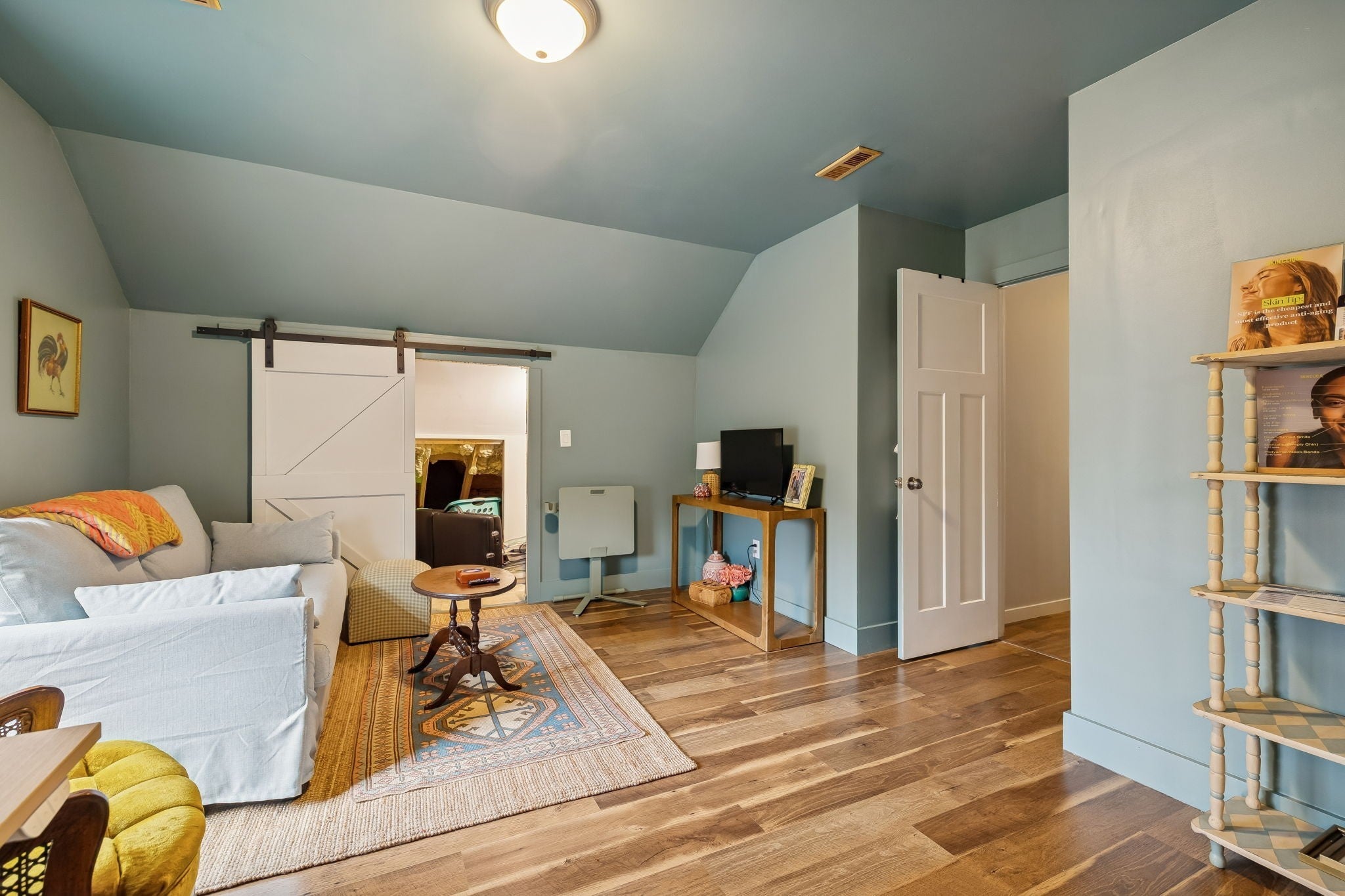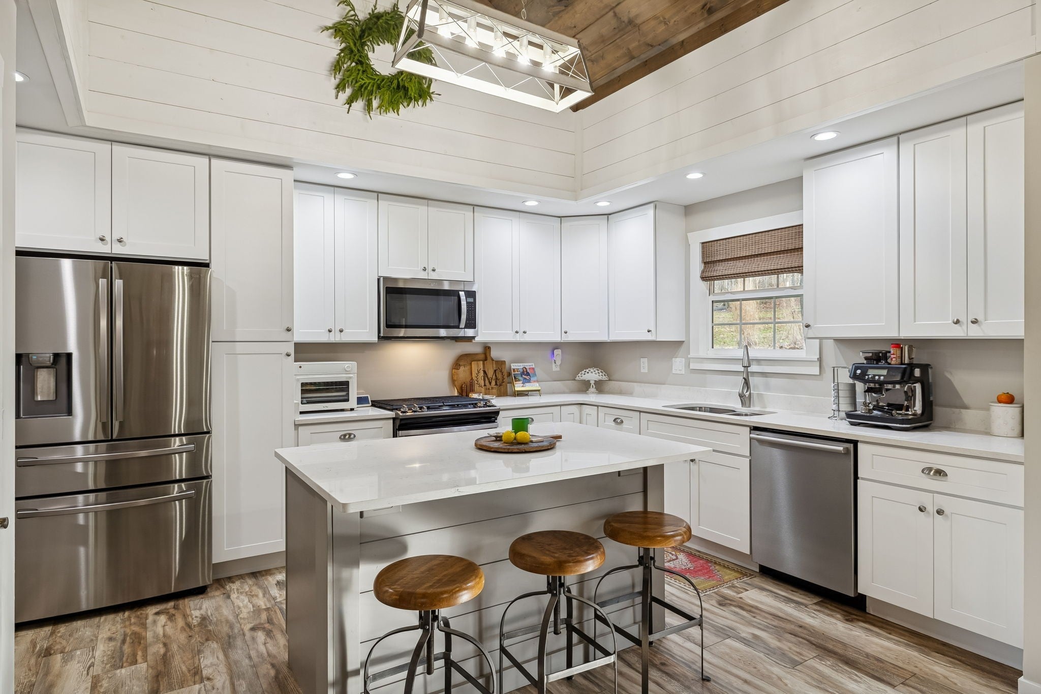 Built in 2020, this beautifully maintained home offers just over 2,900 square feet of well designed living space with 5 bedrooms and 3.5 bathrooms. Interior features include vaulted ceilings, LVT flooring, ceramic tile, and an open concept layout ideal for everyday living and entertaining. The kitchen features a large center island, stainless steel appliances, and abundant cabinetry and storage. Three bedrooms are located on the main level, including the primary suite and laundry room. A spacious flex room just off the main level provides excellent options for a bonus room, den, or additional bedroom. The upper level includes a full bathroom, living area, bedroom, and extensive storage, making it ideal for guests or an in law suite. Outdoor living is highlighted by a covered and screened back porch with cedar ceiling and decking overlooking a private wooded view. Additional upgrades include professional landscaping, a moisture controlled crawlspace, tankless water heater, mechanical room, and ample storage throughout. This home offers comfort, functionality, and quality construction in a desirable setting.