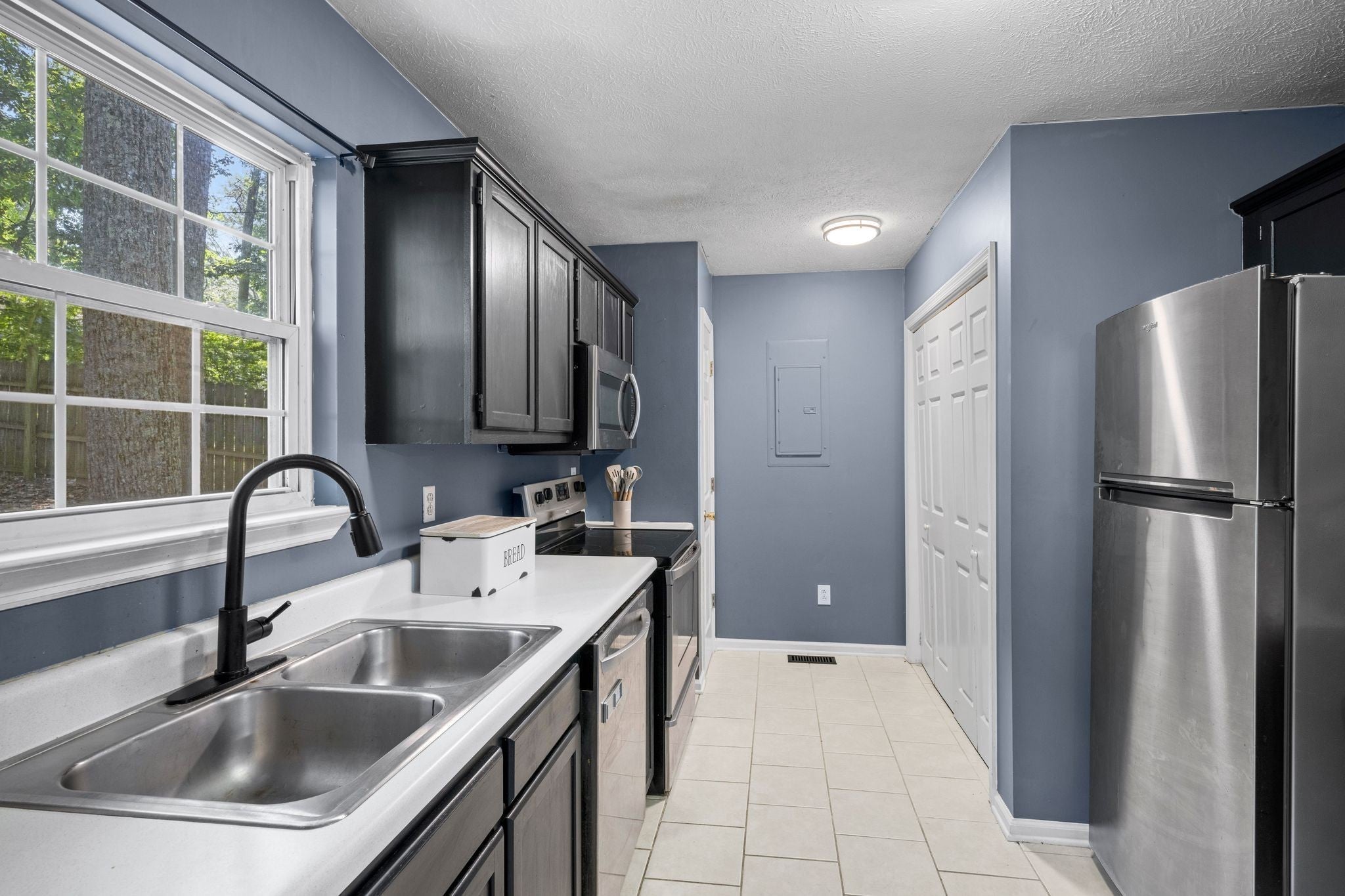 - Electric Oven, Electric Range, Dishwasher, Microwave, Refrigerator, Stainless Steel Appliance(s)