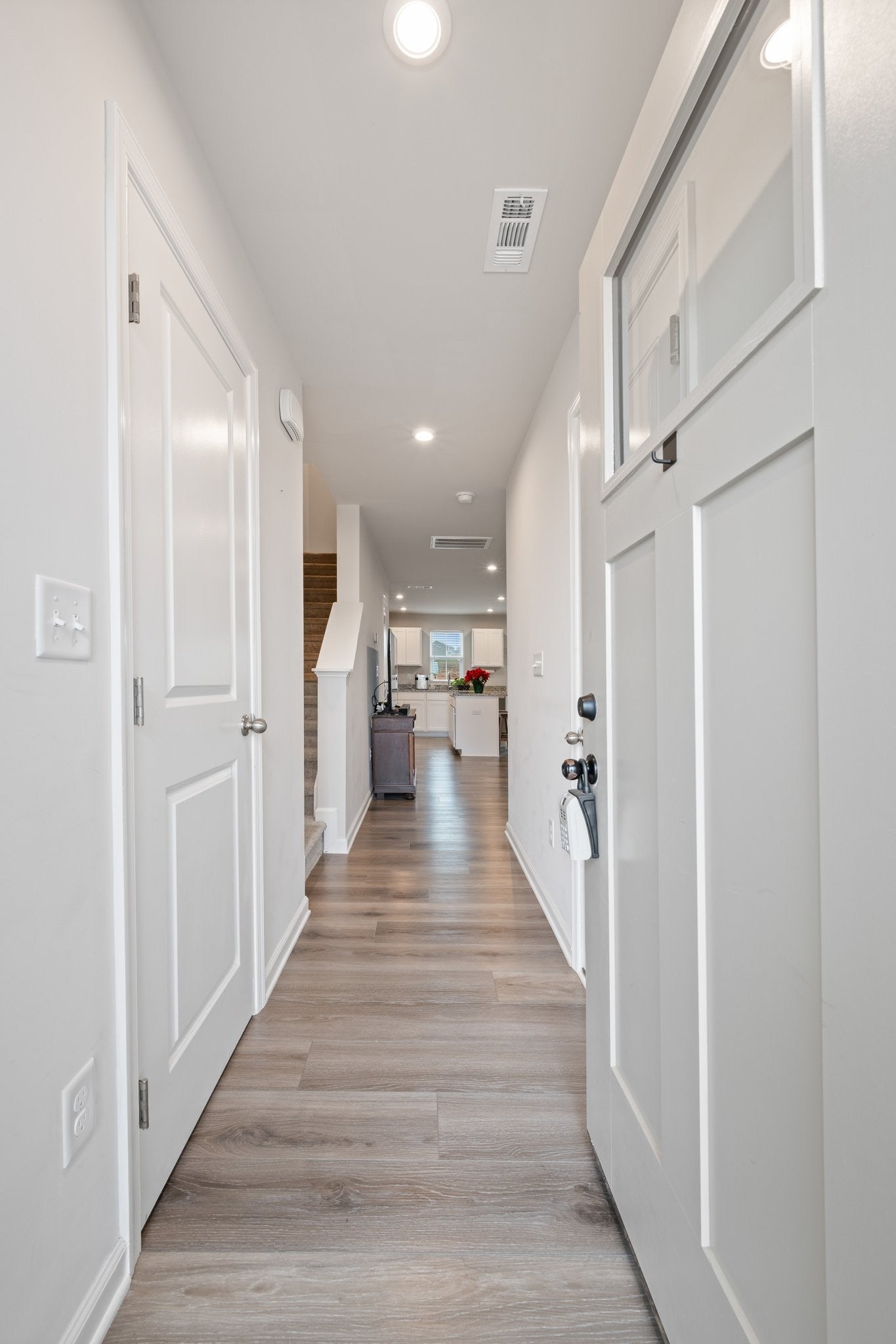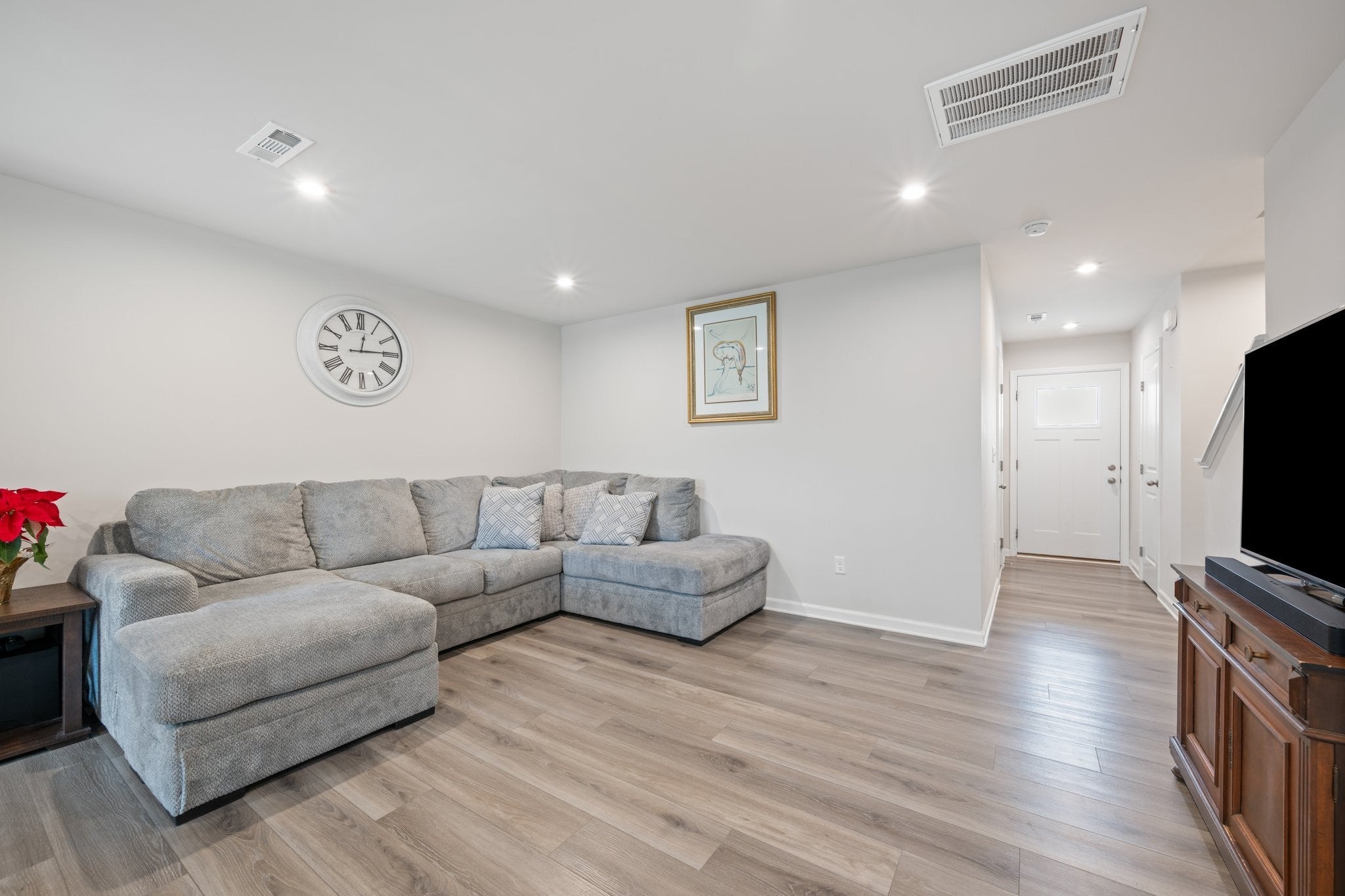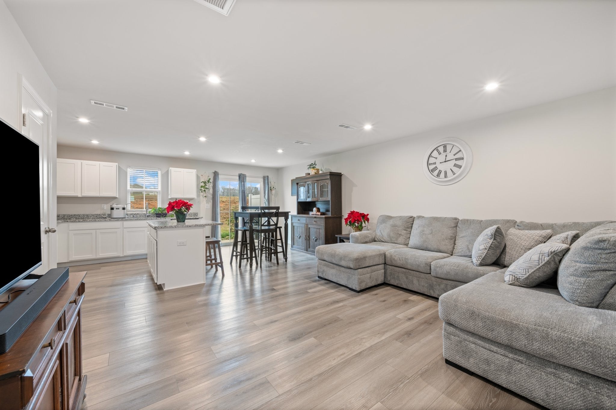 This stunning, like-new townhome is located in Lisenbee Fields, Clarksville’s premier amenity-filled community. Just one year old and maintenance-free, this home offers access to a playground, splash pad, fitness center, and on-site baseball field—everything you need right at your doorstep. Plus, you’re only 10 minutes from Gate 10 at Fort Campbell. Inside, enjoy a light-filled, open-concept floor plan with the kitchen, dining, living area, and powder room all on the main level. The kitchen features white shaker-style cabinetry, granite countertops, a walk-in pantry, and all appliances included, with durable LVP flooring throughout the first floor. Step outside to a 10x8 concrete patio, perfect for relaxing or entertaining. Upstairs, you’ll find three spacious bedrooms, two full bathrooms, and a convenient laundry room—washer and dryer included. The Primary suite offers a large walk-in closet and dual vanities in the en-suite bath. Rounding out the home is a 1-car garage and an extra-wide driveway, providing ample parking. Move-in ready and packed with amenities—this one checks all the boxes!