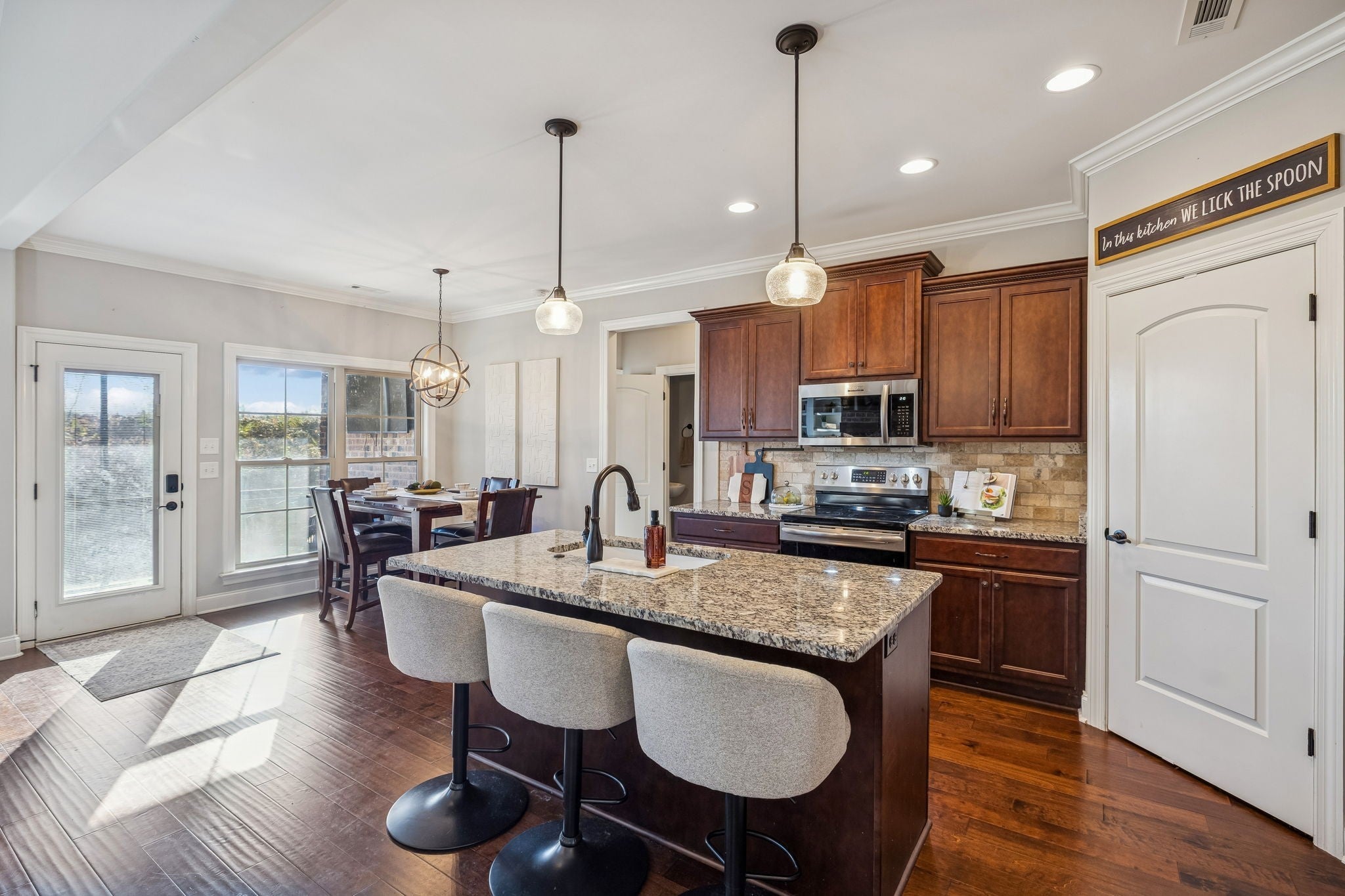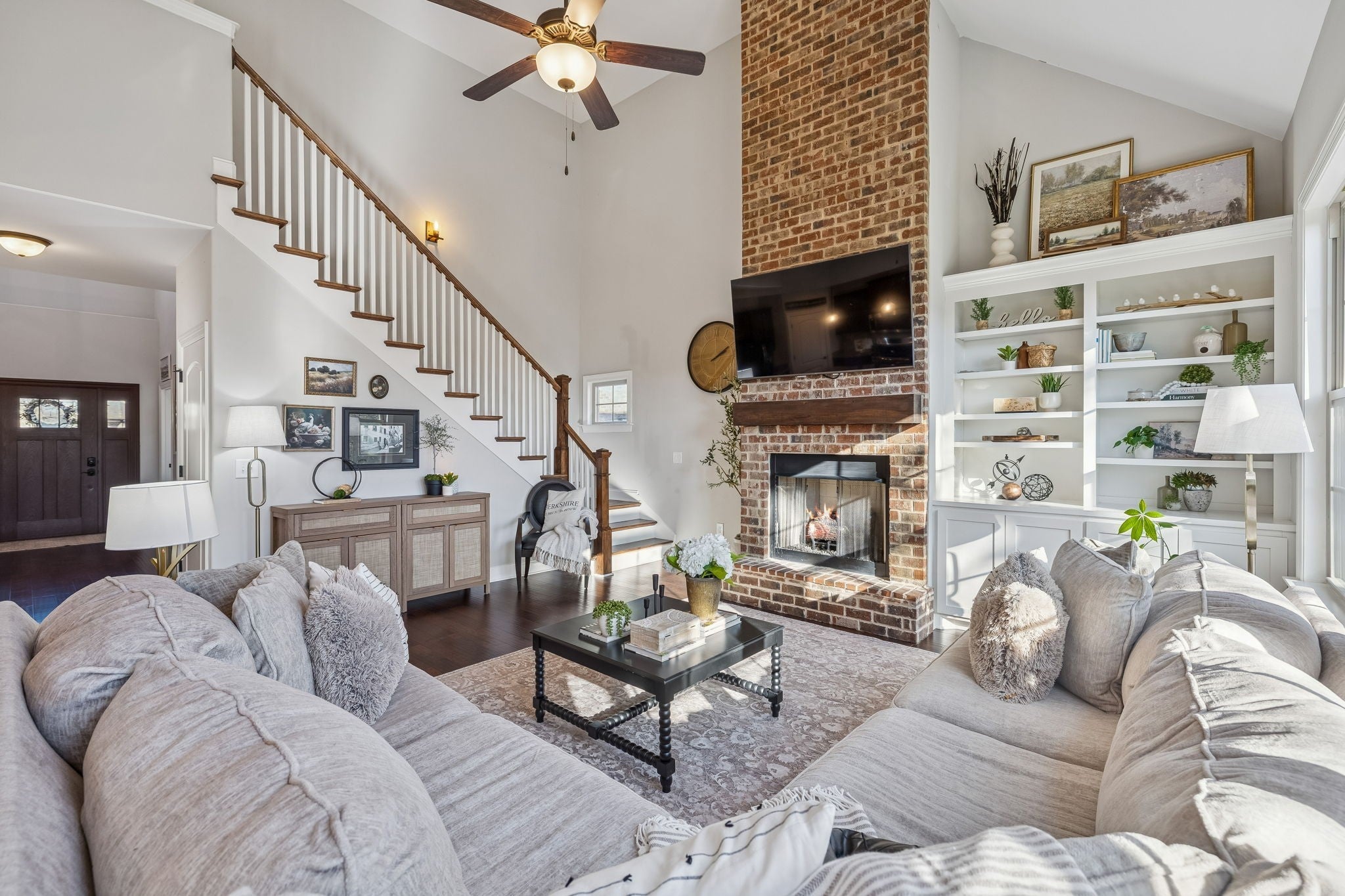 PRICED TO SELL + A RARE OPPORTUNITY to own a gorgeous, brick home w/ 3-car garage in one of Murfreesboro’s most sought-after communities, Berkshire! This award-winning community offers resort-style amenities including 2 pools-both w/ kiddie pools, playground, pavilion for parties & events, street lights & sidewalks for walking or running all hours throughout the neighborhood, walking trail along Overall Creek & full-size basketball court, elevating your lifestyle! Located on a quiet street that backs up to a wooded treeline-not just a beautiful, it's functional. Upon entering, your eyes will be drawn up to the soaring ceilings in the grand formal entry & you'll notice the first floor has all hardwoods. There is a private, dedicated office offering privacy away from the bedrooms & living spaces-could easily be converted to 5th bedroom. The large primary suite conveniently located on the main level & backside of the home, along with a formal dining room. The kitchen has everything you need and want! There is a walk-in pantry, granite countertops, tile backsplash, and an island with new ceramic farmhouse sink. There is a generous eat-in area and there is a screened-in patio just off of it for enjoying your coffee in the morning & relaxing in the evening. Wait until you see the laundry room that fits a full sized fridge & has it's own mud area, conveniently located off the garage for a drop zone. It has cabinets & a beautifully trimmed wall w/ wallpaper. The living room has soaring ceilings, tons of natural light, brick fireplace to the ceiling + beautiful bookcase built-ins. Upstairs, you’ll find three generously sized bedrooms, two full bathrooms, along with a bonus room, providing enough space to hang out, watch tv and have a game table or rooms for desks for homework or homeschool. This home is a DREAM HOME!!! Don't wait-schedule your showing today!