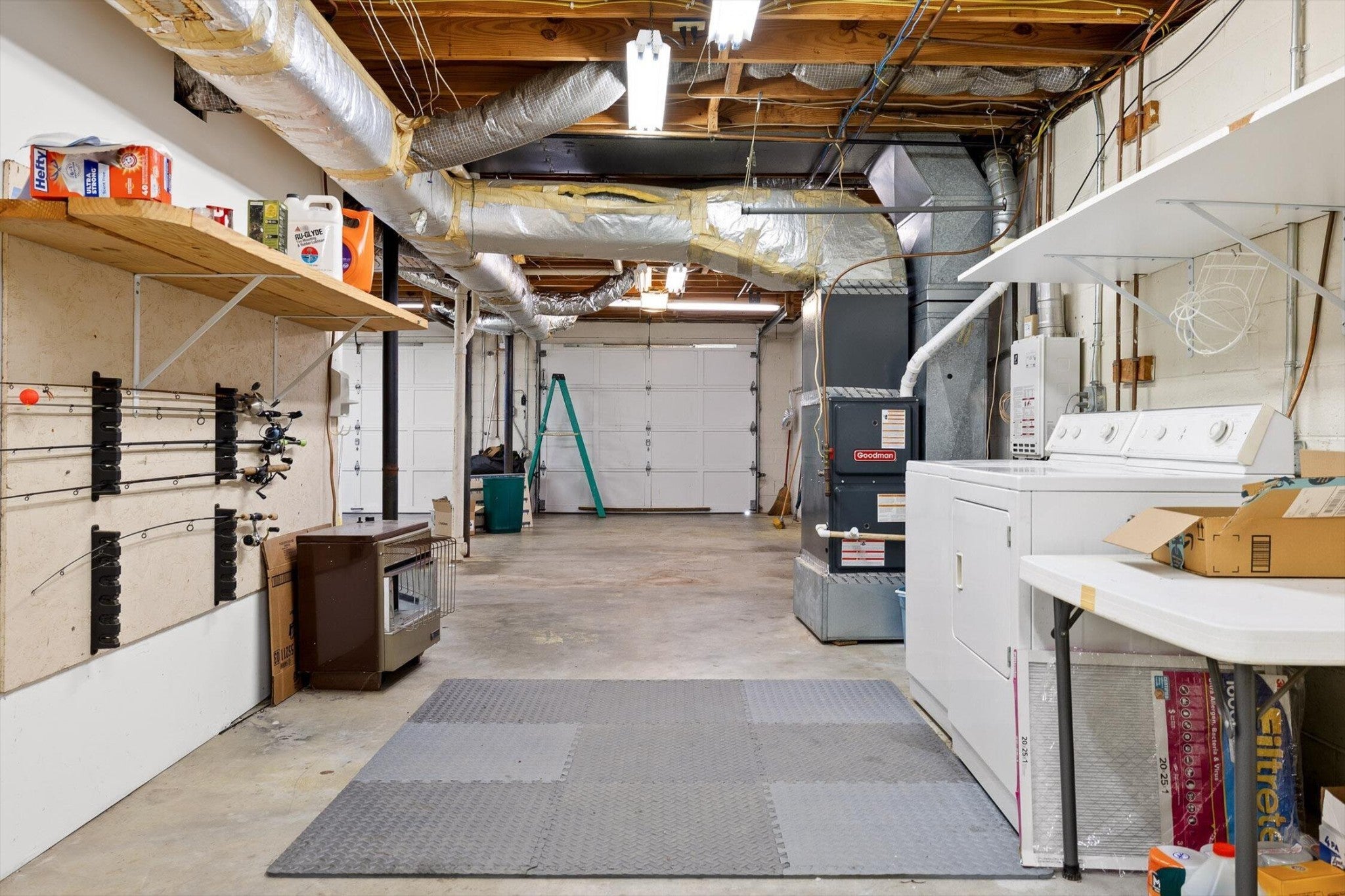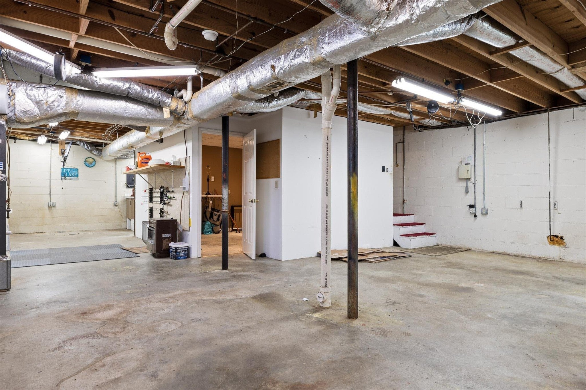 This home offers exceptional space and versatility with an oversized second bedroom and a primary suite featuring a whirlpool tub. A heated and cooled full basement includes a framed room, providing flexible space for future expansion. The open living, dining, and kitchen layout flows to a wrap-around deck, all set on a wooded lot offering excellent privacy. A standout feature is the oversized, spacious garage with a separate driveway, ideal for a large truck, boat, or workshop, plus a 2-car carport off the kitchen. Located just minutes from Harrison Bay State Park, this property combines privacy, functionality, and access to outdoor recreation.